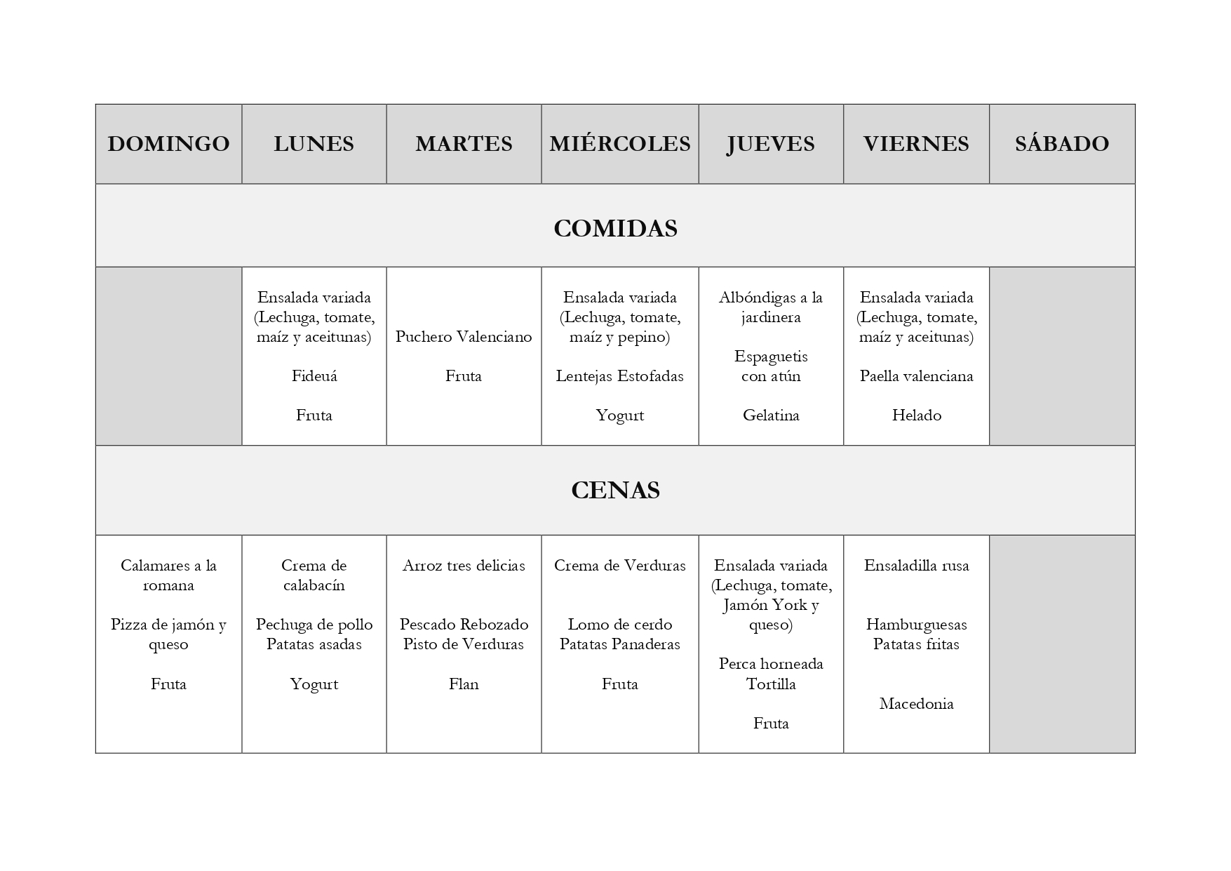 Para la semana de inmersión lingüística, se ha preparado un menú especialmente pensado para garantizar que los estudiantes disfruten de una dieta balanceada y de alta calidad. A continuación, les presentamos el menú que se ofrecerá a lo largo de la semana: