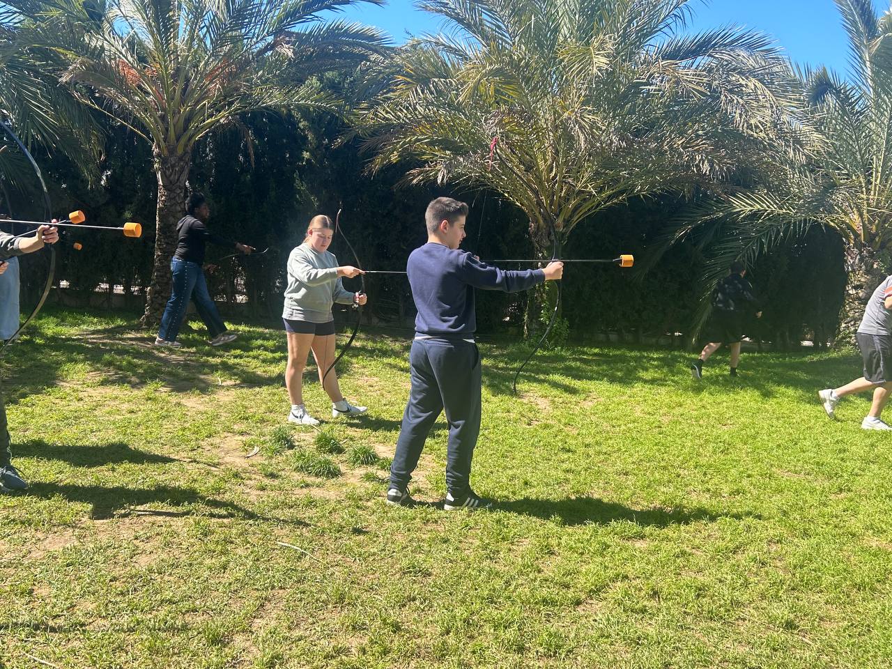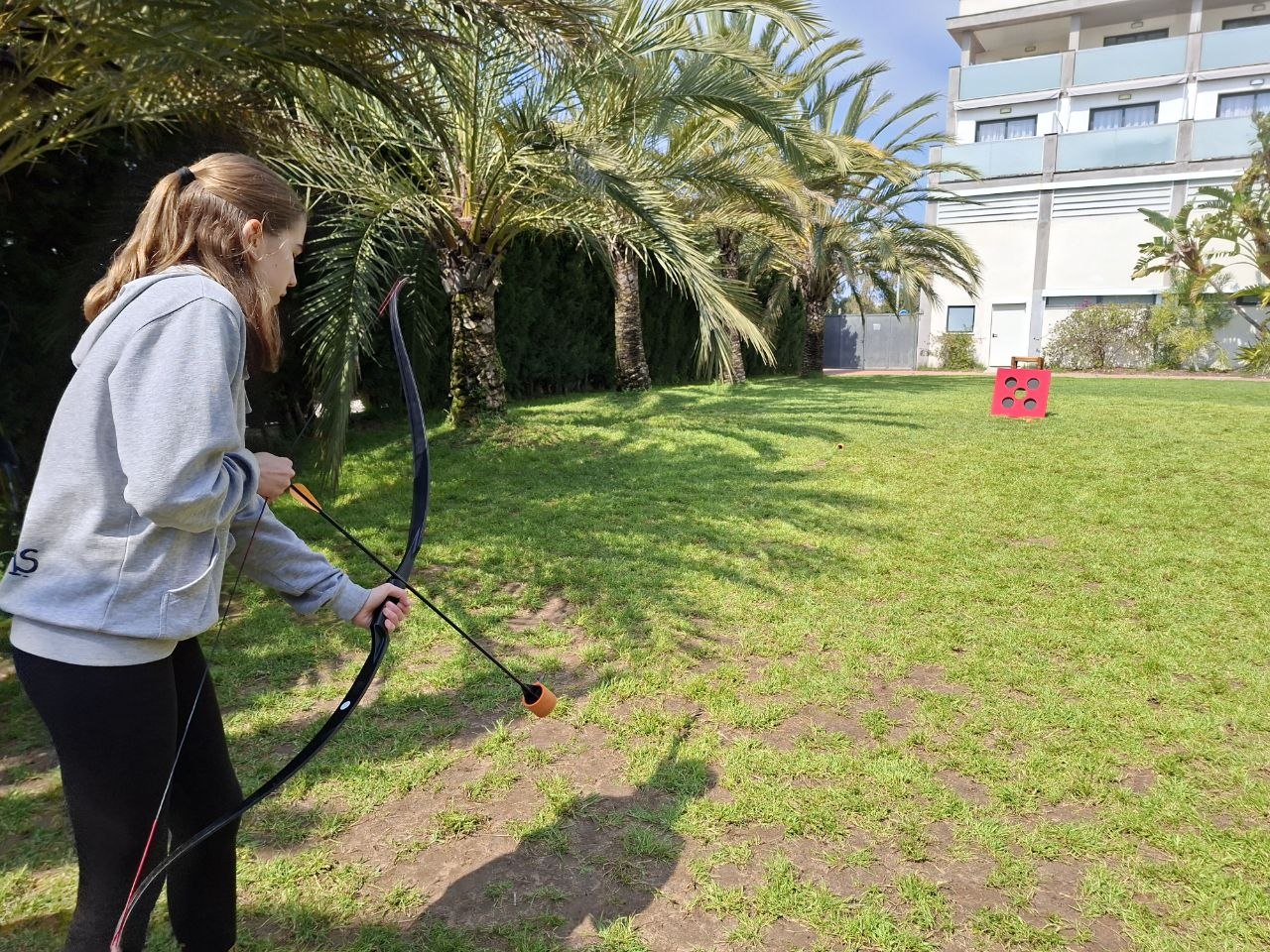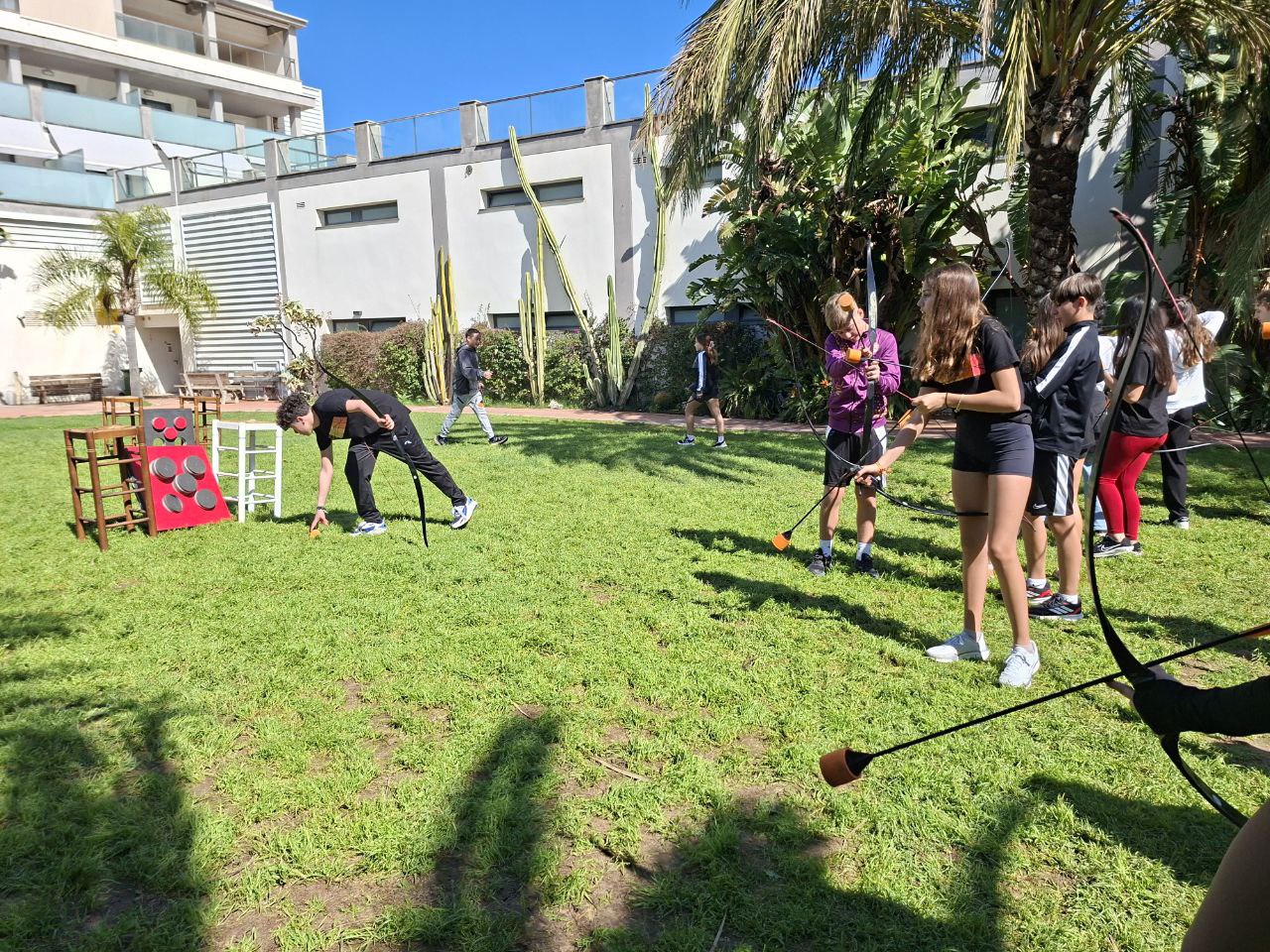 Posteriormente, los estudiantes pusieron a prueba su destreza en la actividad de "archery", utilizando flechas con punta de goma espuma para asegurar su seguridad.