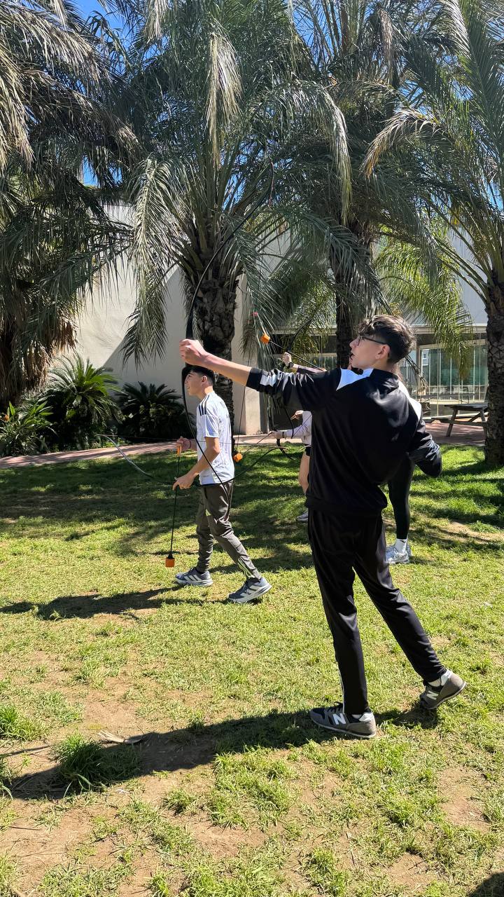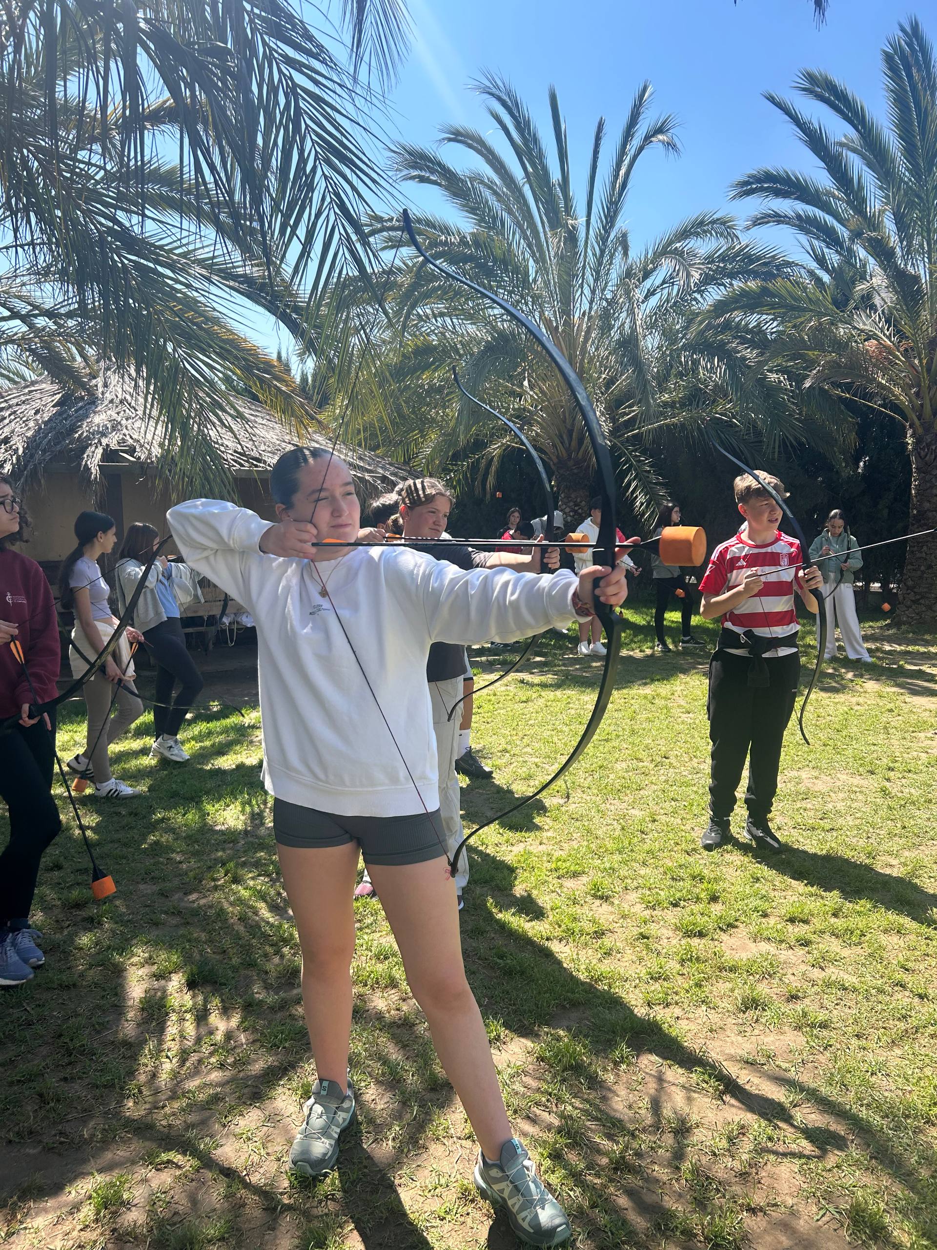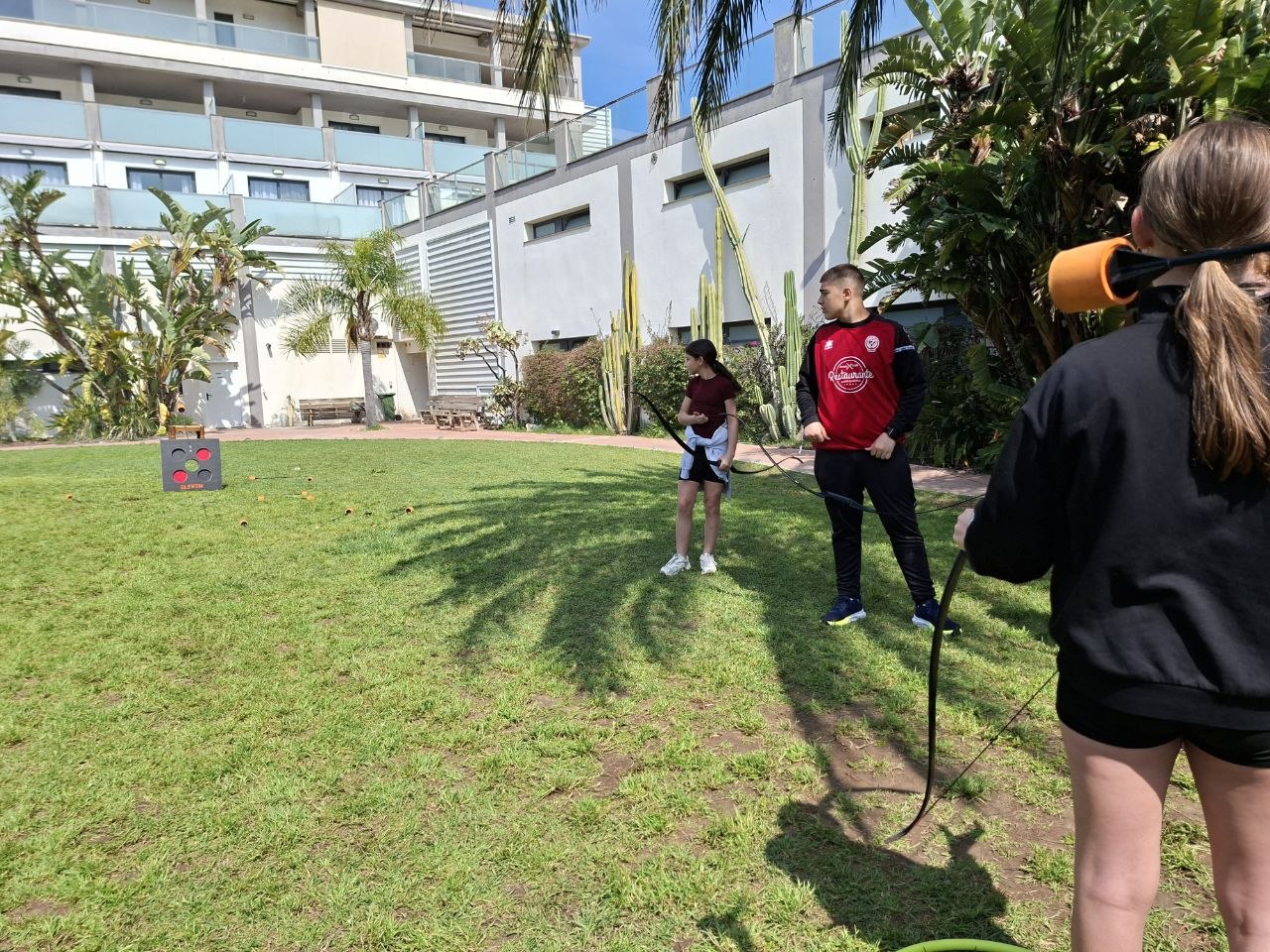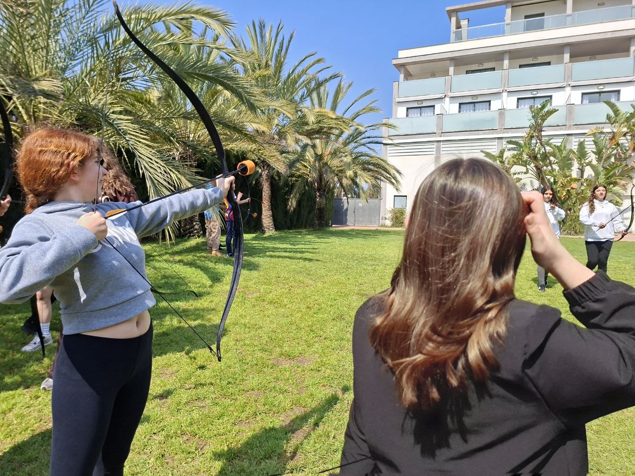 Posteriormente, los estudiantes pusieron a prueba su destreza en la actividad de "archery", utilizando flechas con punta de goma espuma para asegurar su seguridad.