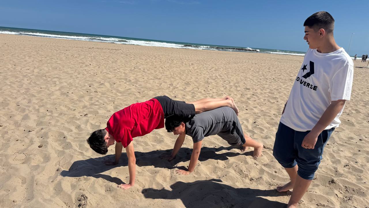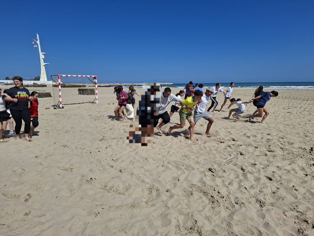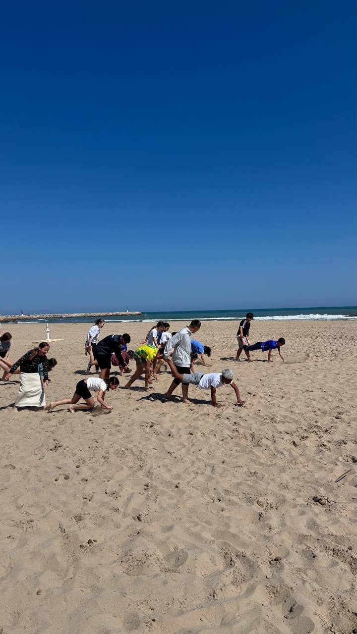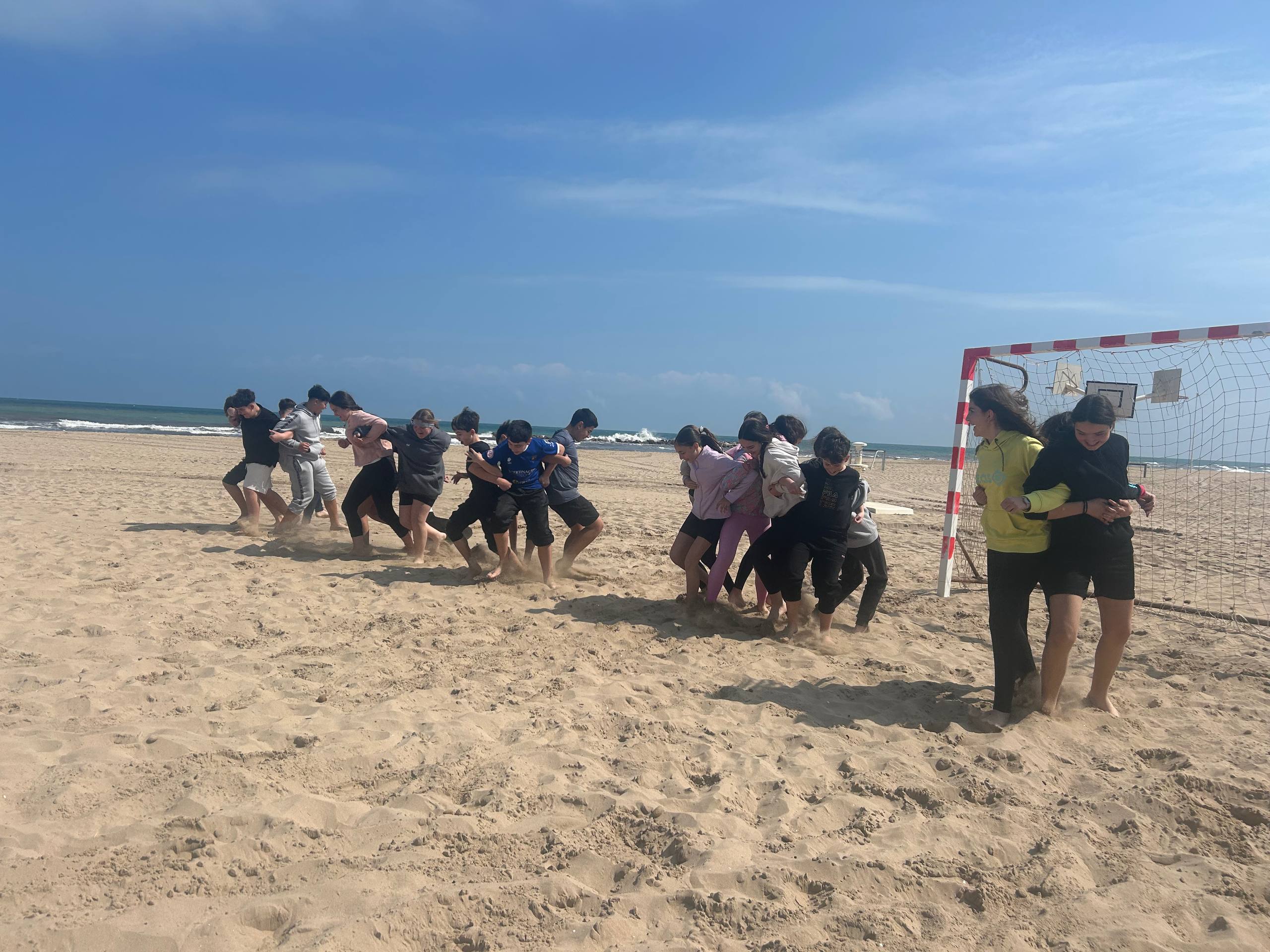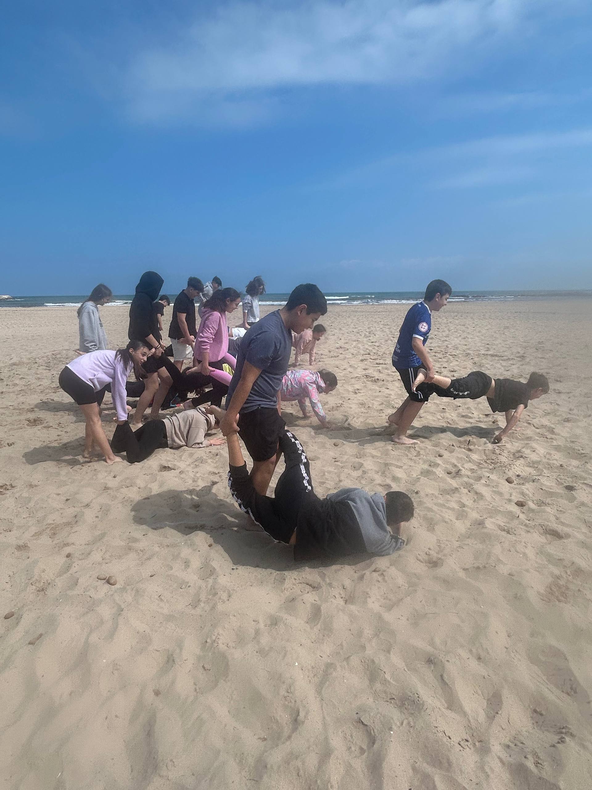 Se dividieron en dos grupos: mientras uno practicaba el tiro con arco, el otro disfrutaba de juegos y deportes en la playa, aprovechando un momento de ejercicio y diversión al aire libre.