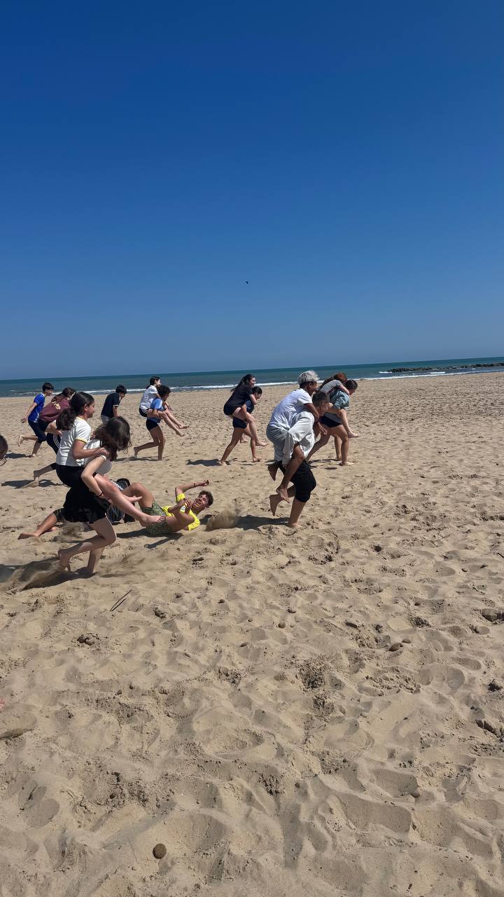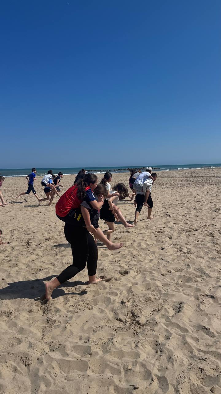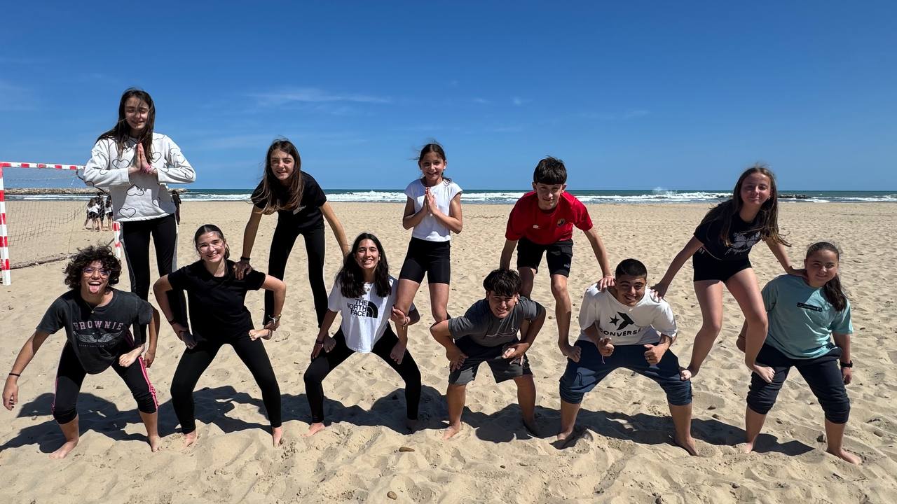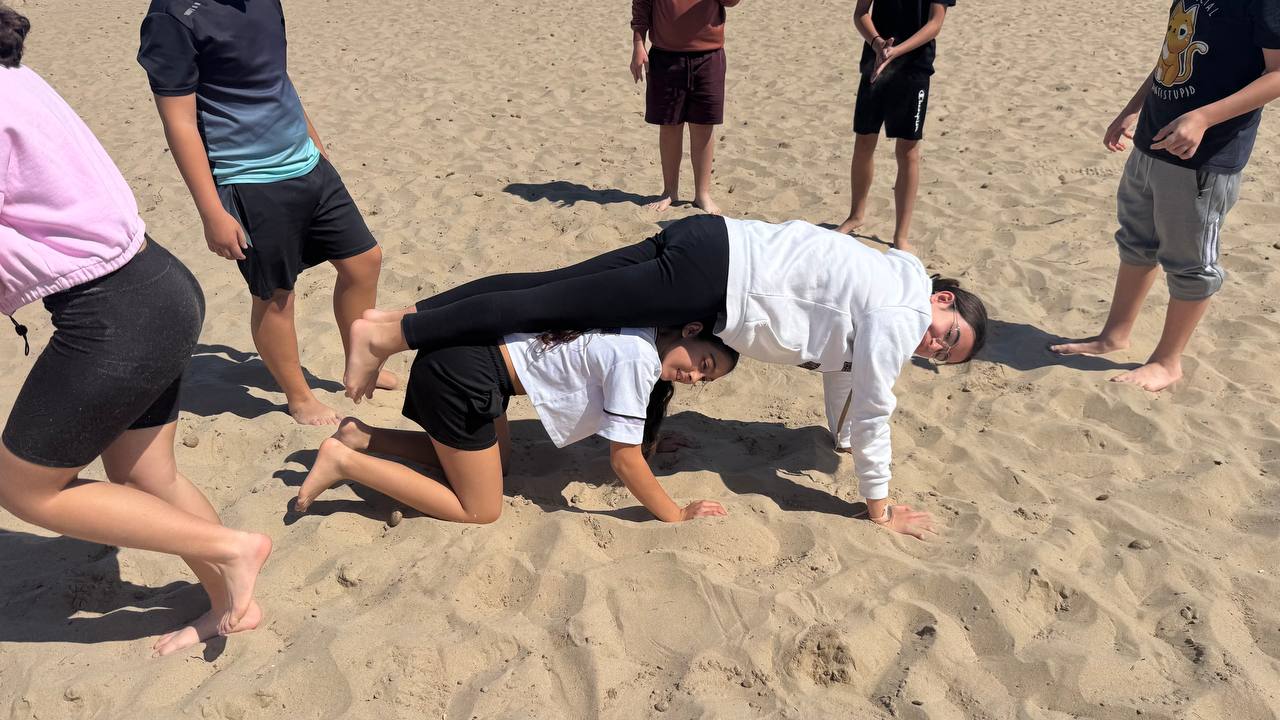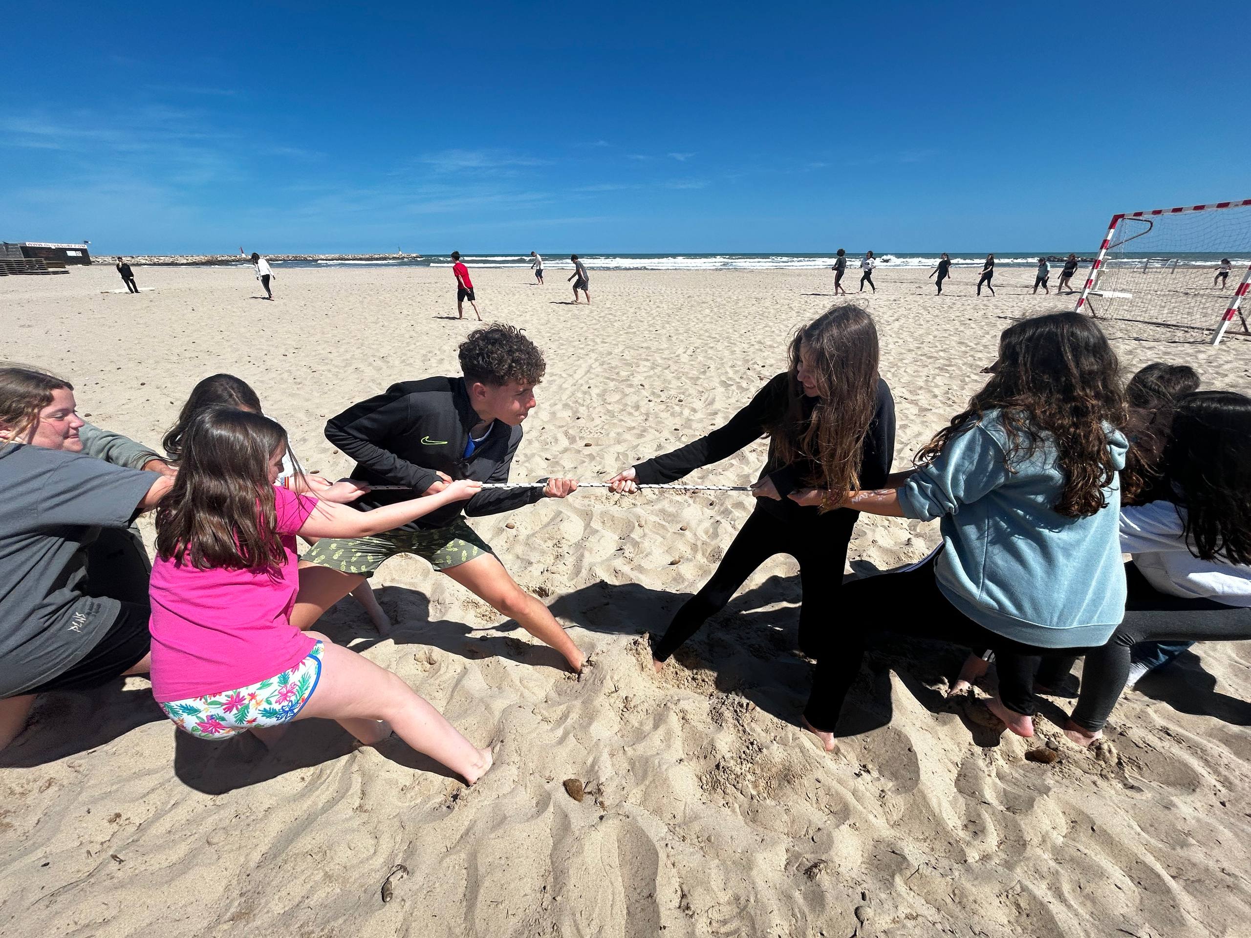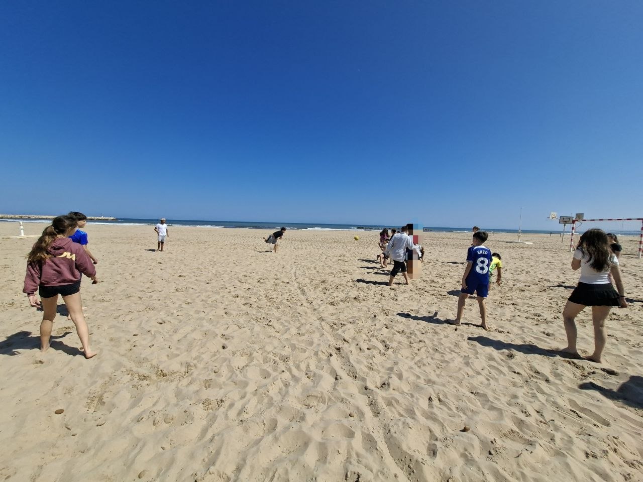 Se dividieron en dos grupos: mientras uno practicaba el tiro con arco, el otro disfrutaba de juegos y deportes en la playa, aprovechando un momento de ejercicio y diversión al aire libre.