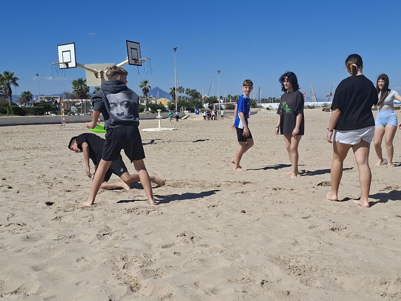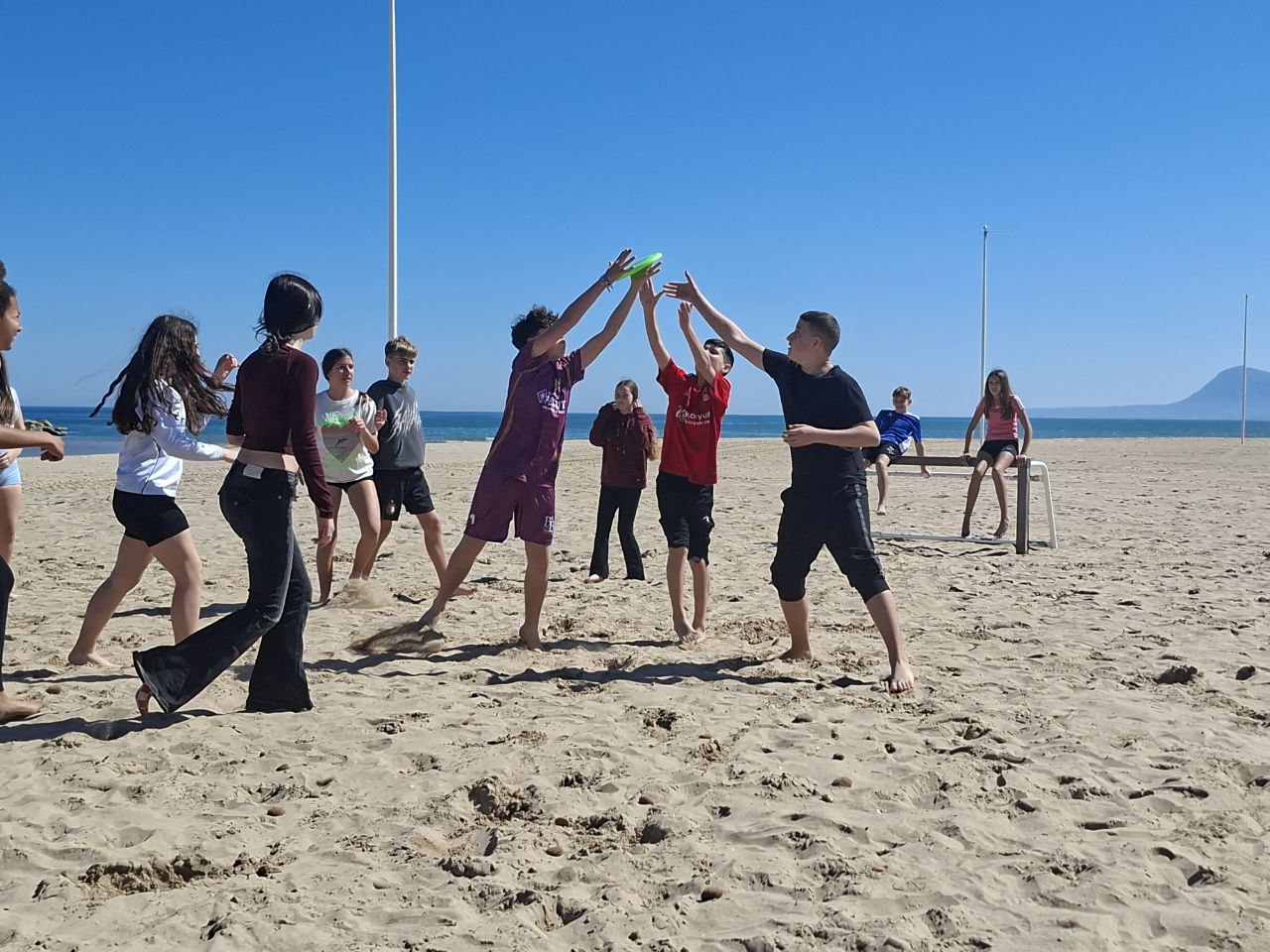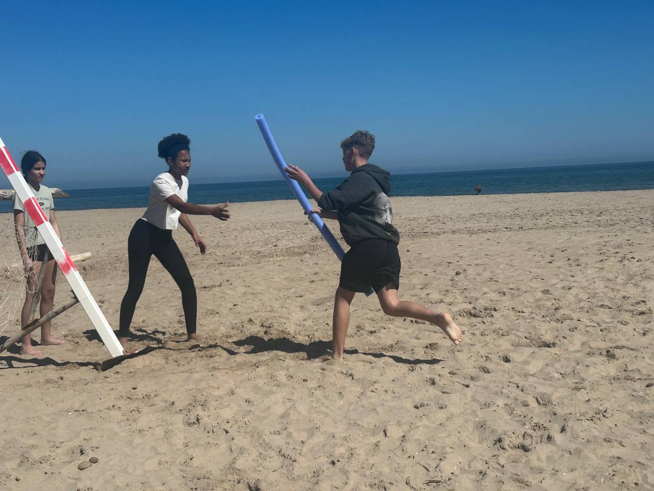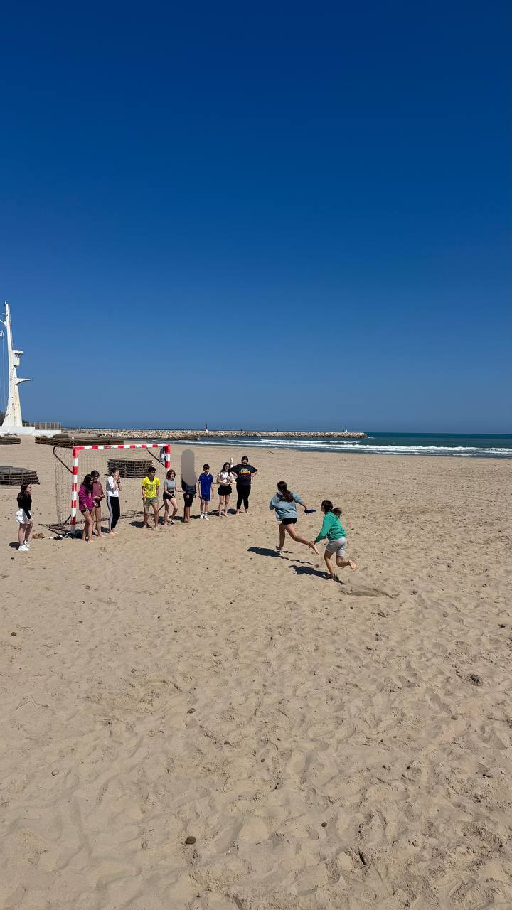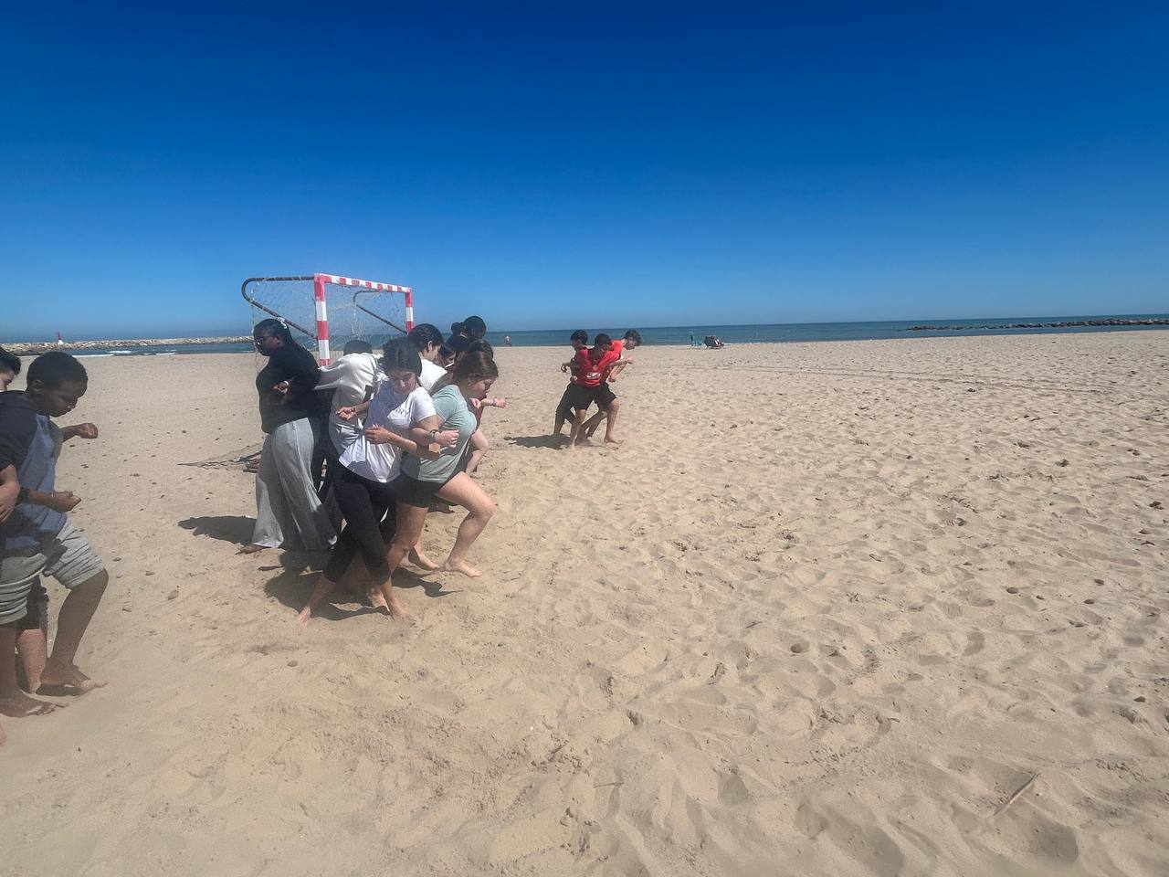 Se dividieron en dos grupos: mientras uno practicaba el tiro con arco, el otro disfrutaba de juegos y deportes en la playa, aprovechando un momento de ejercicio y diversión al aire libre.