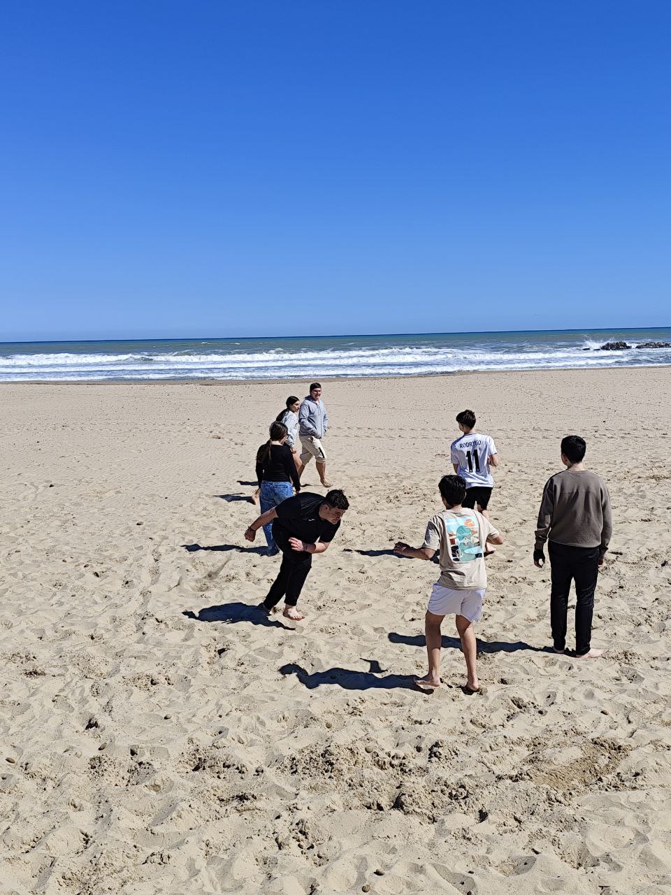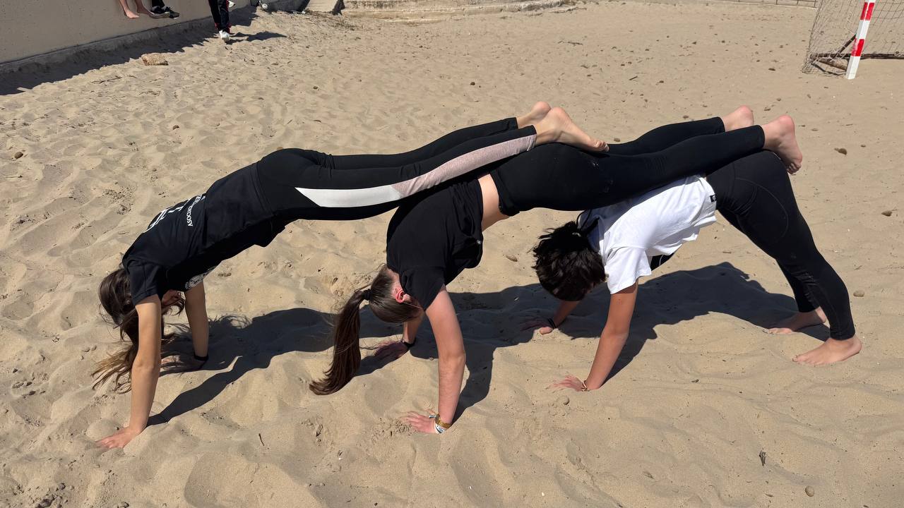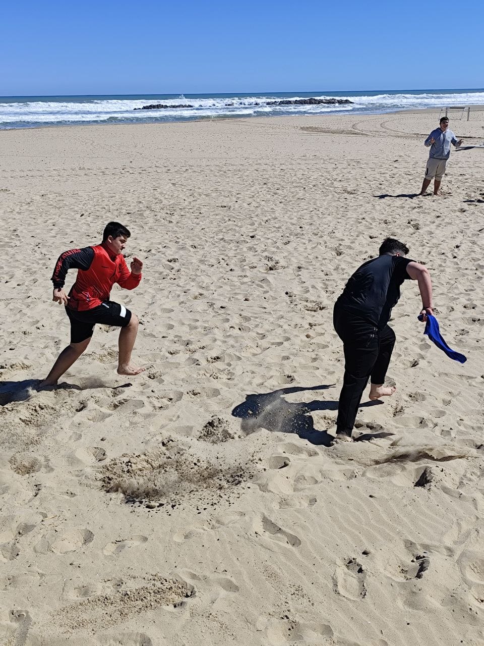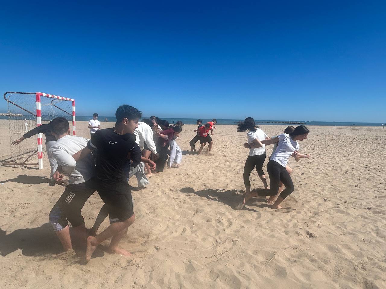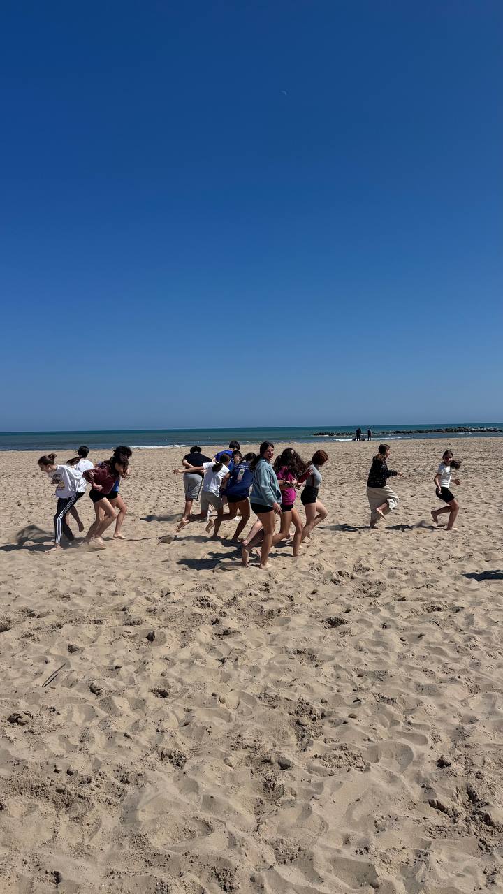 Se dividieron en dos grupos: mientras uno practicaba el tiro con arco, el otro disfrutaba de juegos y deportes en la playa, aprovechando un momento de ejercicio y diversión al aire libre.