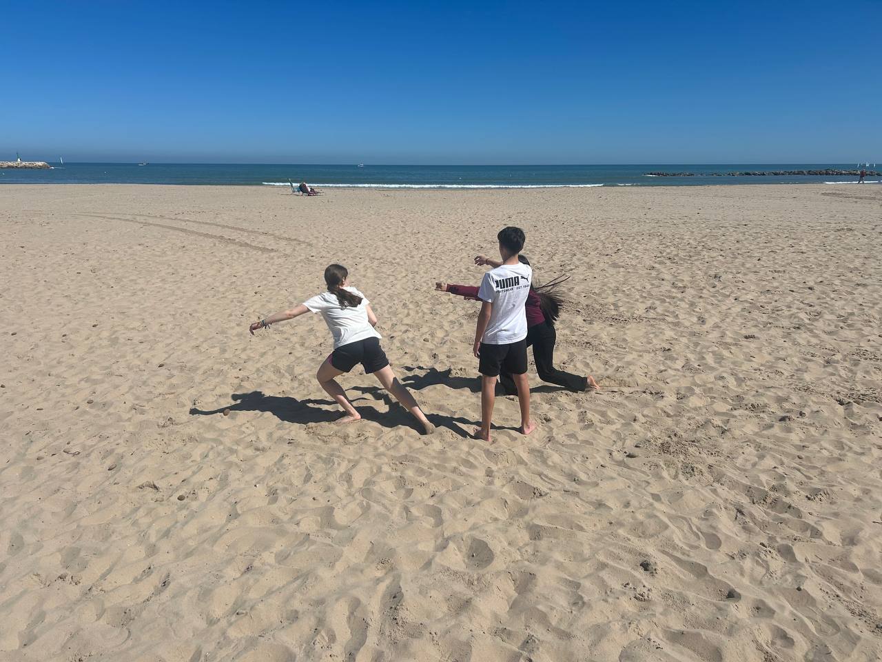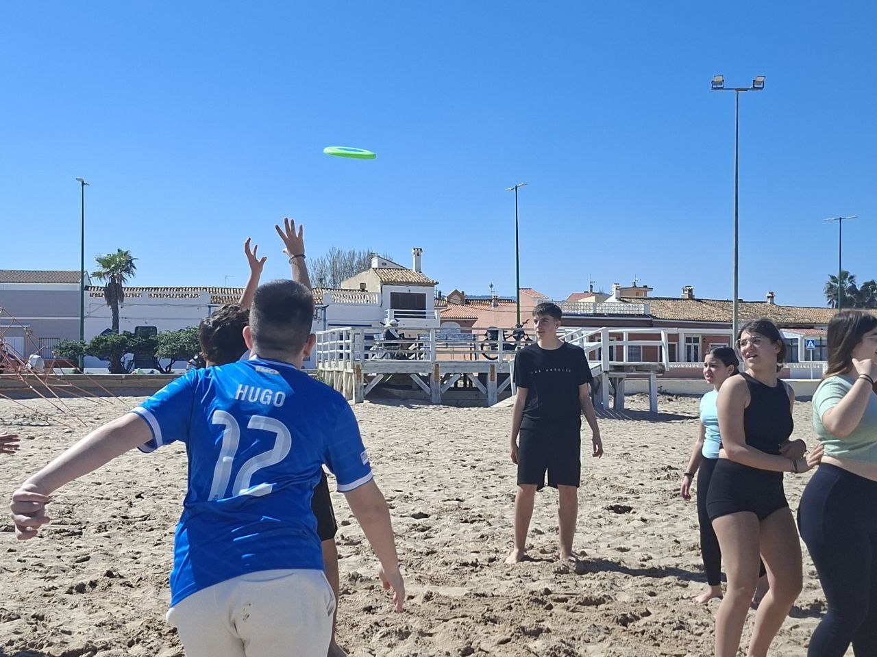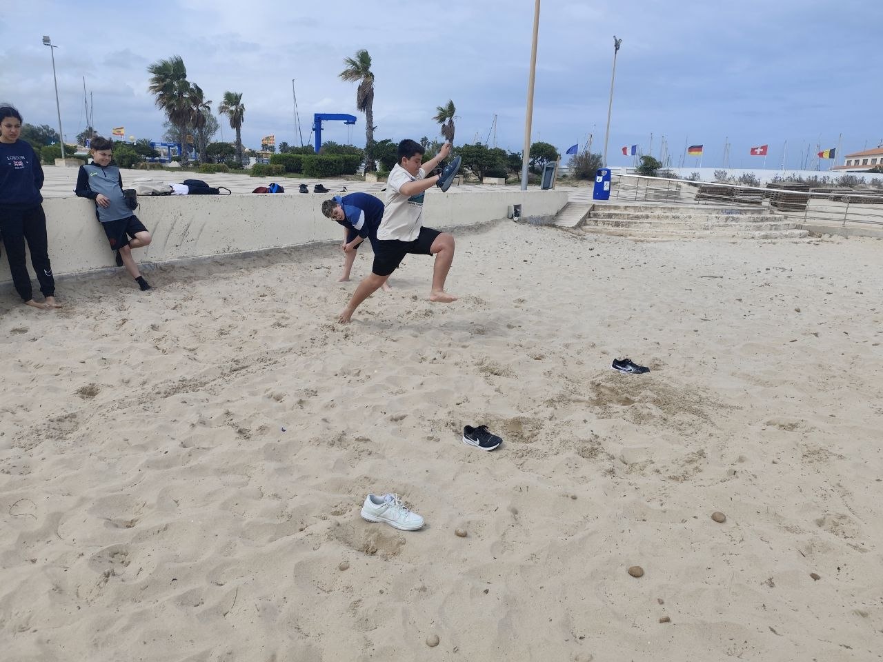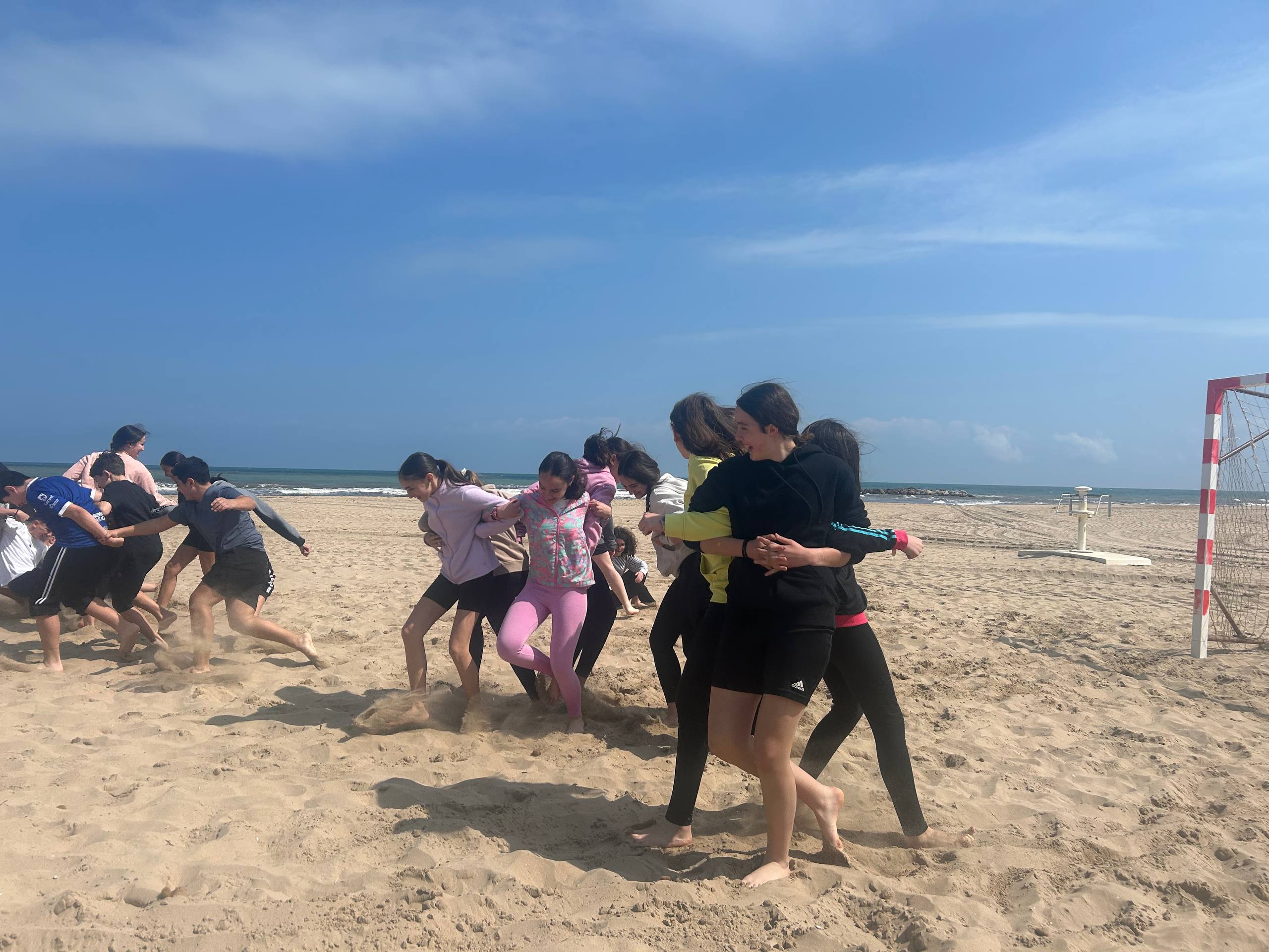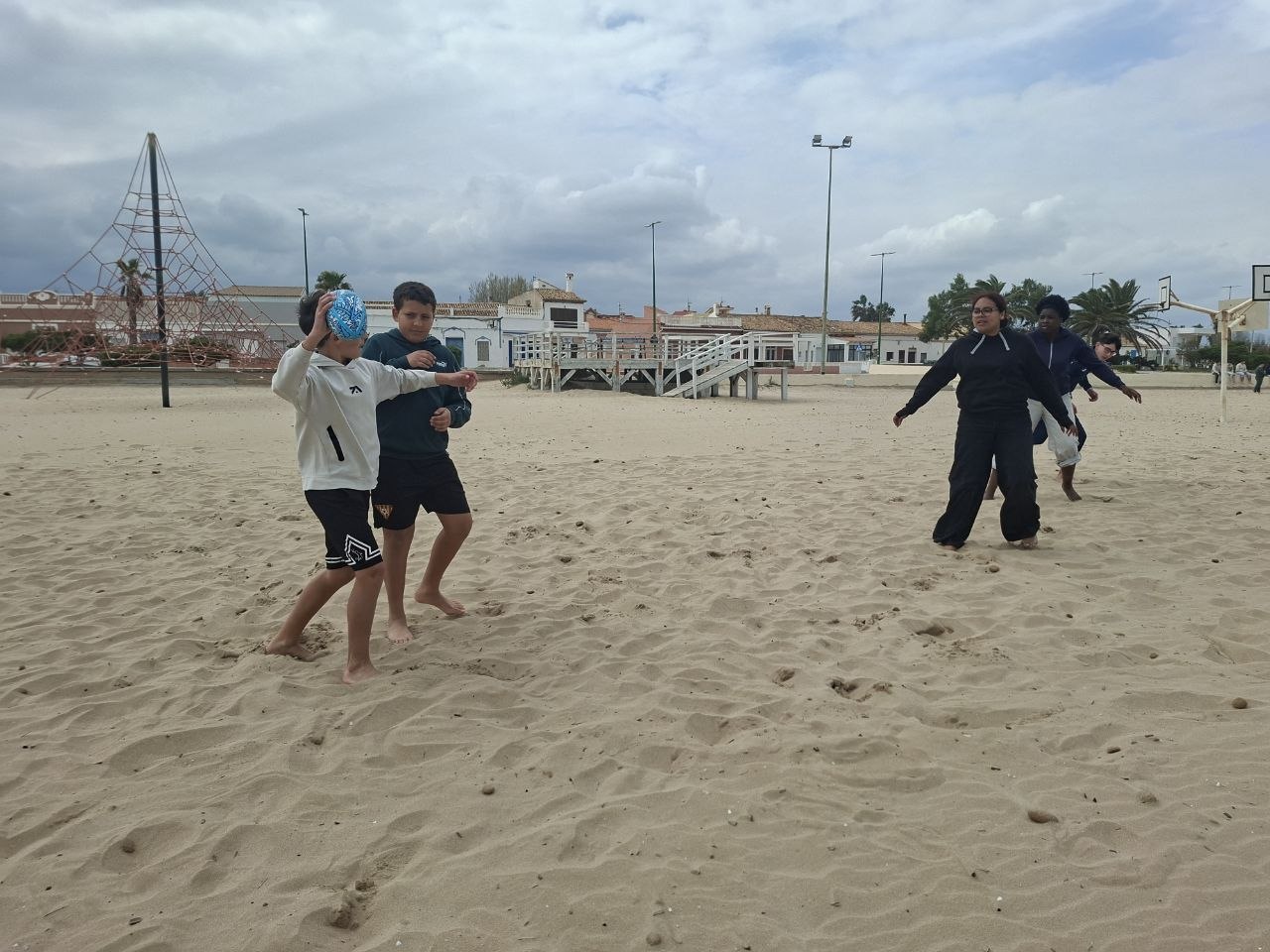 Se dividieron en dos grupos: mientras uno practicaba el tiro con arco, el otro disfrutaba de juegos y deportes en la playa, aprovechando un momento de ejercicio y diversión al aire libre.