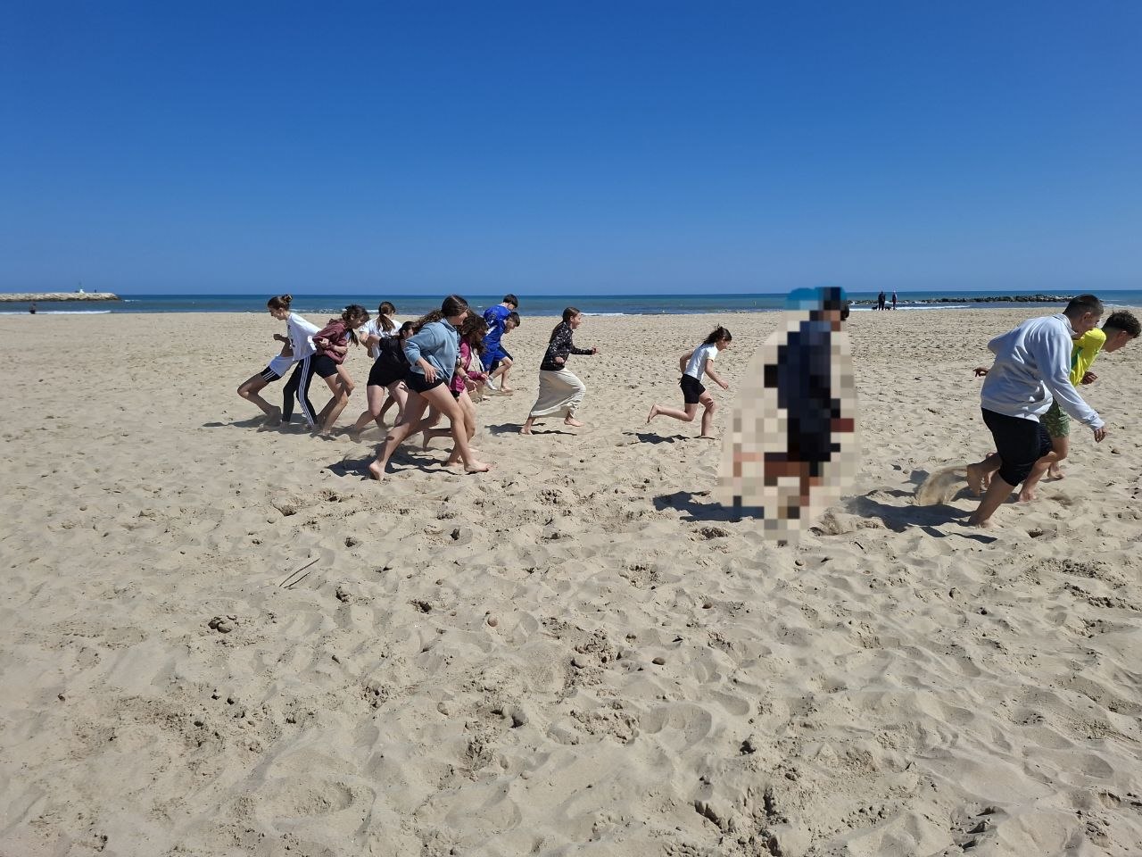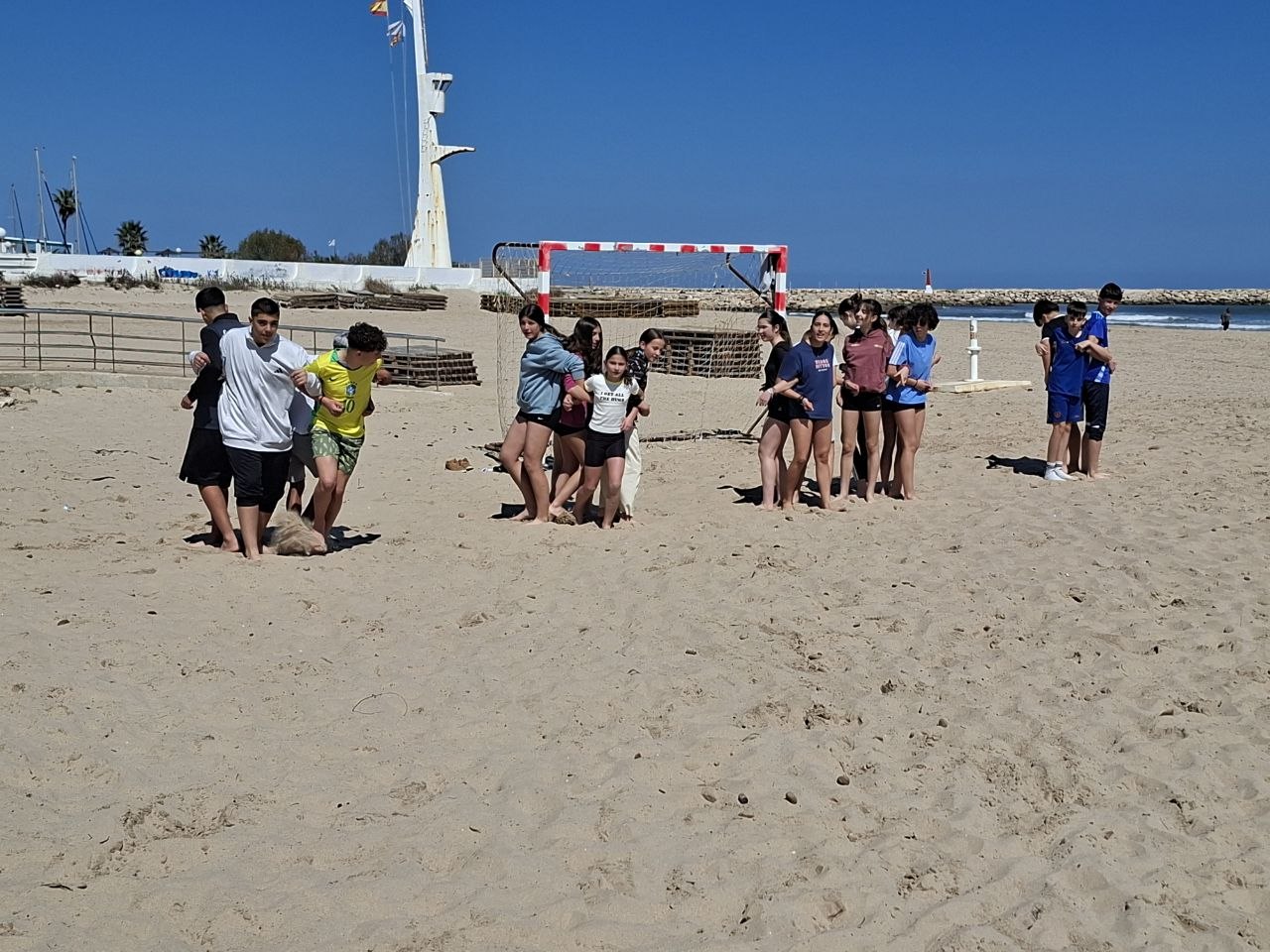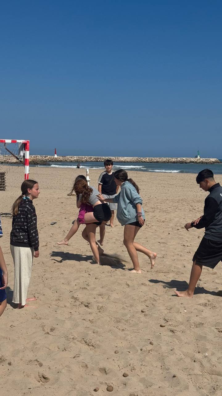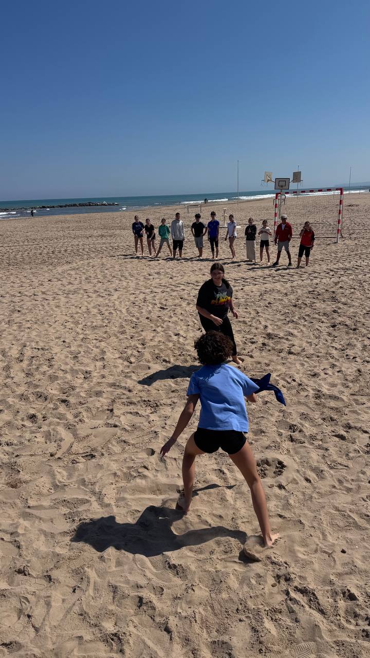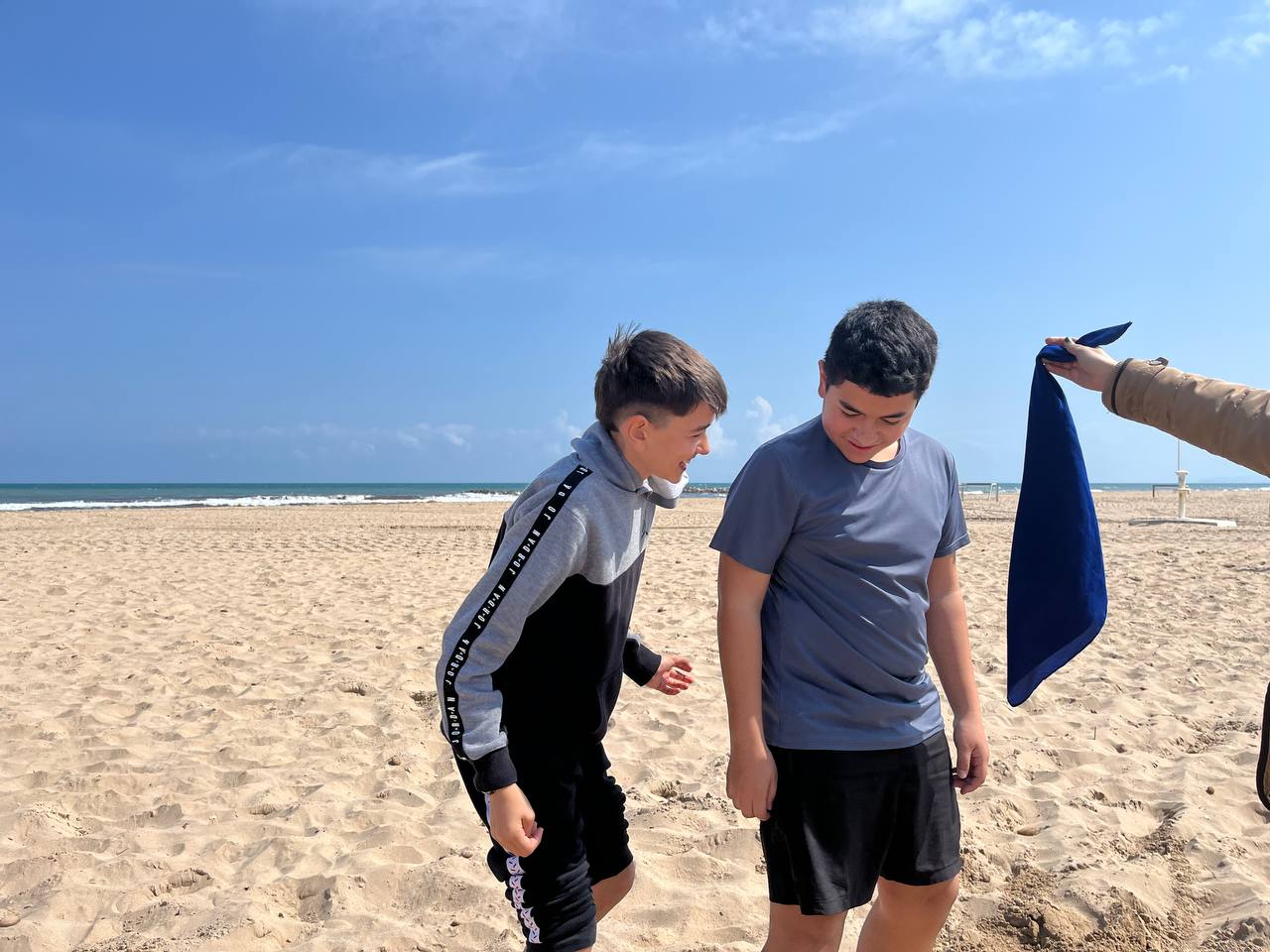 Se dividieron en dos grupos: mientras uno practicaba el tiro con arco, el otro disfrutaba de juegos y deportes en la playa, aprovechando un momento de ejercicio y diversión al aire libre.
