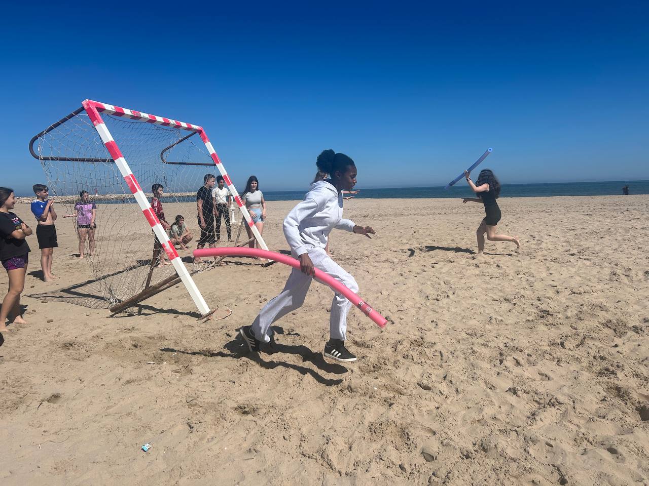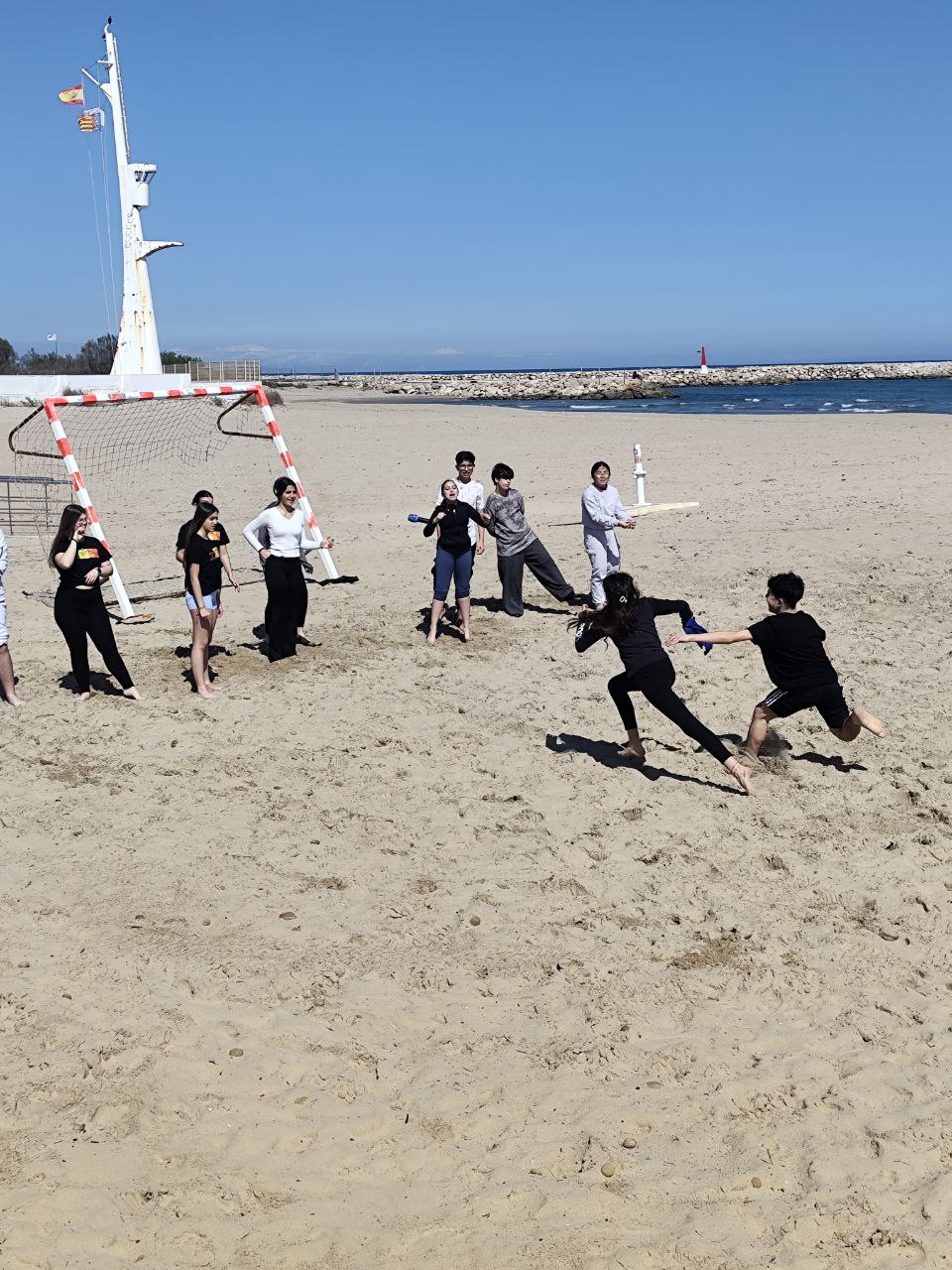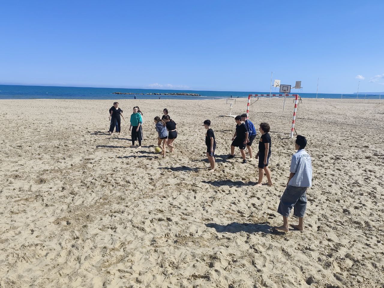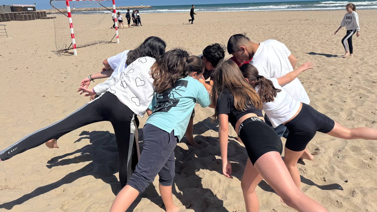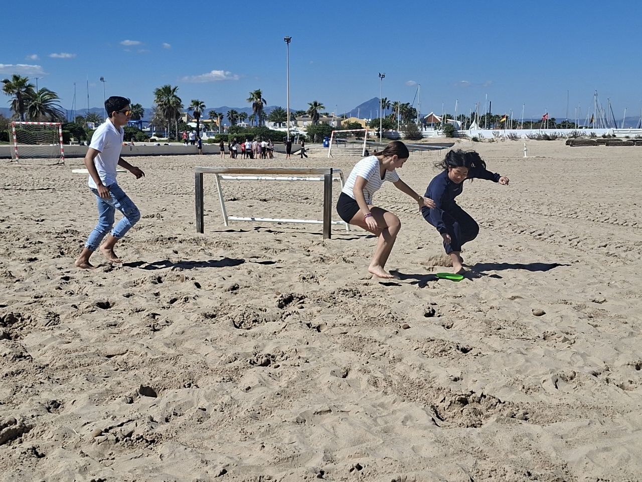Se dividieron en dos grupos: mientras uno practicaba el tiro con arco, el otro disfrutaba de juegos y deportes en la playa, aprovechando un momento de ejercicio y diversión al aire libre.