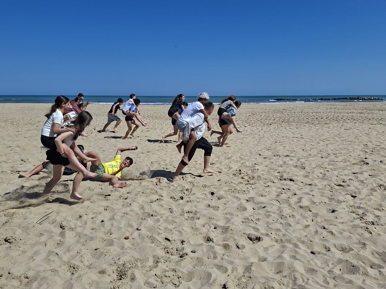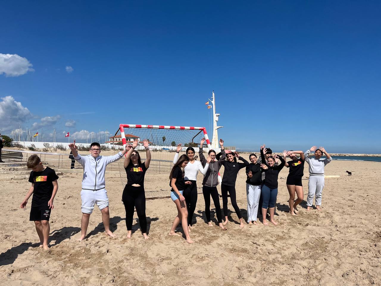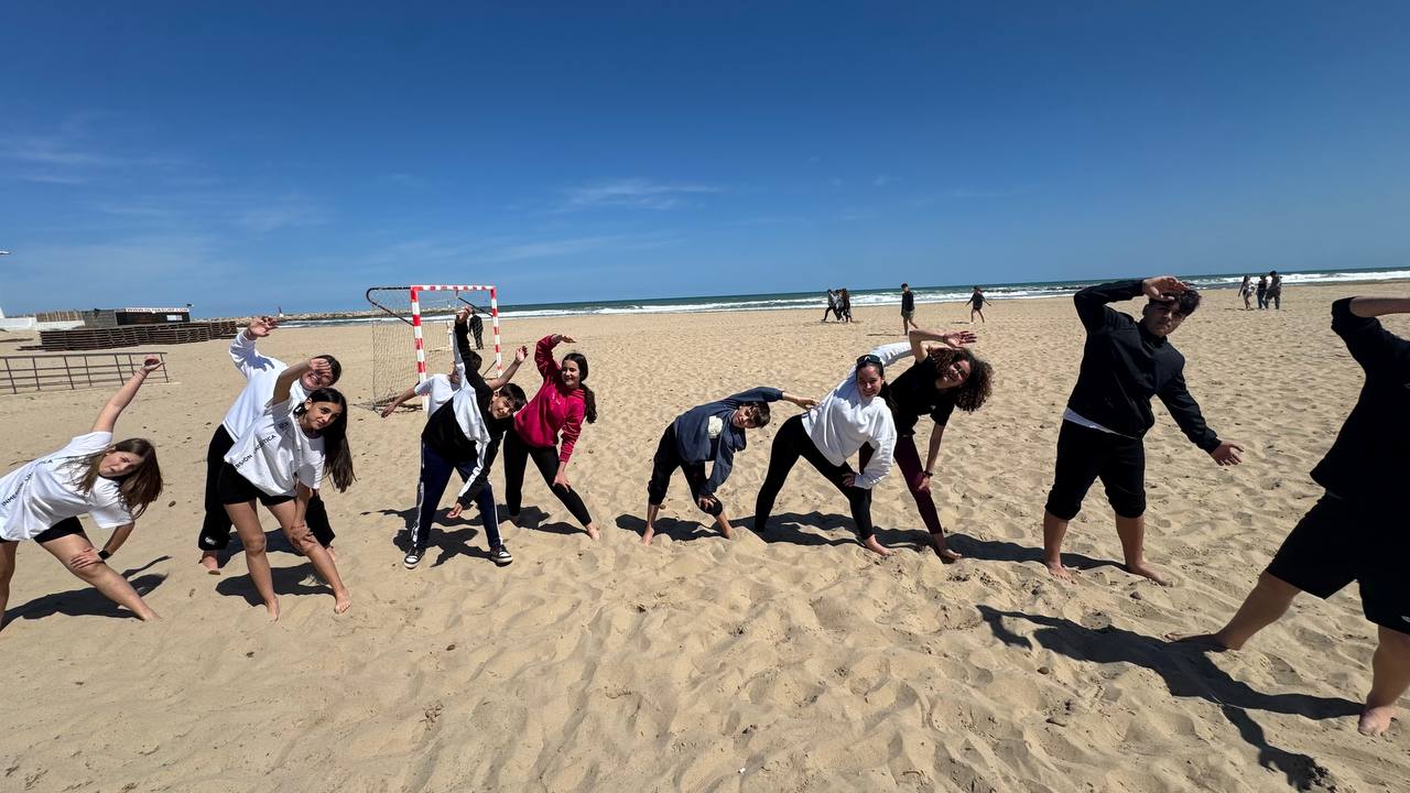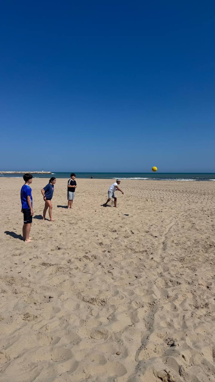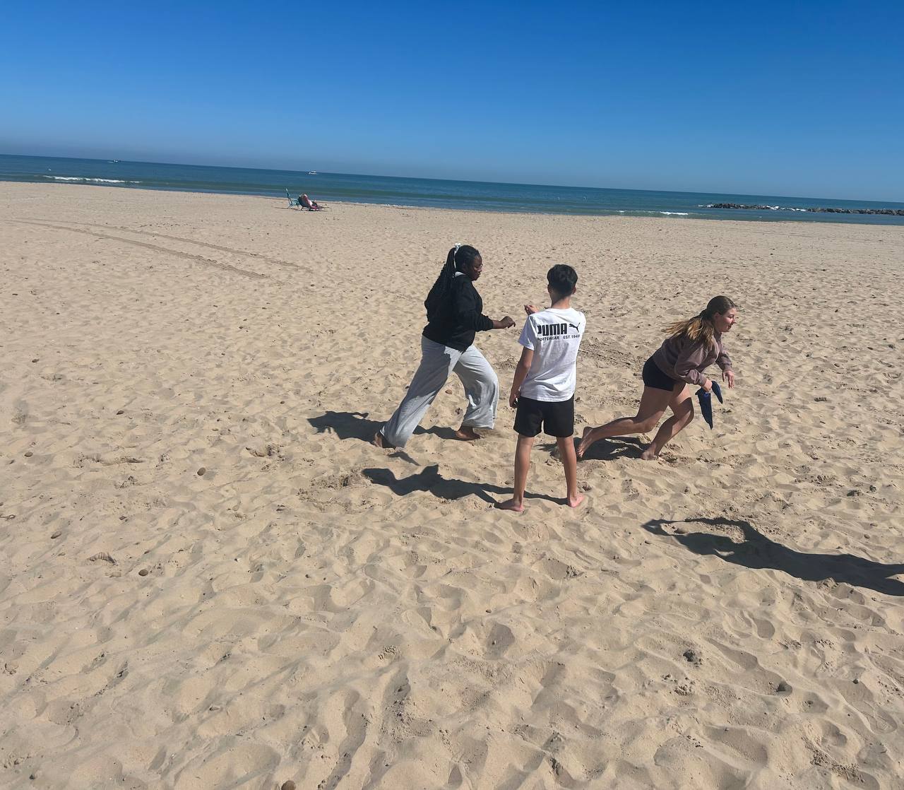 Se dividieron en dos grupos: mientras uno practicaba el tiro con arco, el otro disfrutaba de juegos y deportes en la playa, aprovechando un momento de ejercicio y diversión al aire libre.