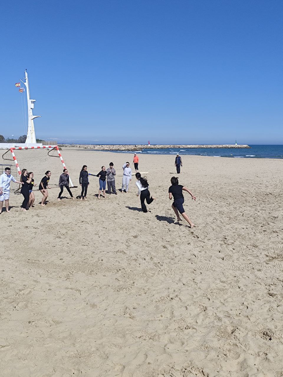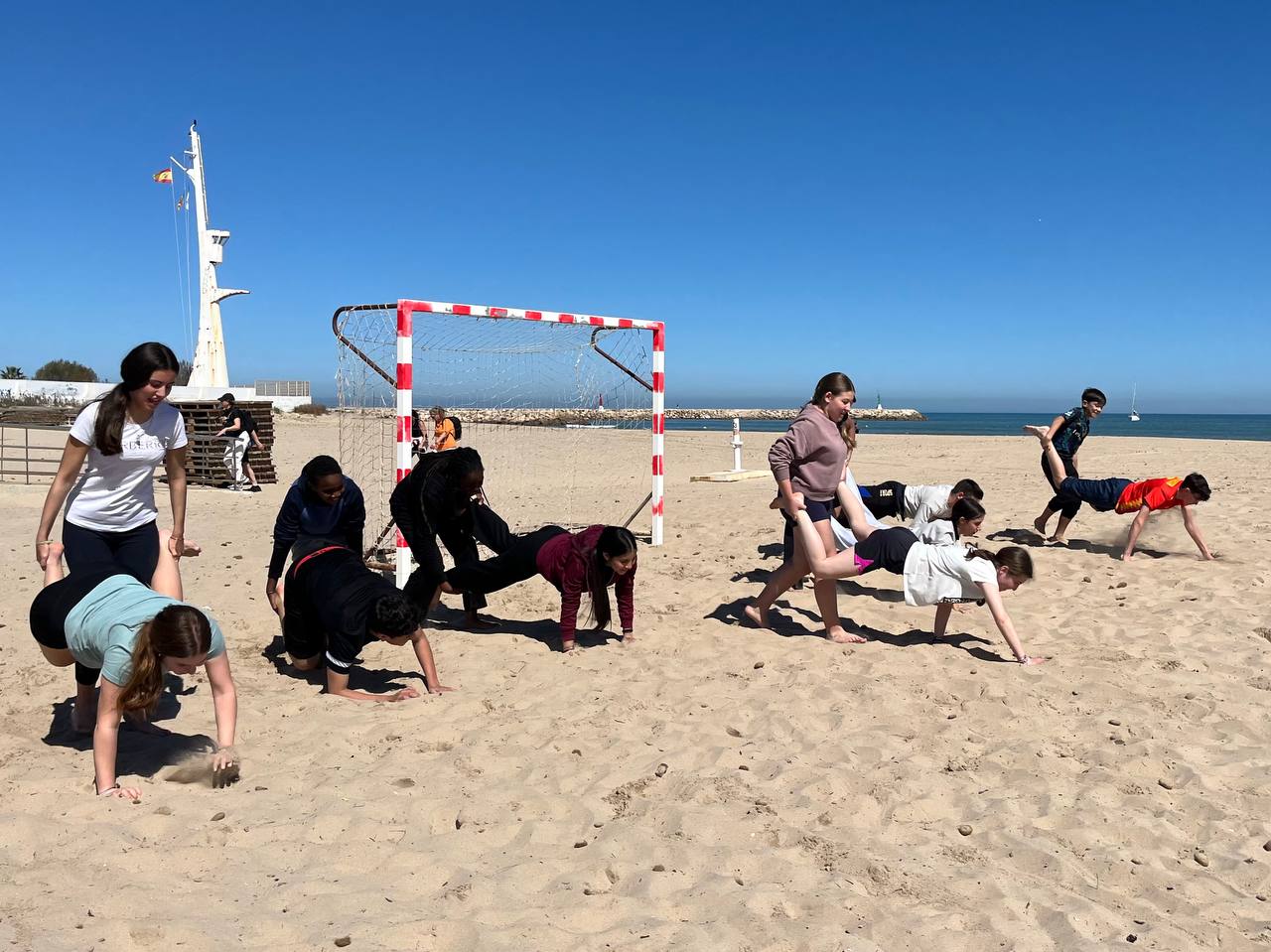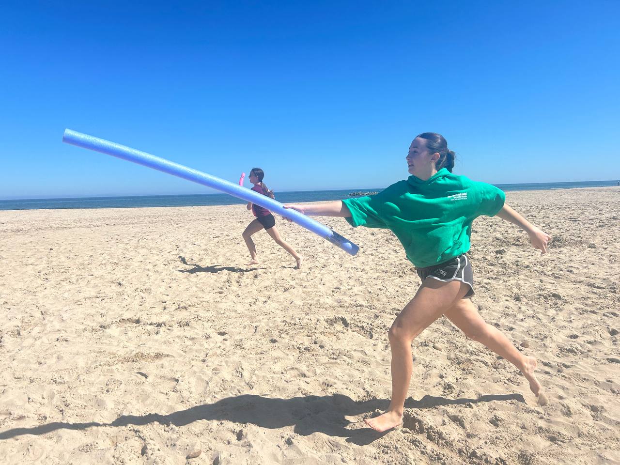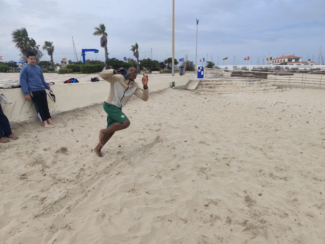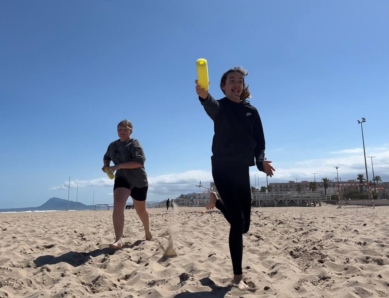 Se dividieron en dos grupos: mientras uno practicaba el tiro con arco, el otro disfrutaba de juegos y deportes en la playa, aprovechando un momento de ejercicio y diversión al aire libre.