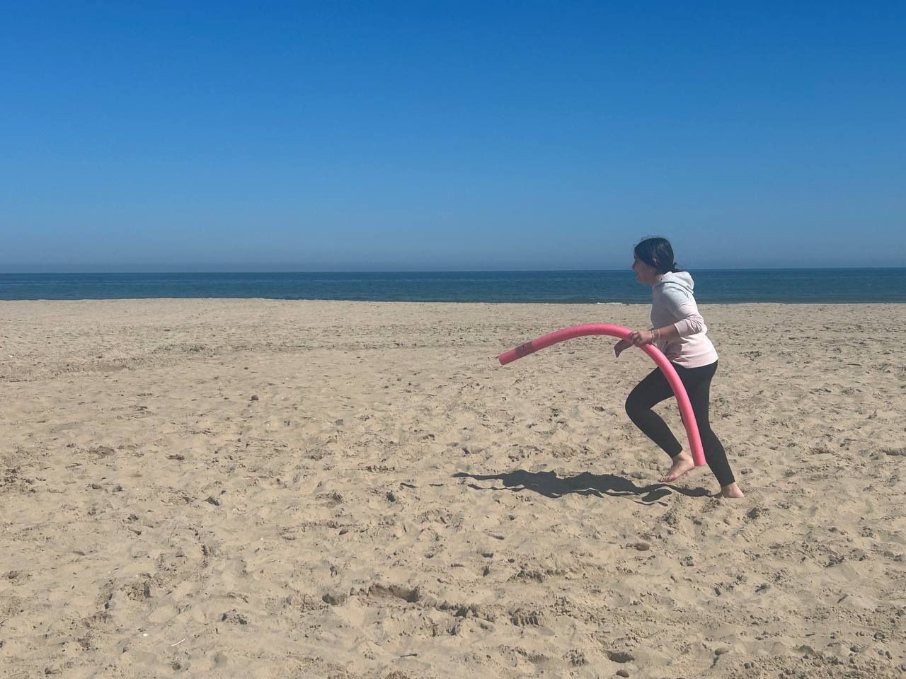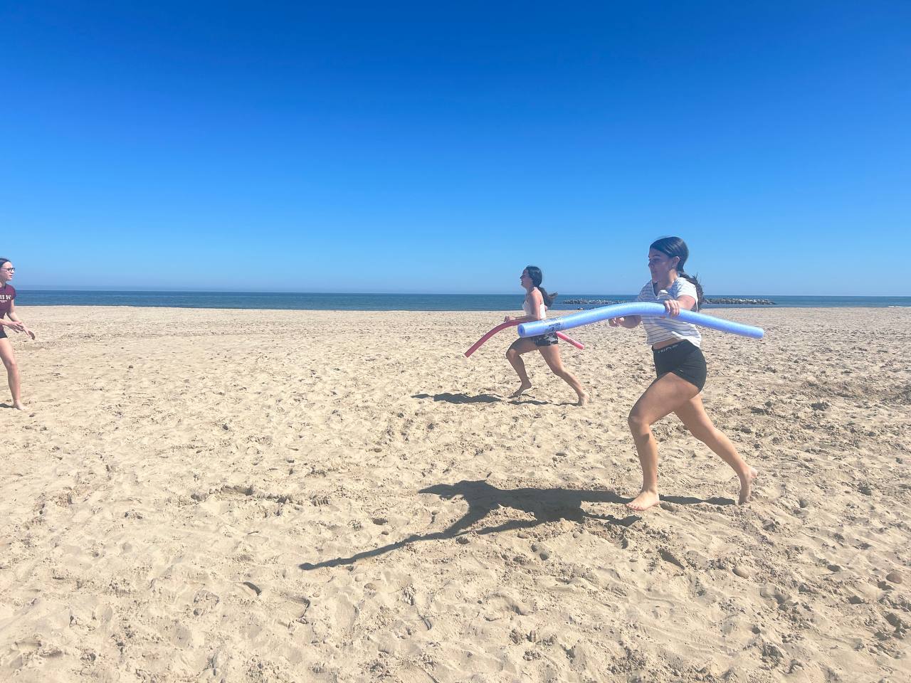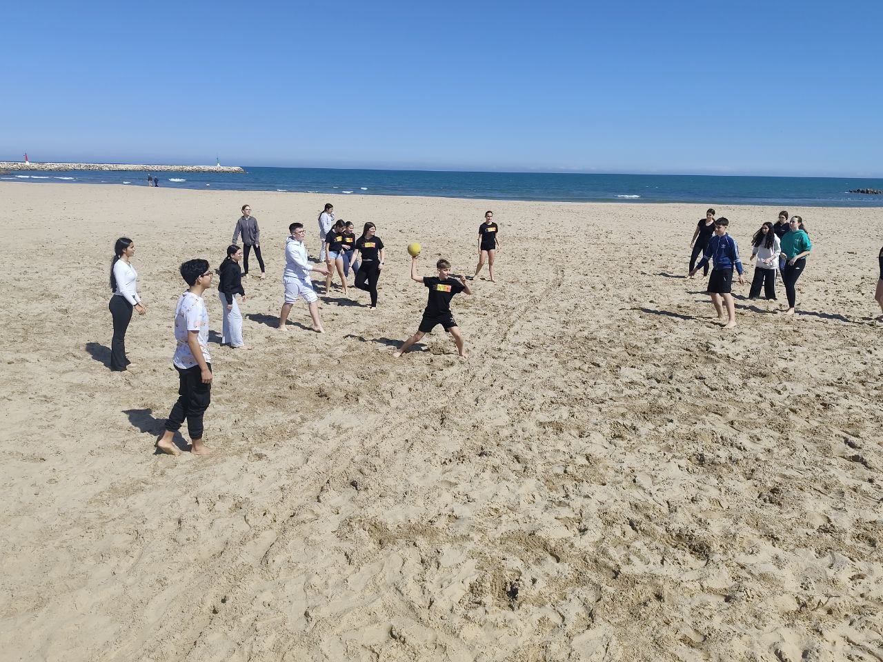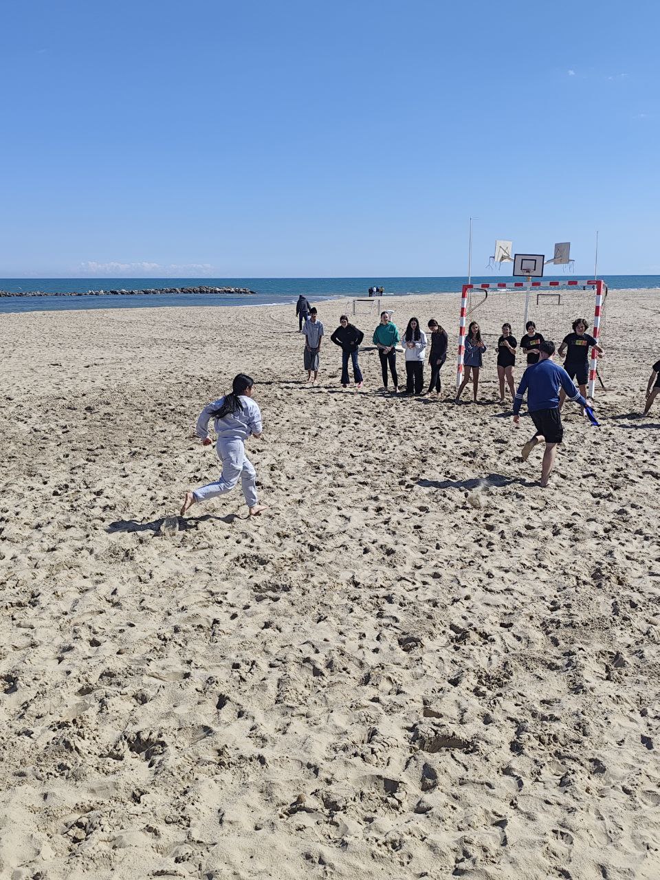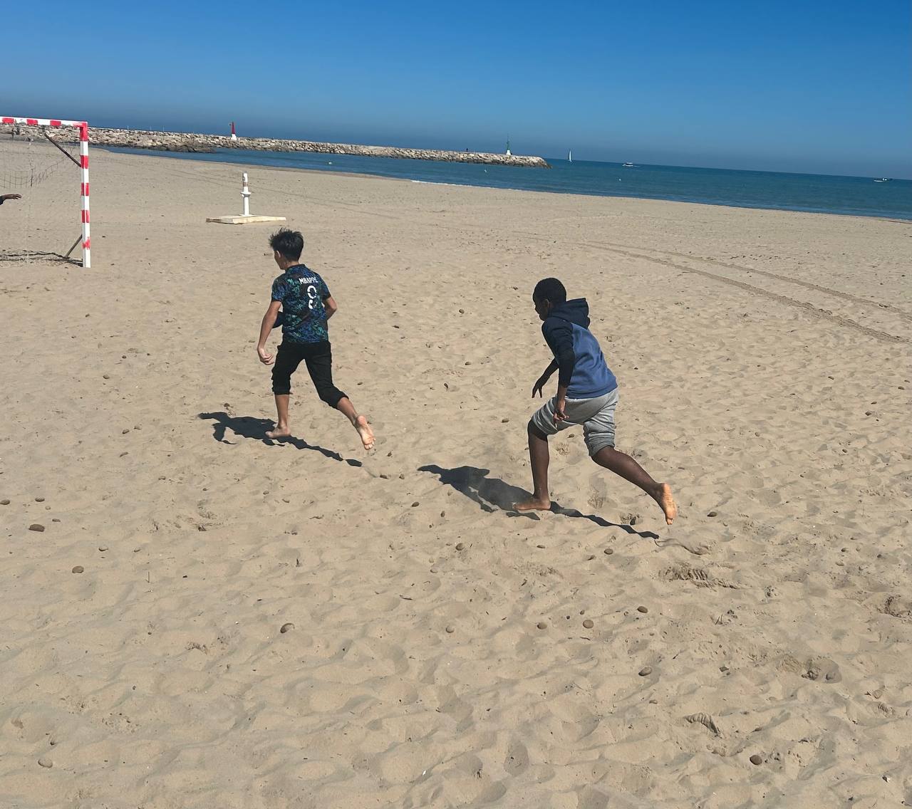 Se dividieron en dos grupos: mientras uno practicaba el tiro con arco, el otro disfrutaba de juegos y deportes en la playa, aprovechando un momento de ejercicio y diversión al aire libre.