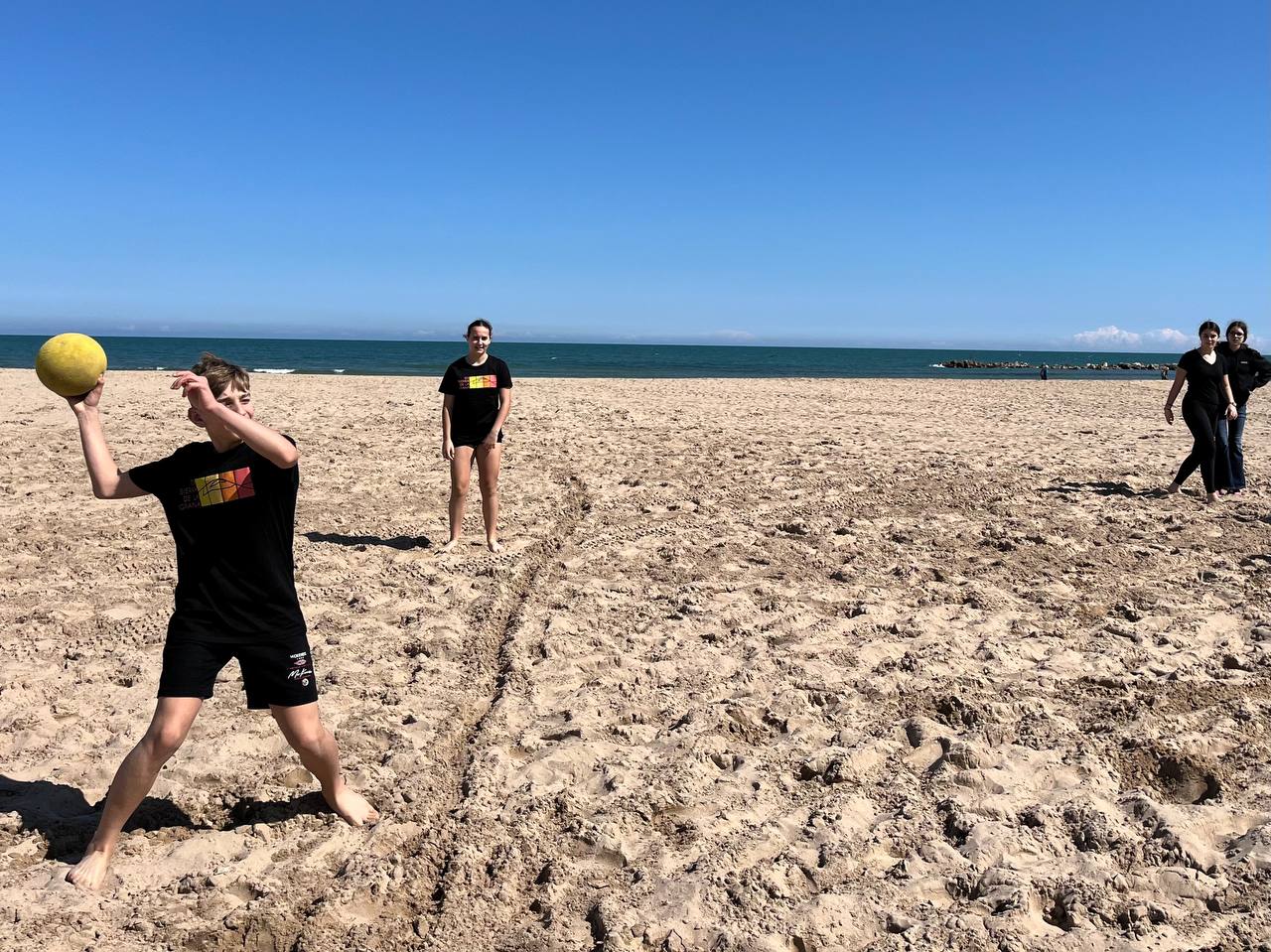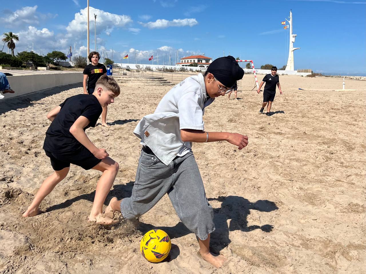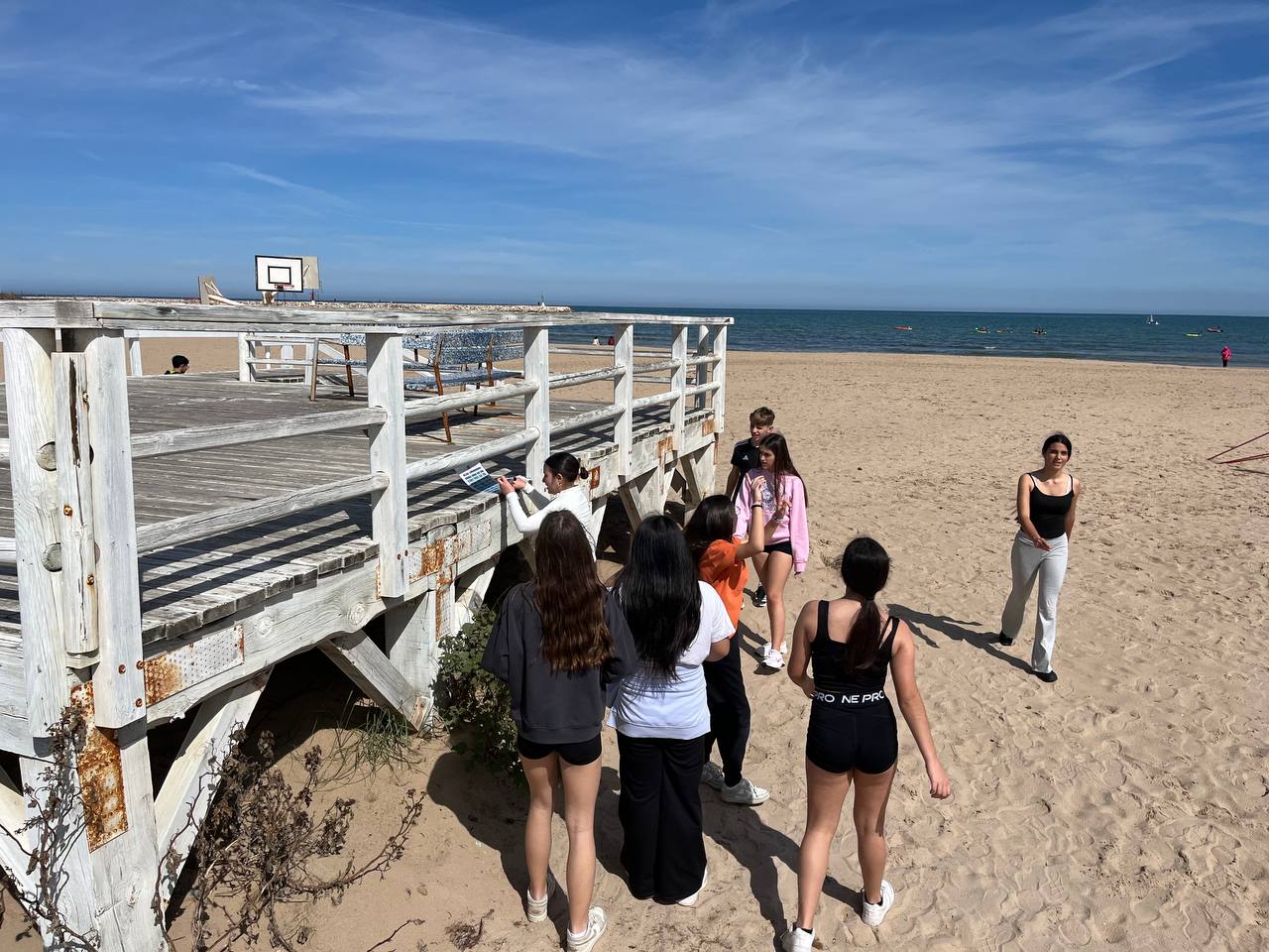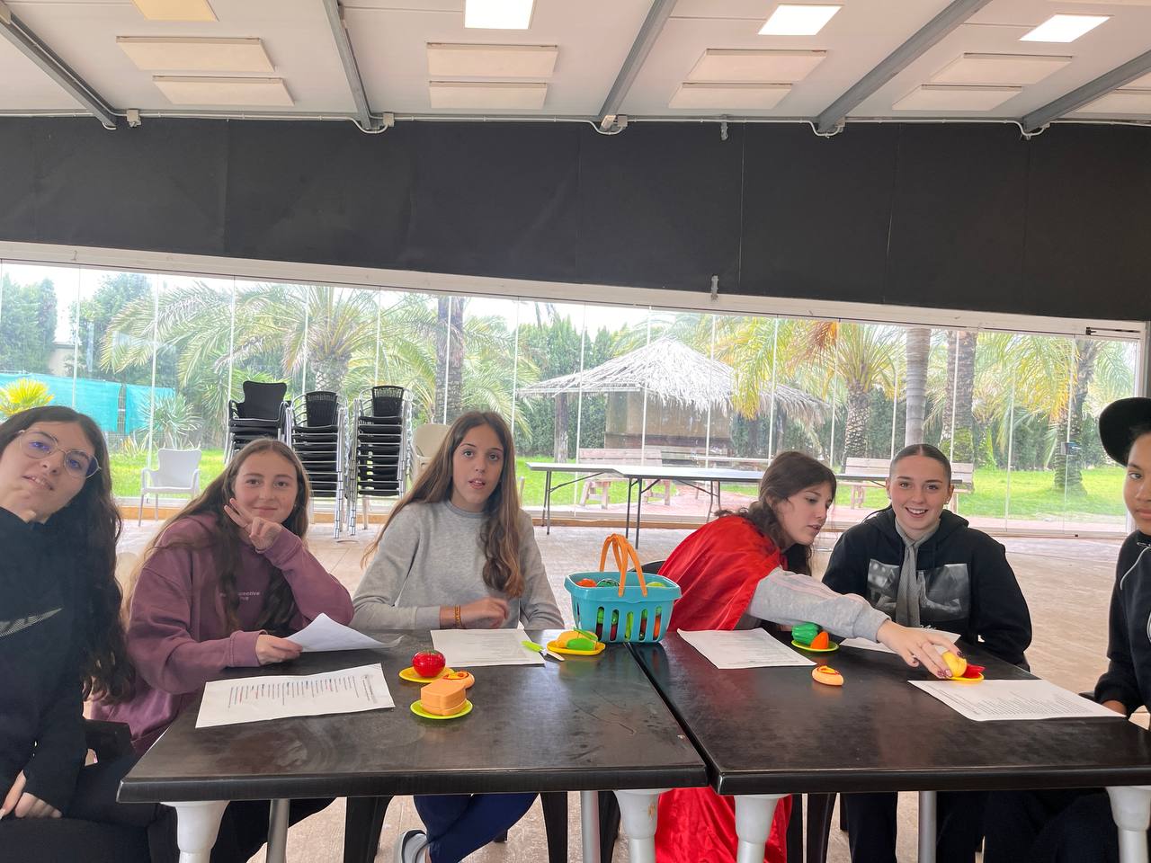 Después del "snack", los alumnos salieron nuevamente a los alrededores del hotel, acompañados por los profesores del programa de inmersión, esta vez, para realizar la actividad "Foodie Hunters". Cada grupo debe encontrar los ingredientes escondidos alrededor del paseo marítimo de Oliva para posteriormente, describir los platos que podrían crear con ellos.