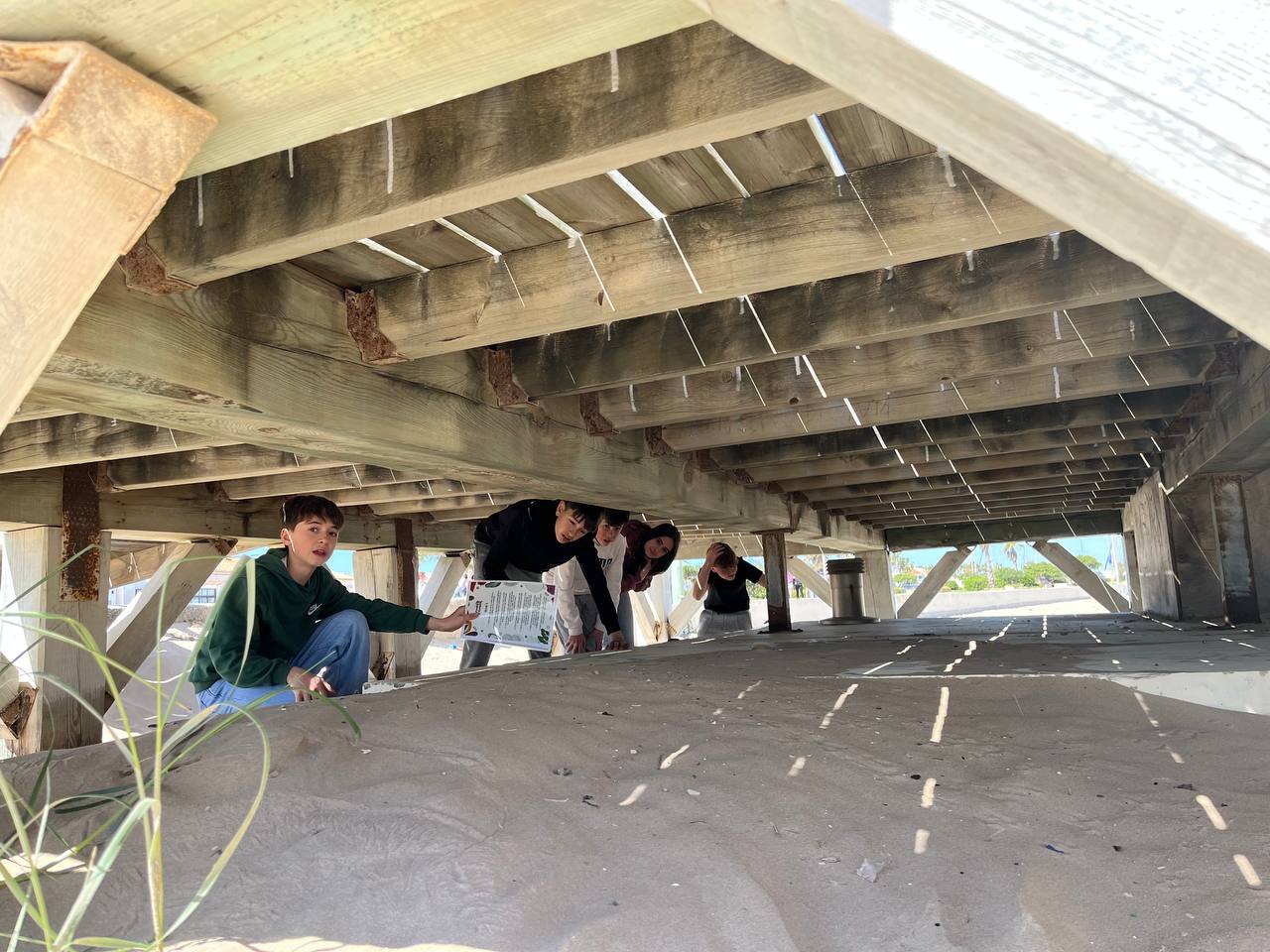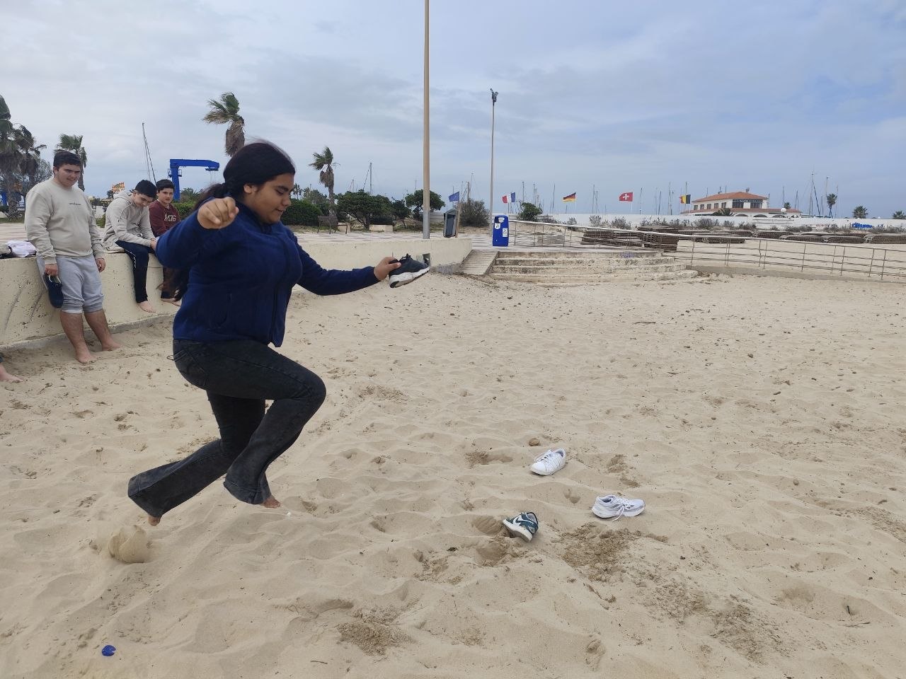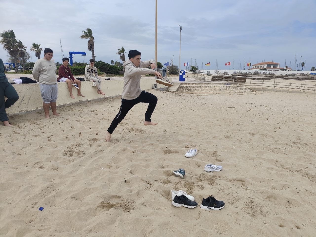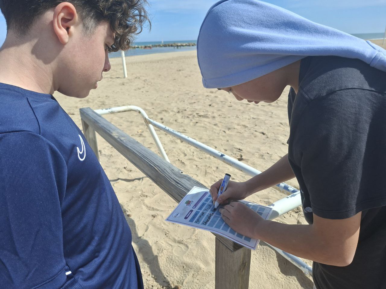 Después del "snack", los alumnos salieron nuevamente a los alrededores del hotel, acompañados por los profesores del programa de inmersión, esta vez, para realizar la actividad "Foodie Hunters". Cada grupo debe encontrar los ingredientes escondidos alrededor del paseo marítimo de Oliva para posteriormente, describir los platos que podrían crear con ellos.