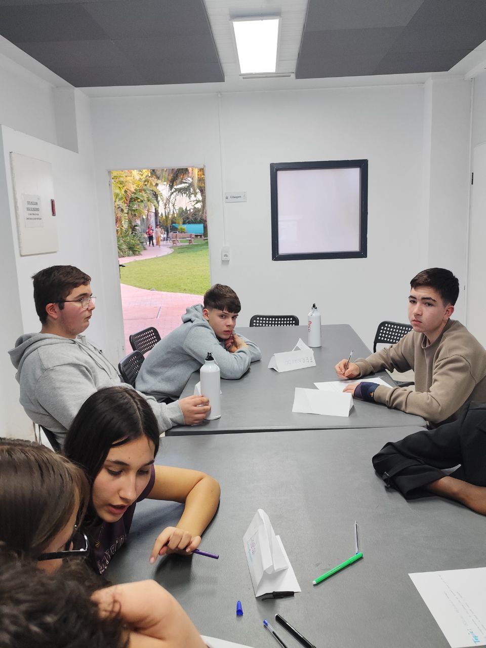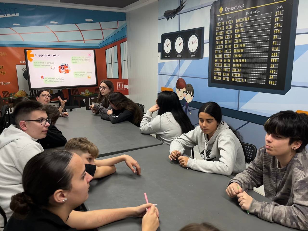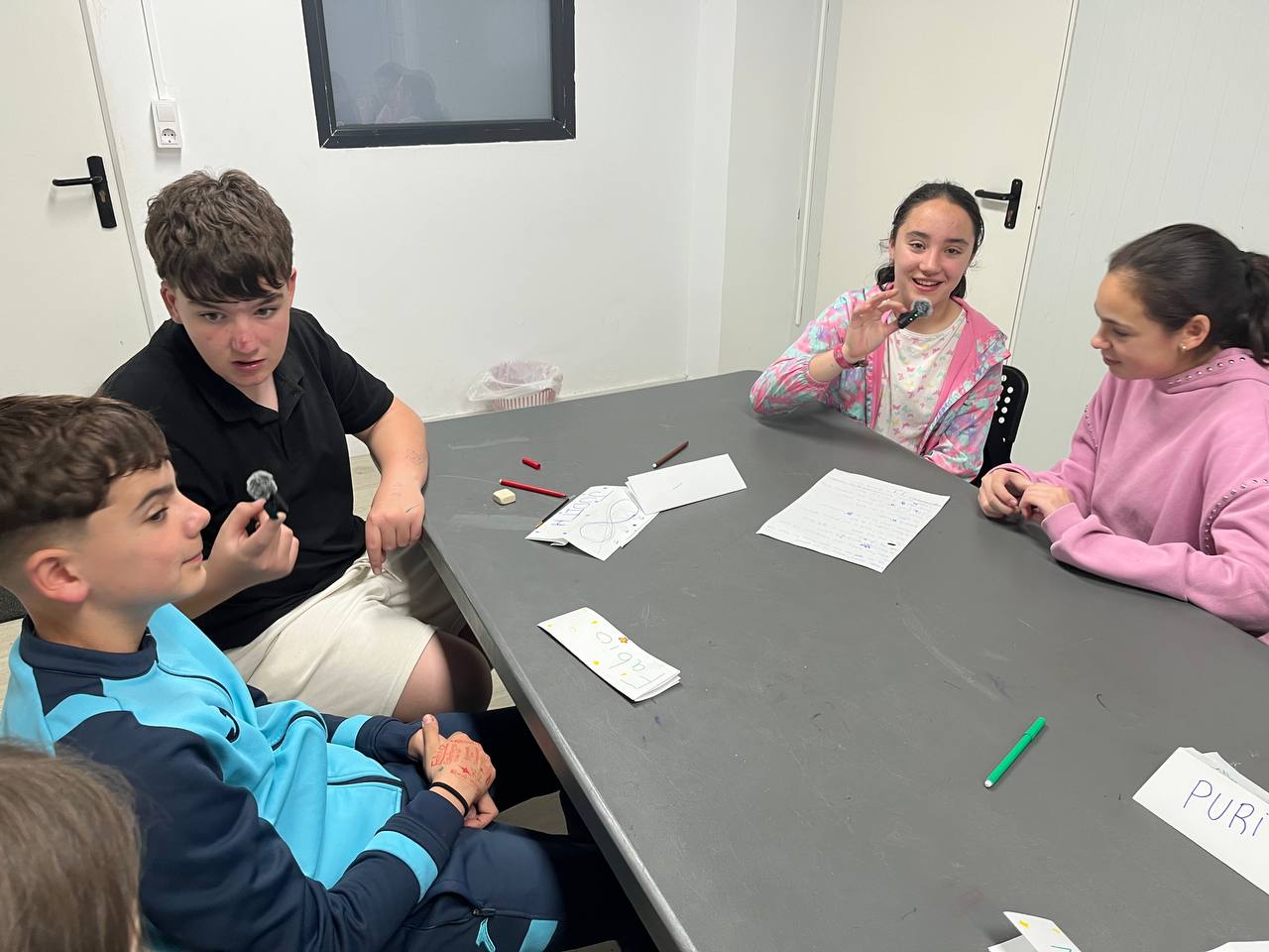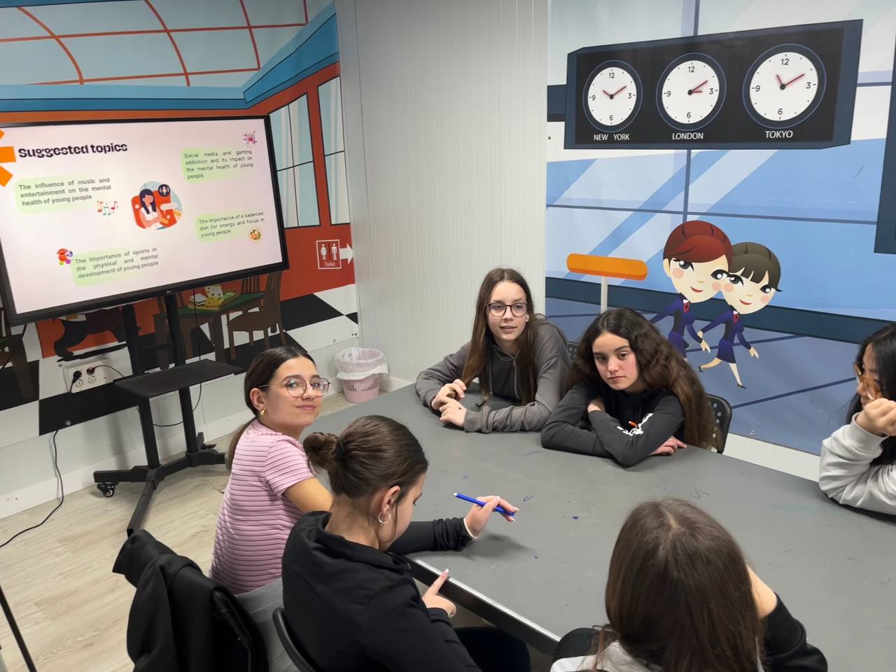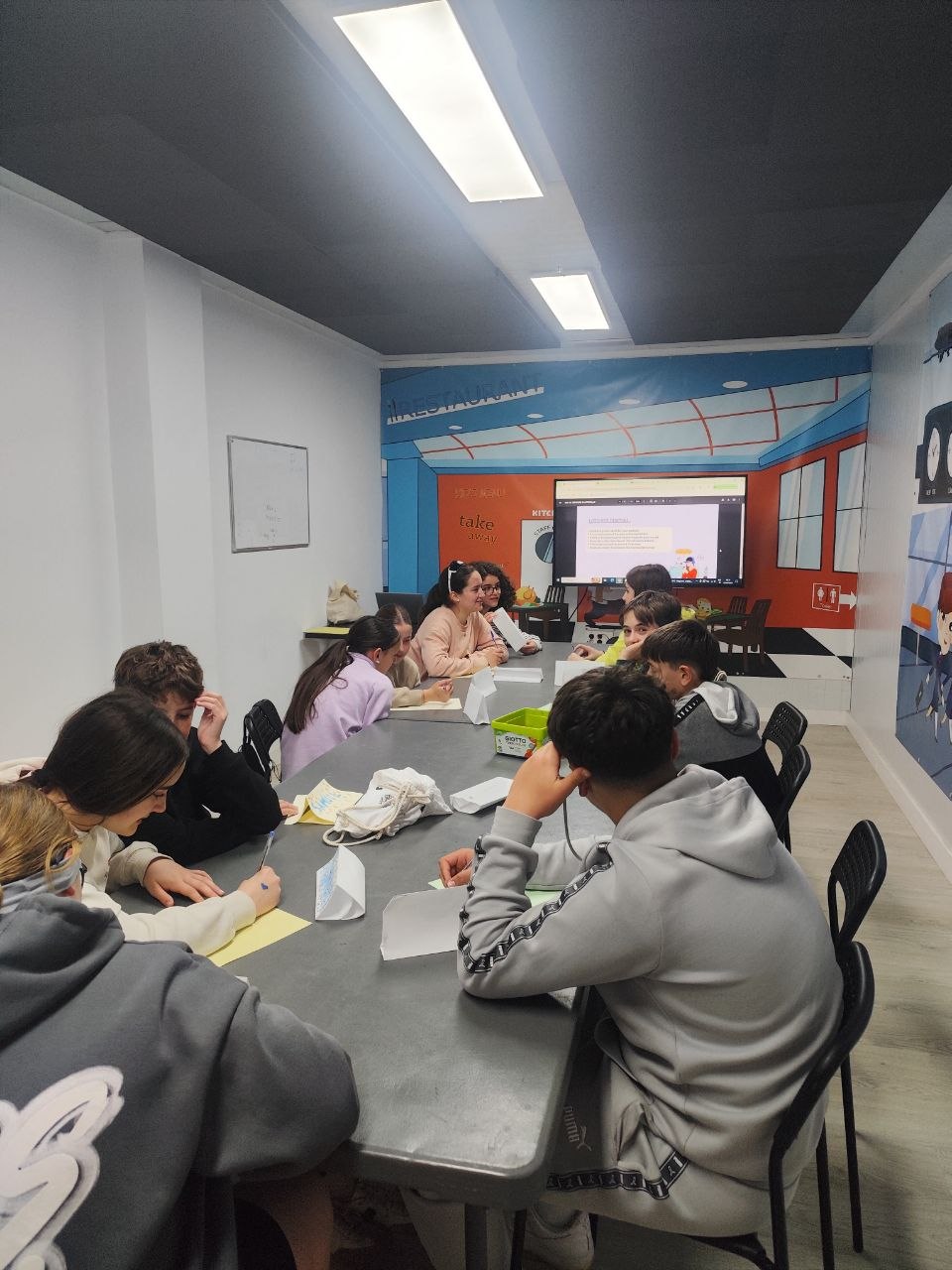 Durante la tarde, los estudiantes realizan la actividad "Future Voices". En grupos, los alumnos debaten sobre temas que les preocupan de cara al futuro y graban un podcast que compartirán luego con los otros grupos. Ha sido muy interesante y enriquecedor.