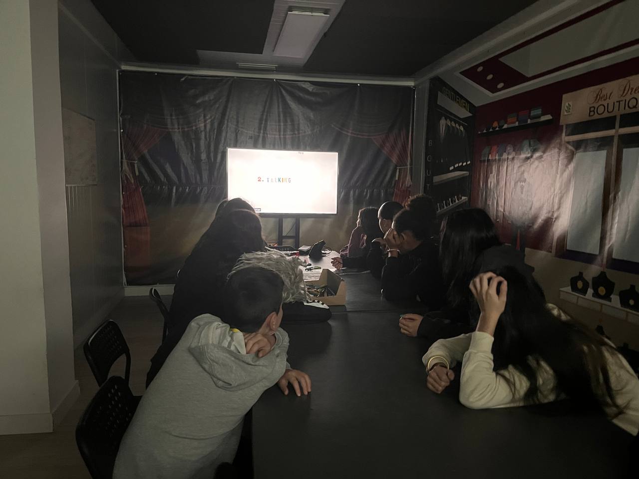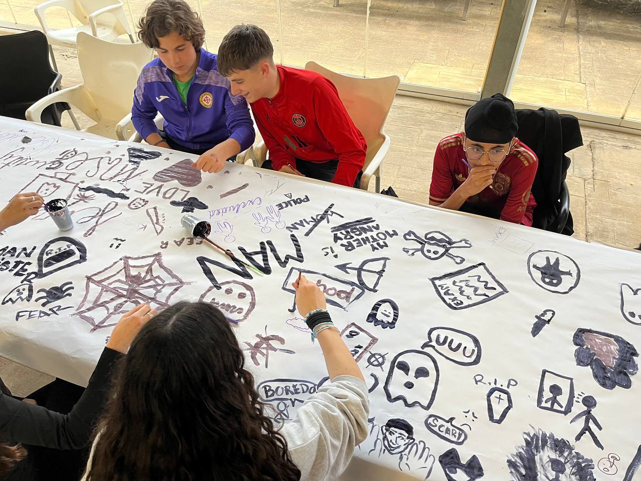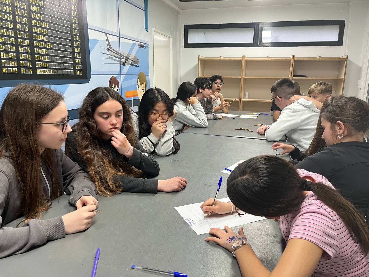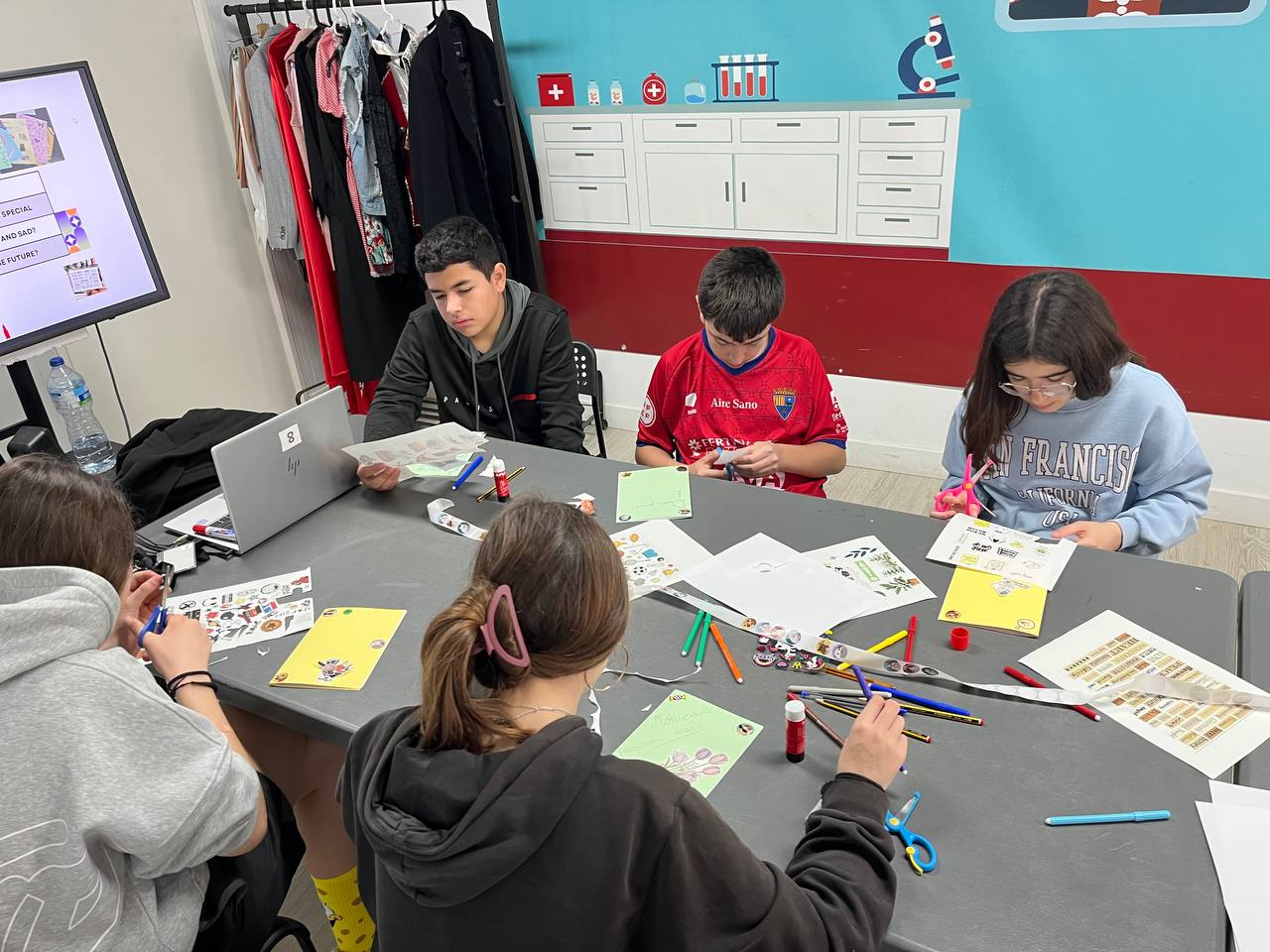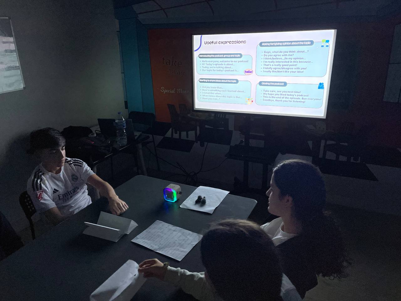 Durante la tarde, los estudiantes realizan la actividad "Future Voices". En grupos, los alumnos debaten sobre temas que les preocupan de cara al futuro y graban un podcast que compartirán luego con los otros grupos. Ha sido muy interesante y enriquecedor.