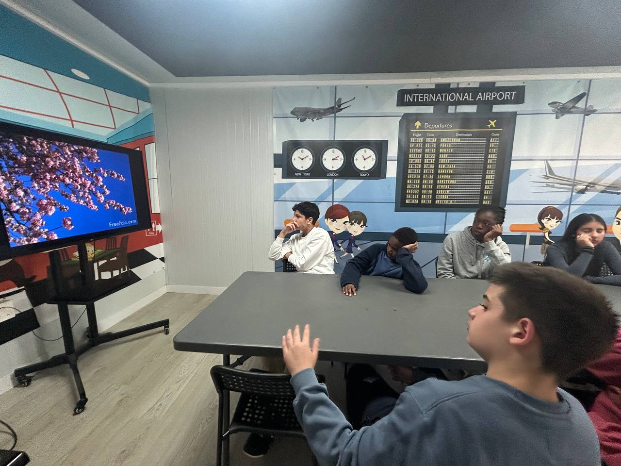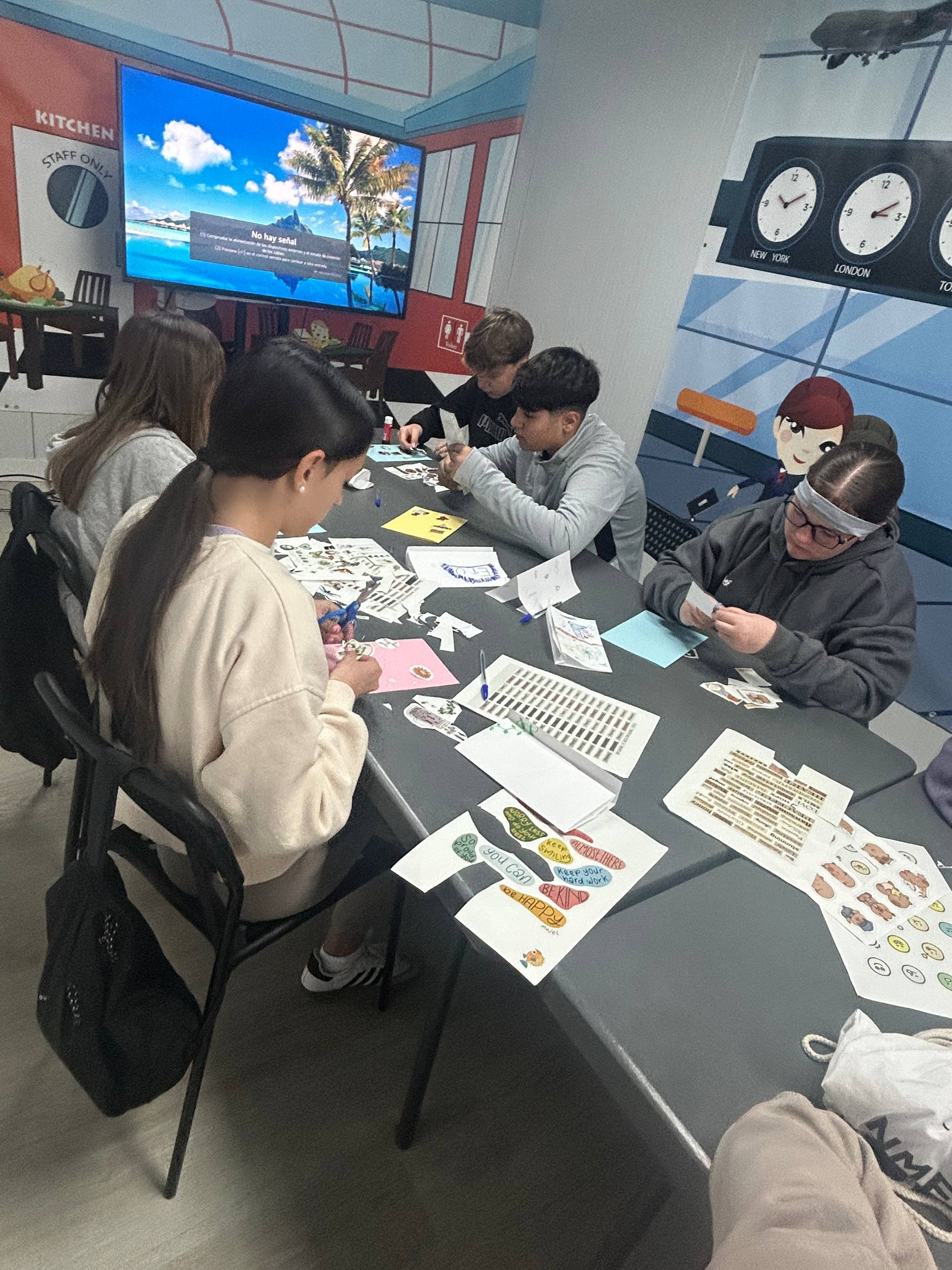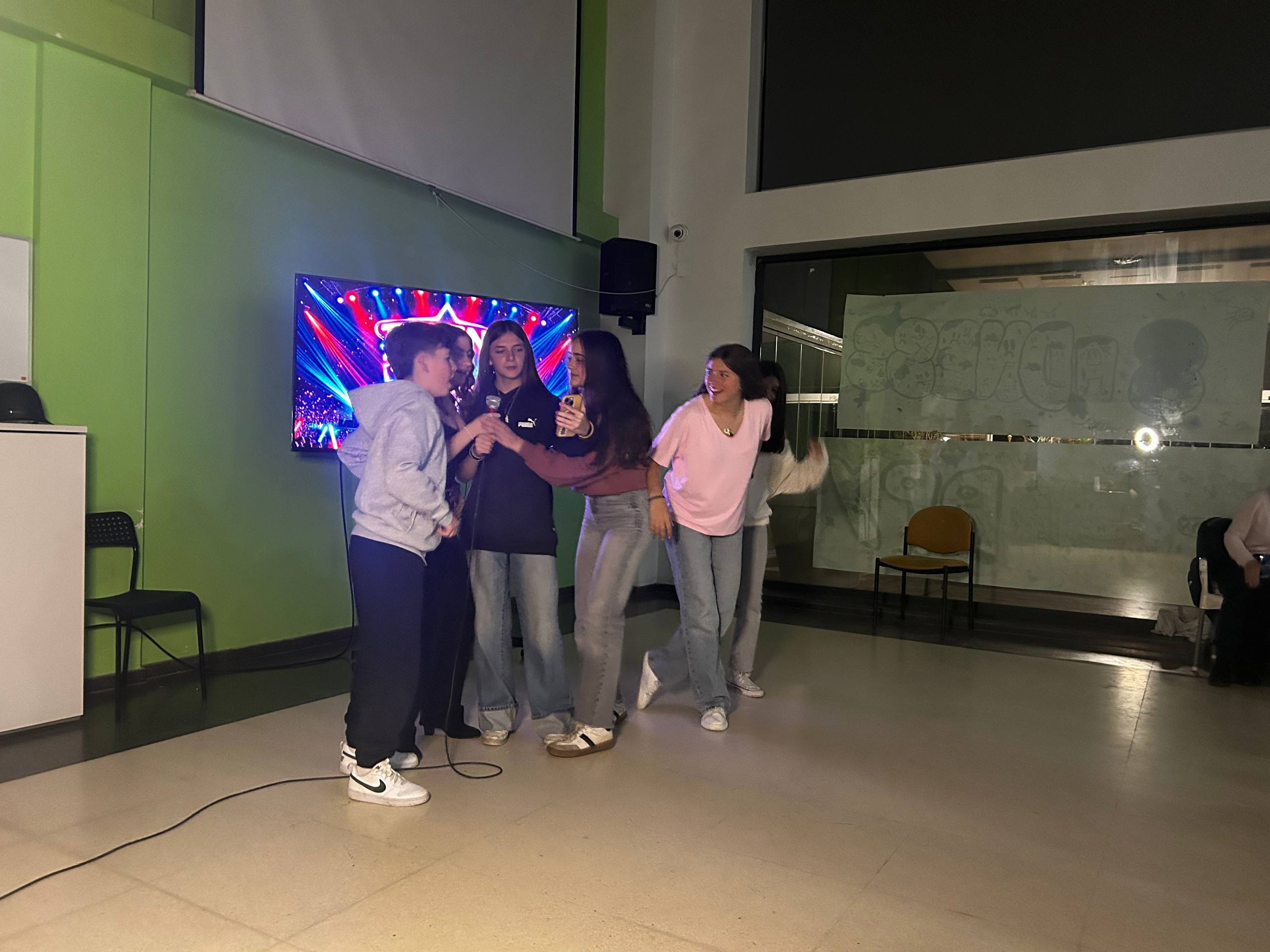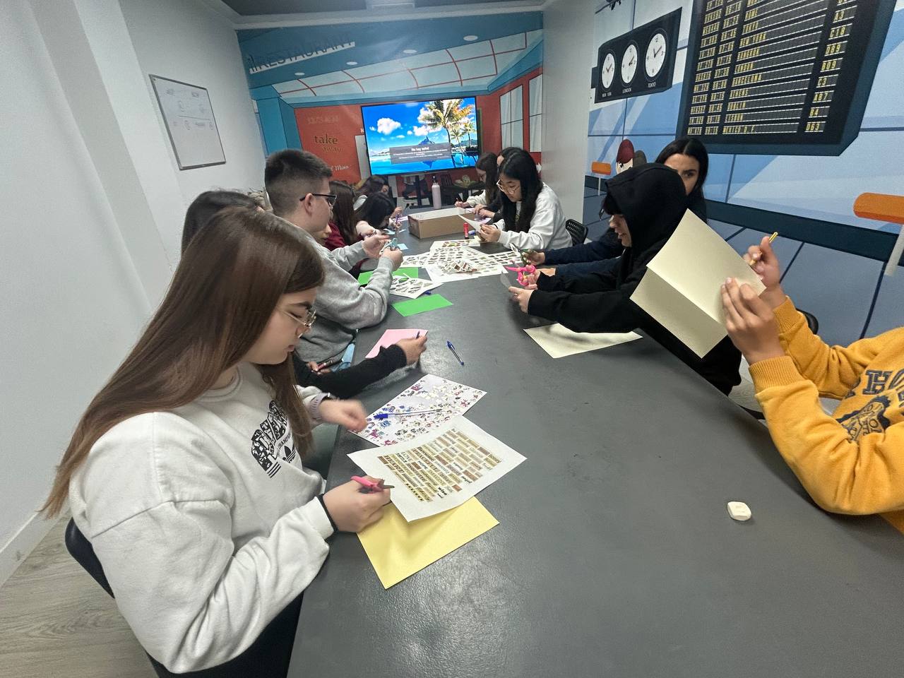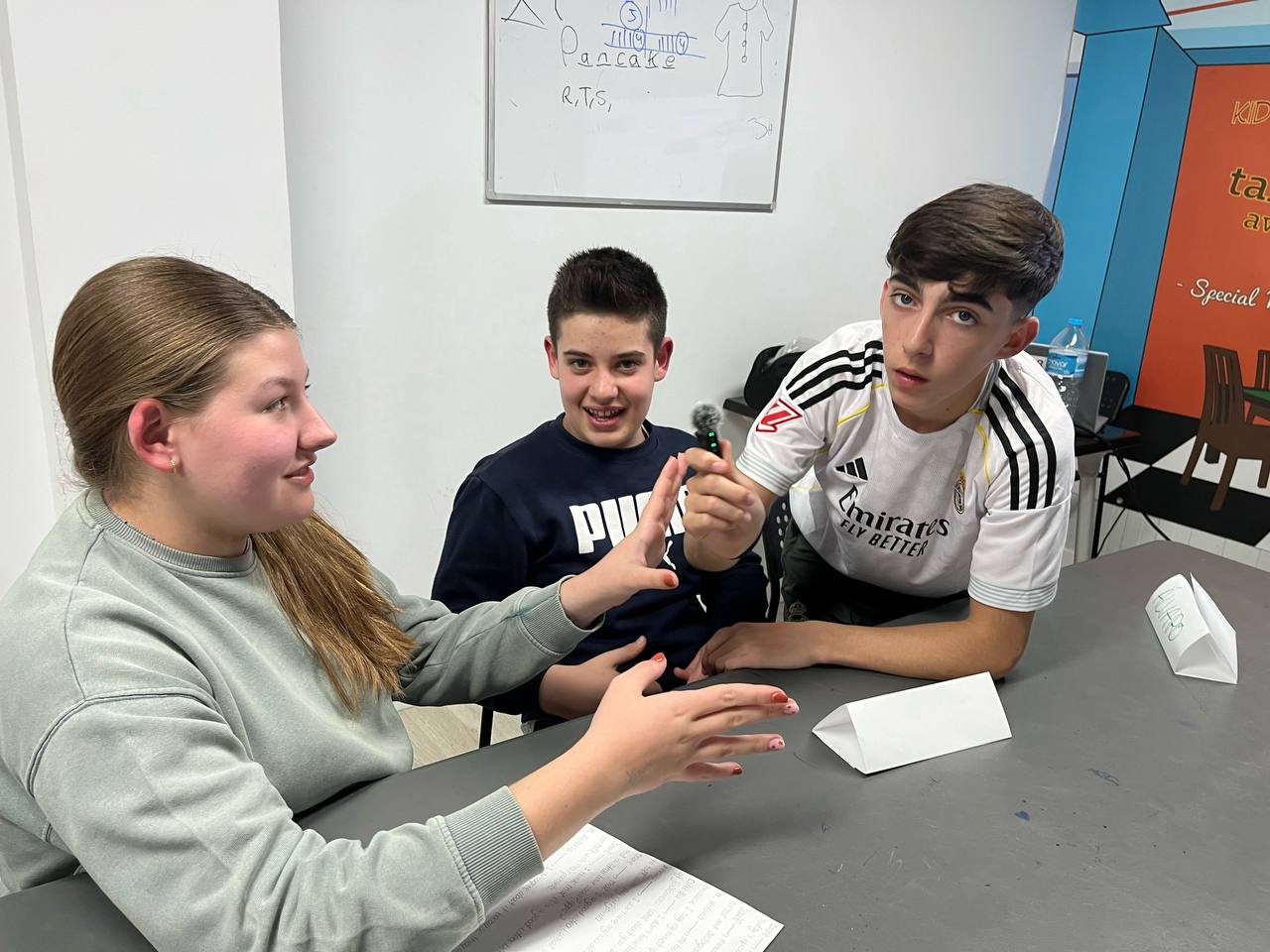 Durante la tarde, los estudiantes realizan la actividad "Future Voices". En grupos, los alumnos debaten sobre temas que les preocupan de cara al futuro y graban un podcast que compartirán luego con los otros grupos. Ha sido muy interesante y enriquecedor.