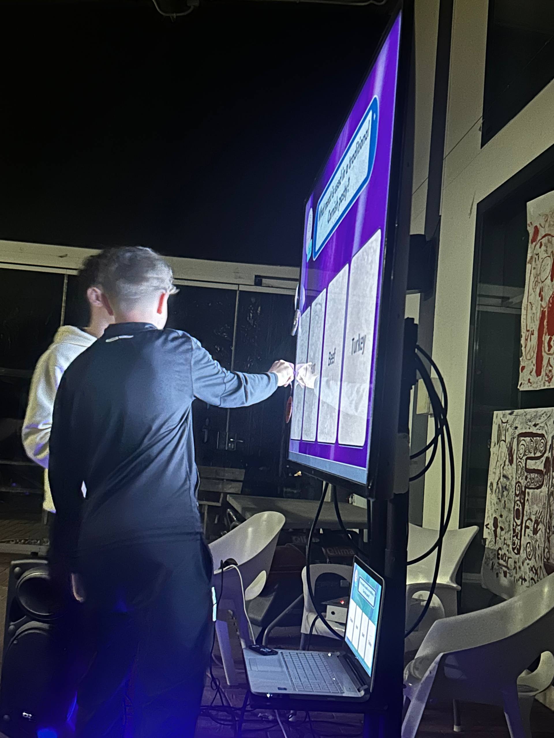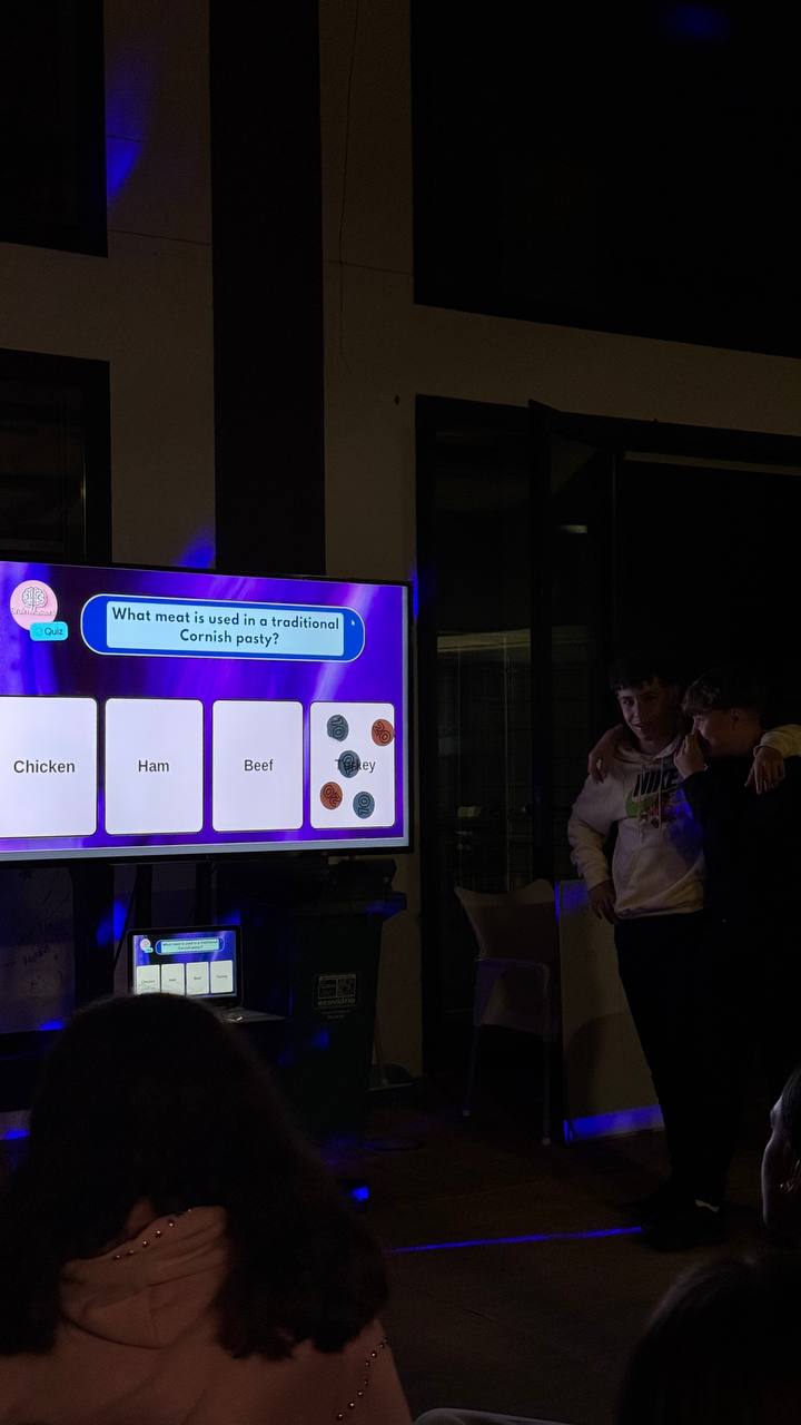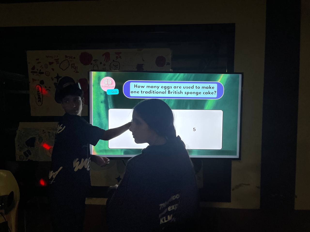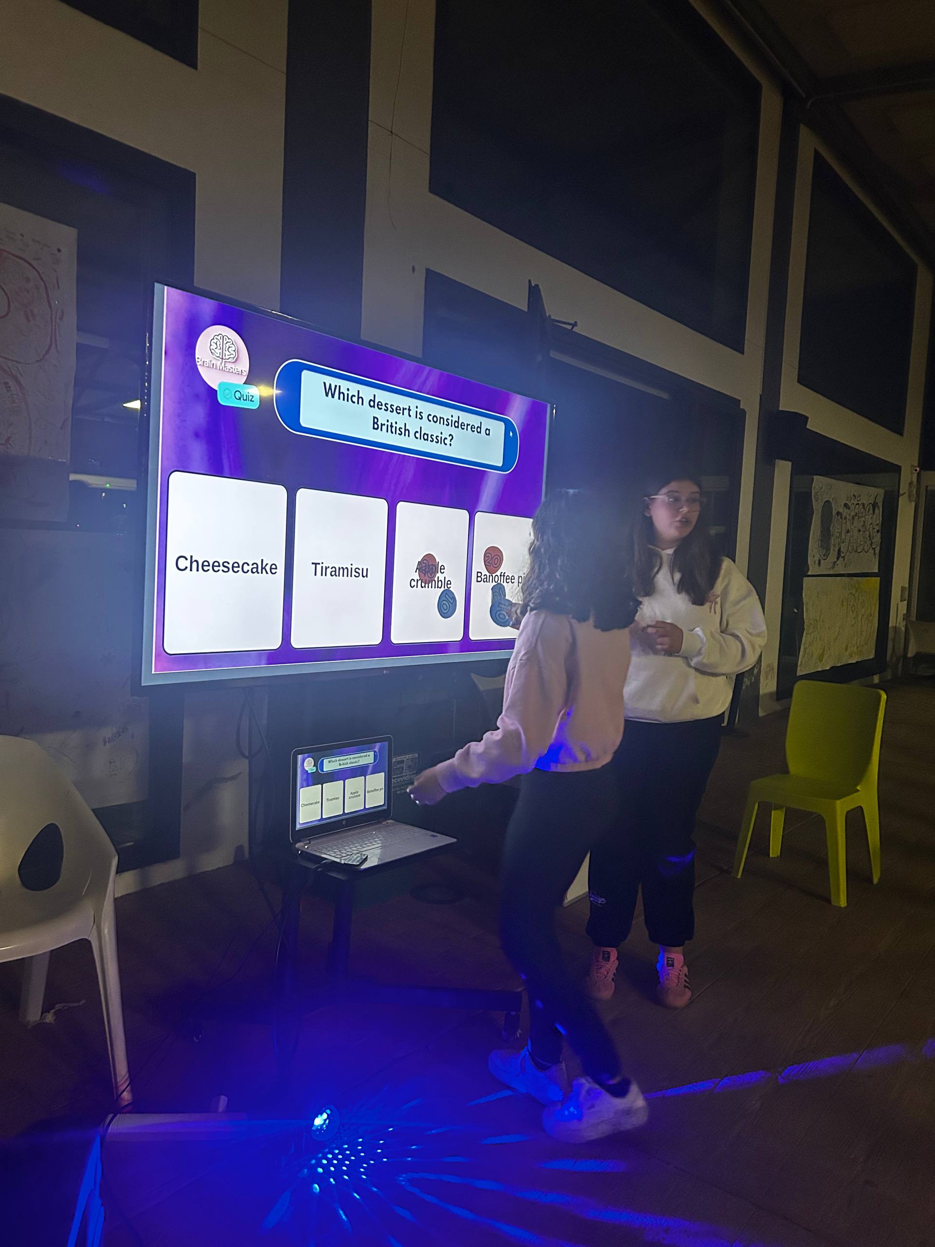 Tras la cena, los estudiantes participaron en la actividad "Quiz masters: The Challenge Show". En este concurso, los alumnos se dividen en dos equipos y compiten en varias rondas de preguntas y desafíos divertidos sobre gastronomía inglesa.