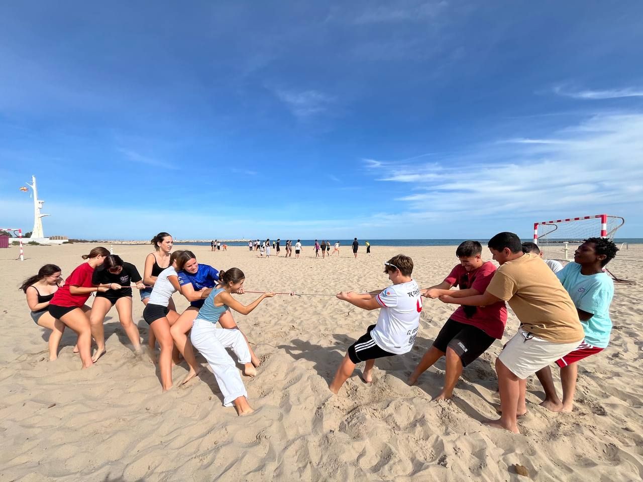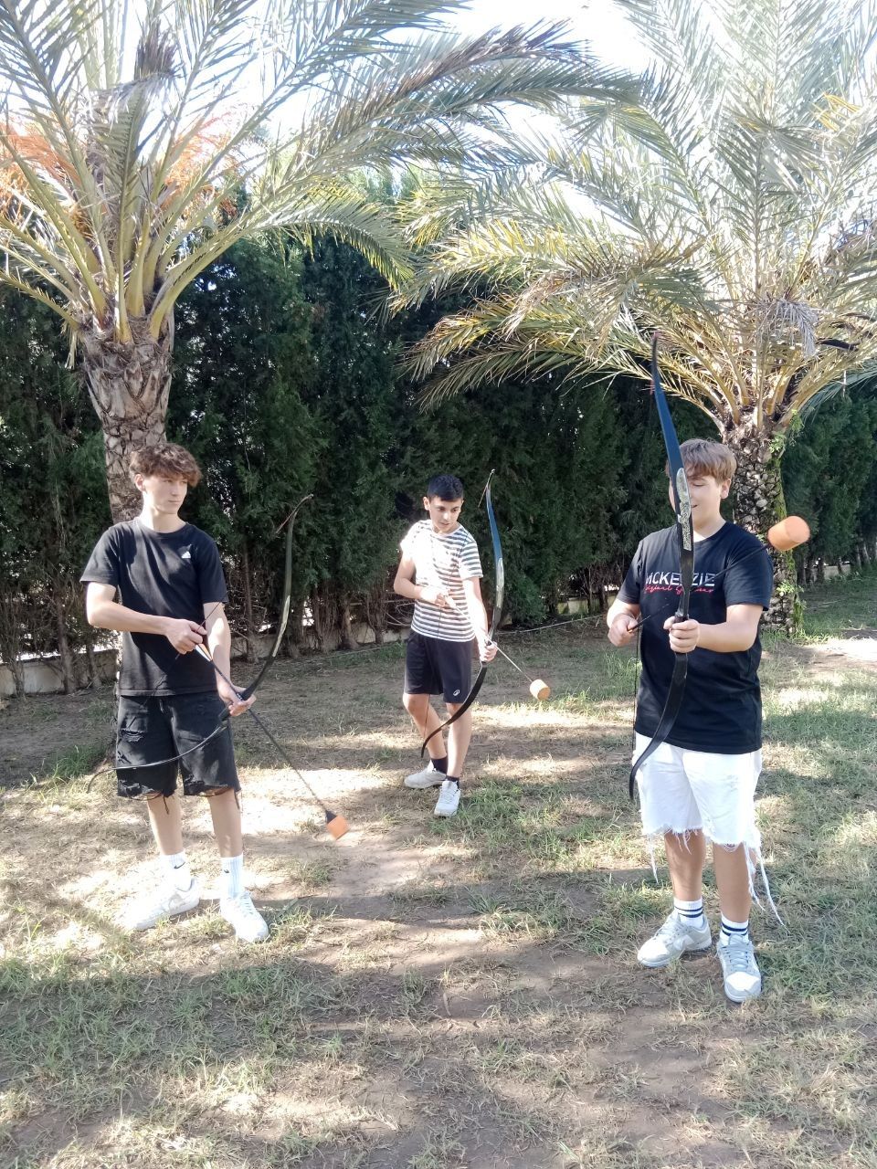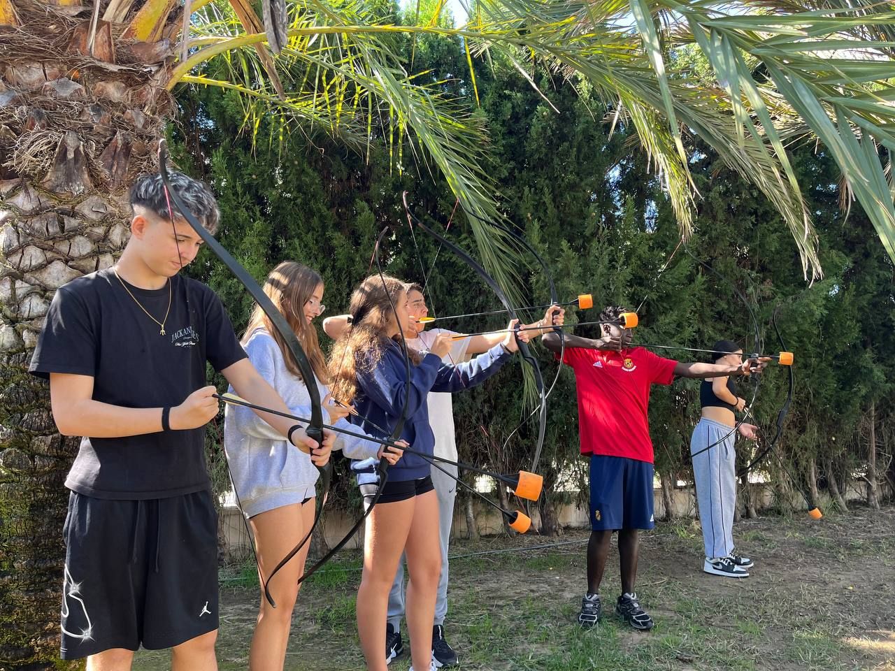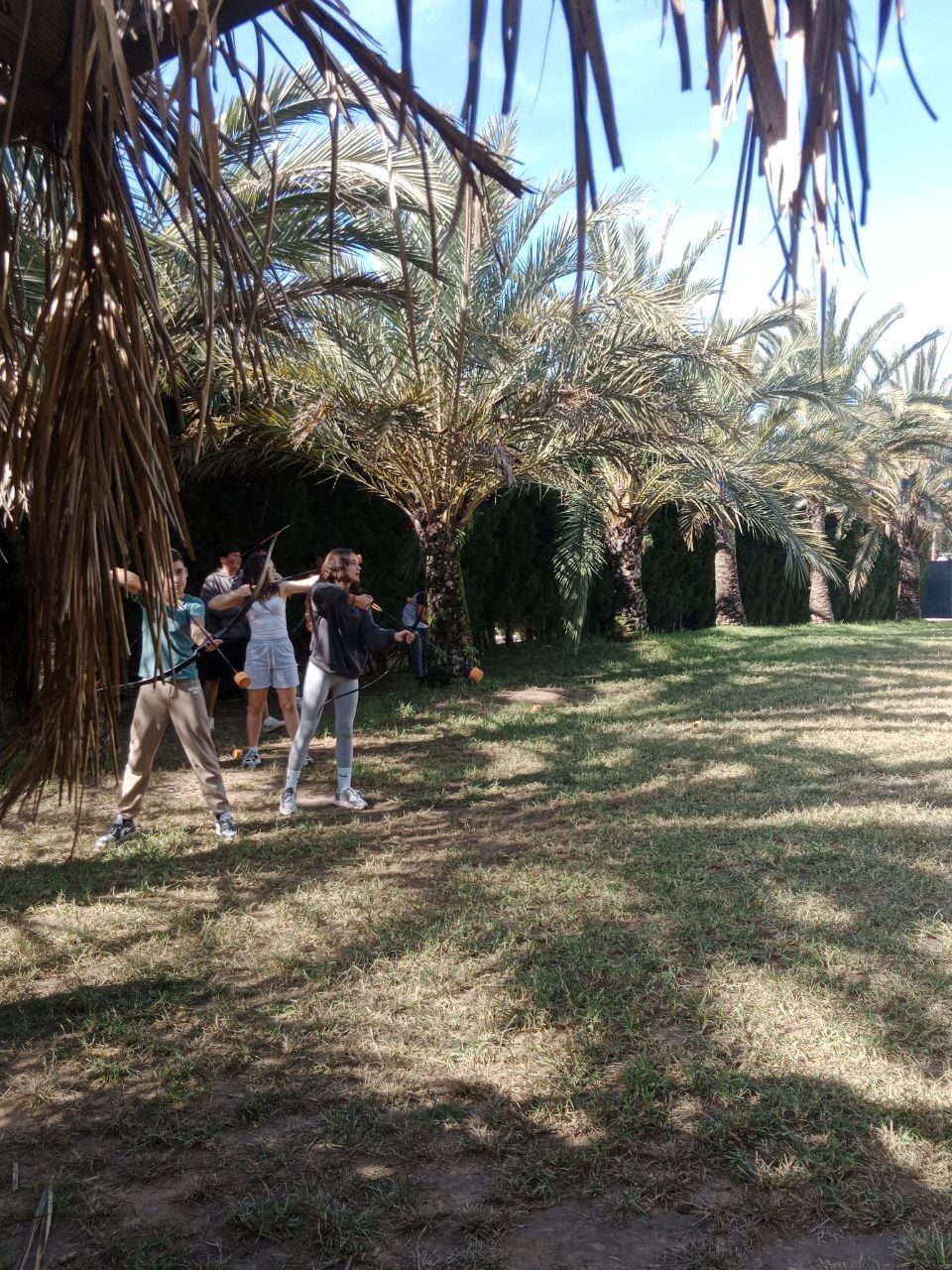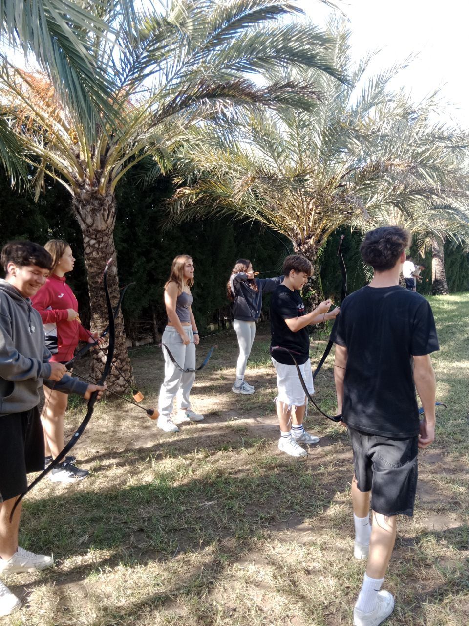 Se dividieron en dos grupos: mientras uno practicaba el tiro con arco, el otro disfrutaba de juegos y deportes en la playa, aprovechando un momento de ejercicio y diversión al aire libre.
