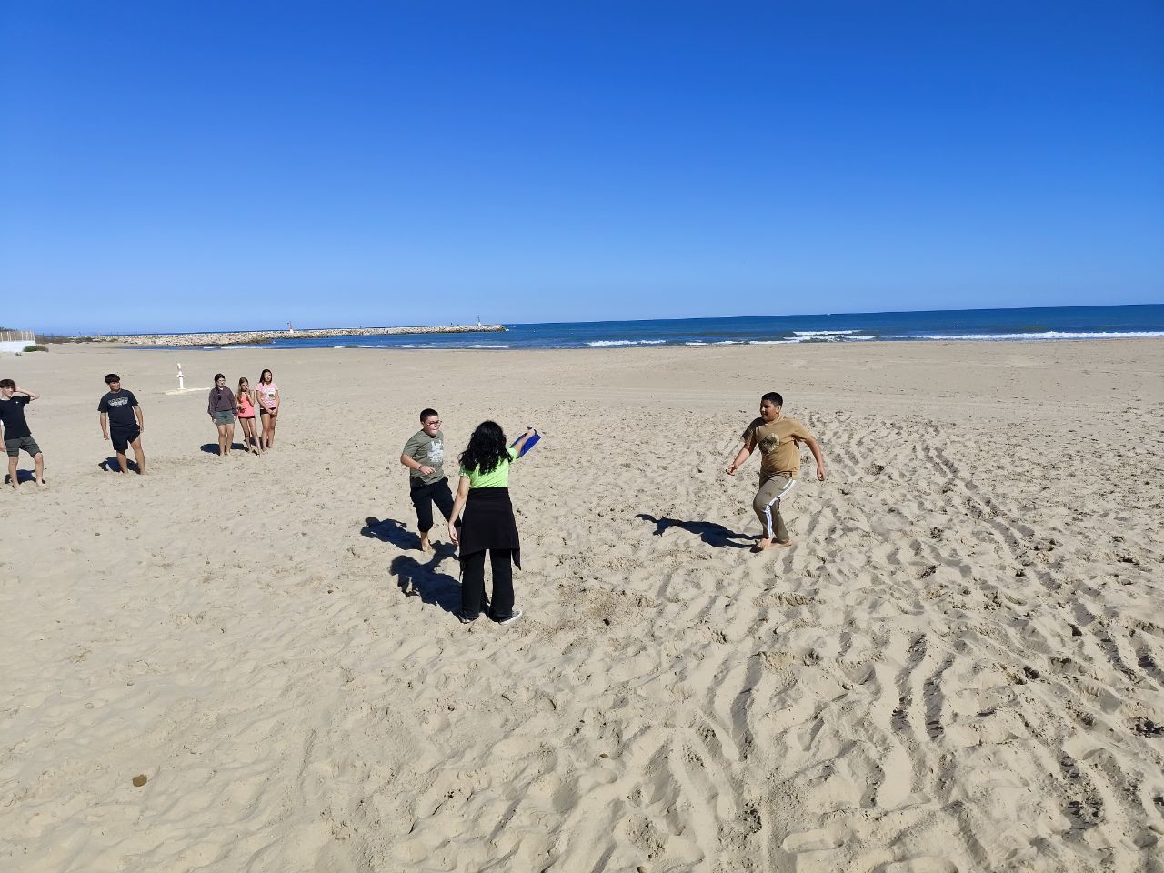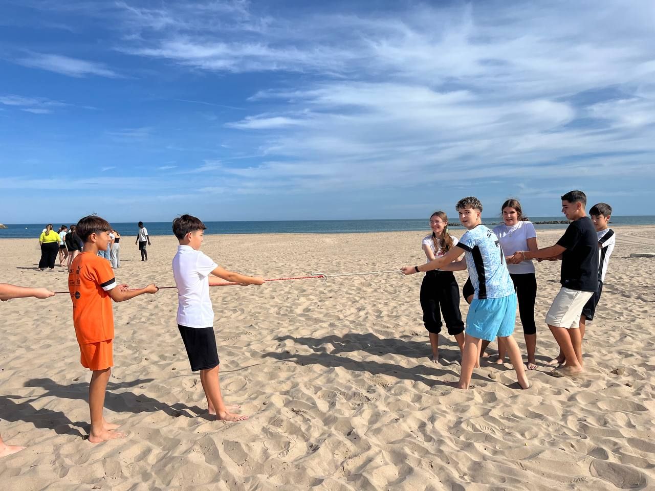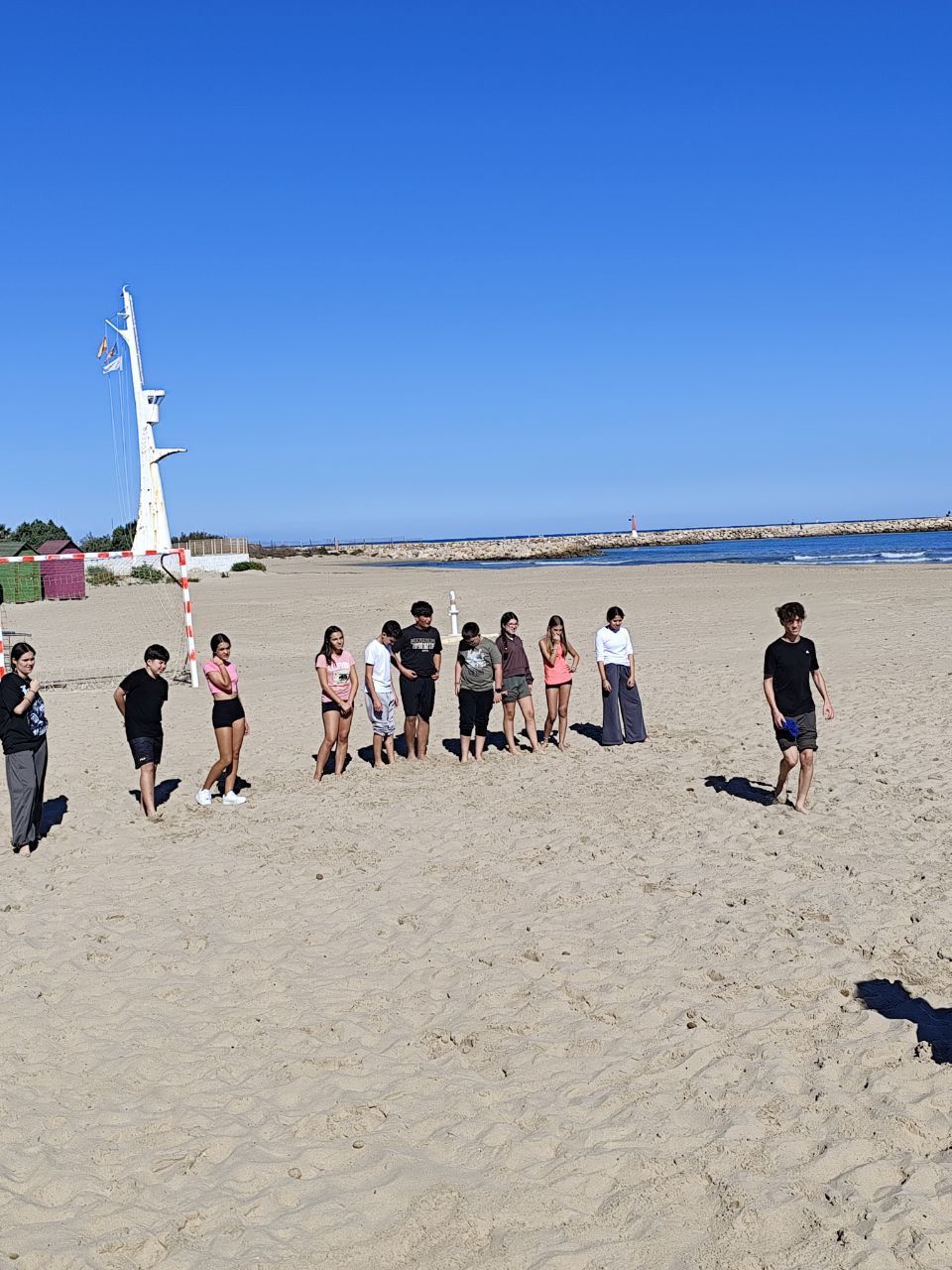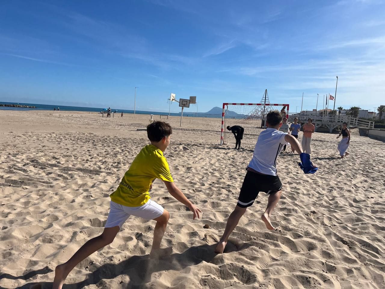 Se dividieron en dos grupos: mientras uno practicaba el tiro con arco, el otro disfrutaba de juegos y deportes en la playa, aprovechando un momento de ejercicio y diversión al aire libre.