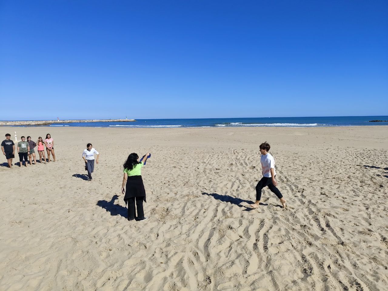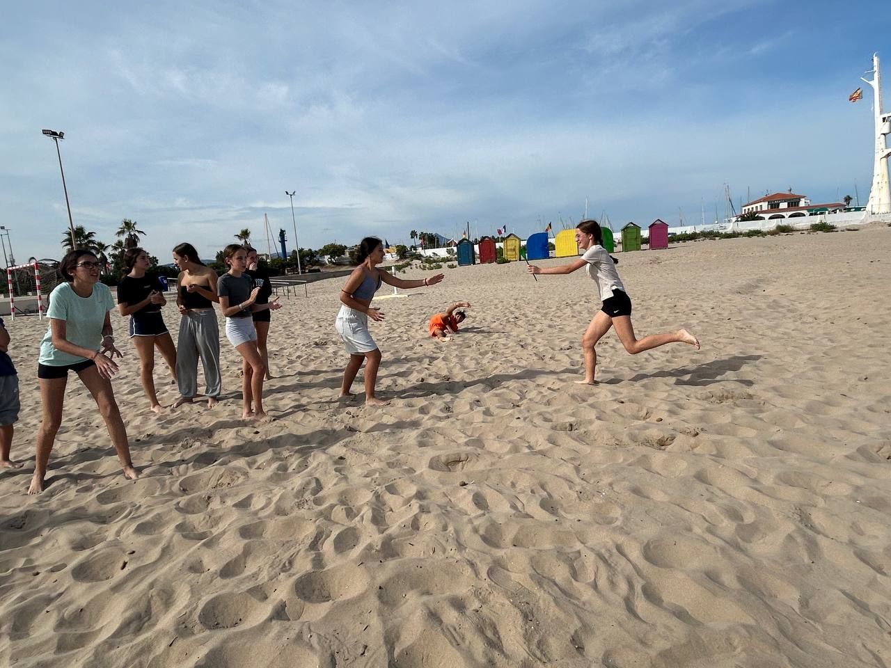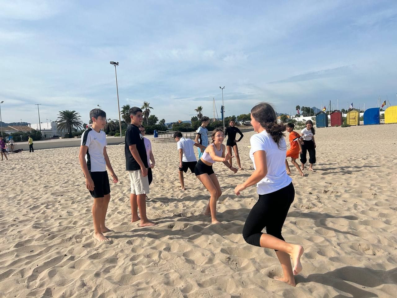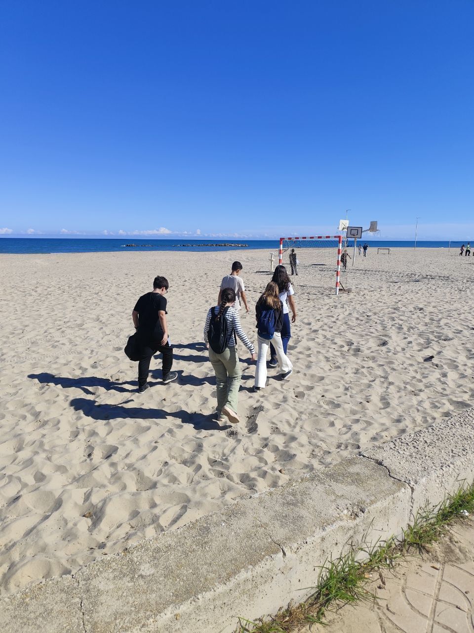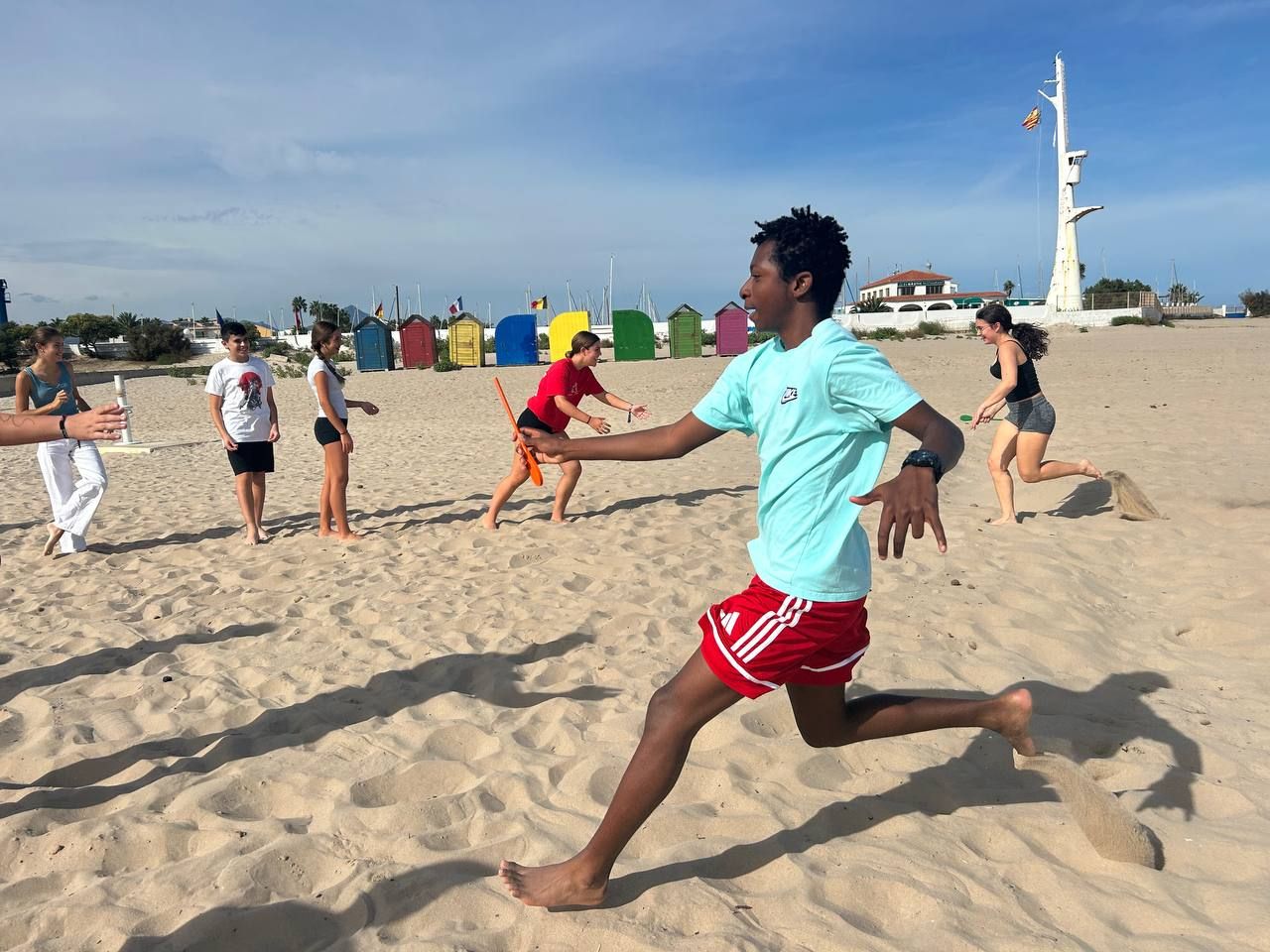 Se dividieron en dos grupos: mientras uno practicaba el tiro con arco, el otro disfrutaba de juegos y deportes en la playa, aprovechando un momento de ejercicio y diversión al aire libre.