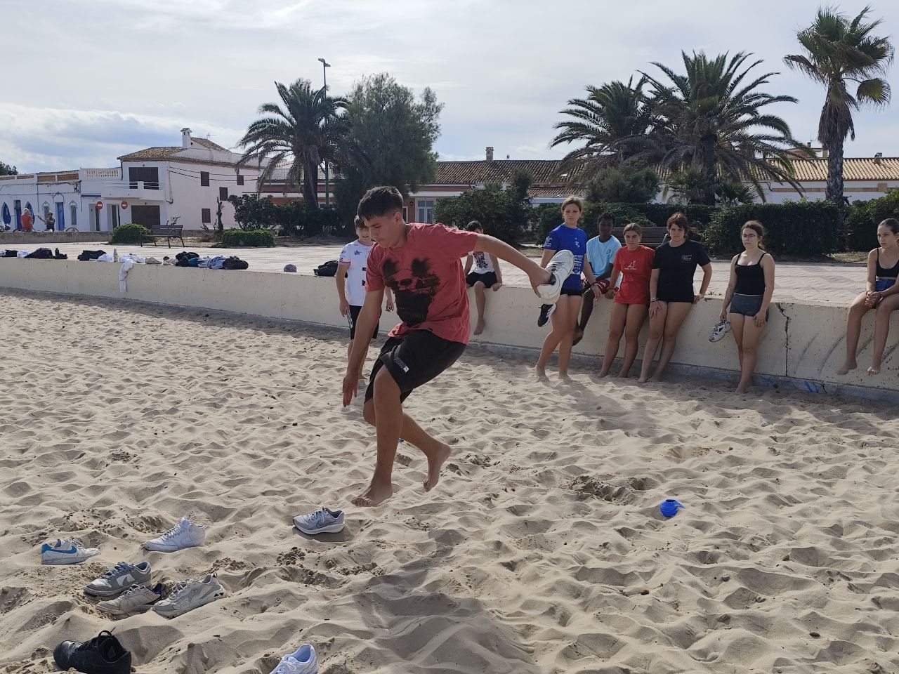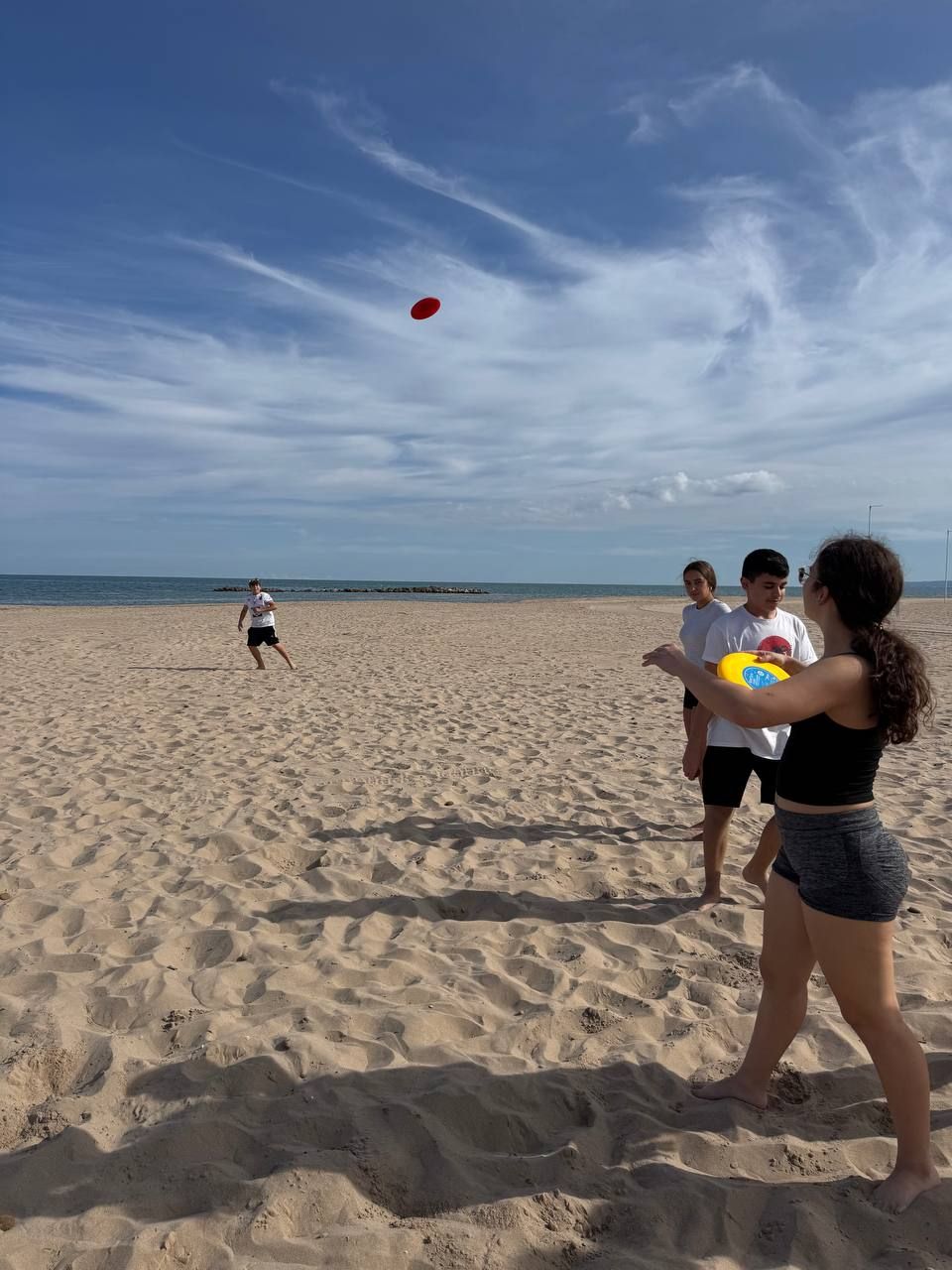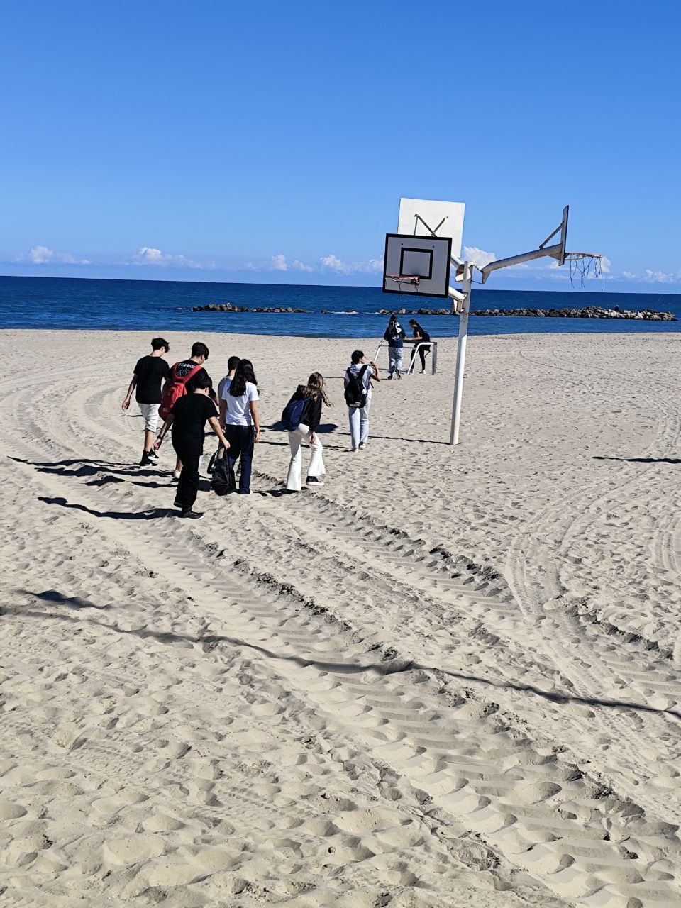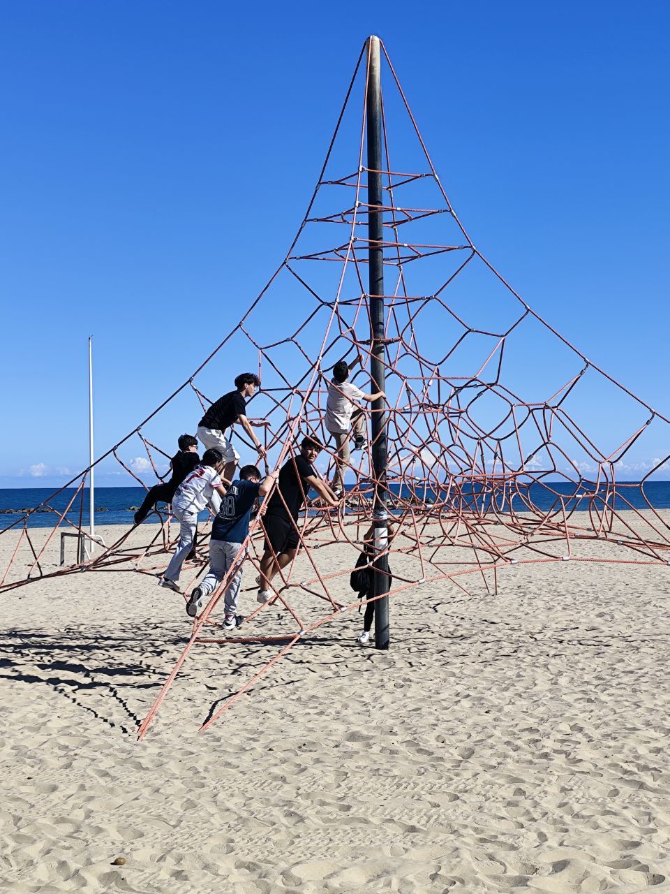 Se dividieron en dos grupos: mientras uno practicaba el tiro con arco, el otro disfrutaba de juegos y deportes en la playa, aprovechando un momento de ejercicio y diversión al aire libre.