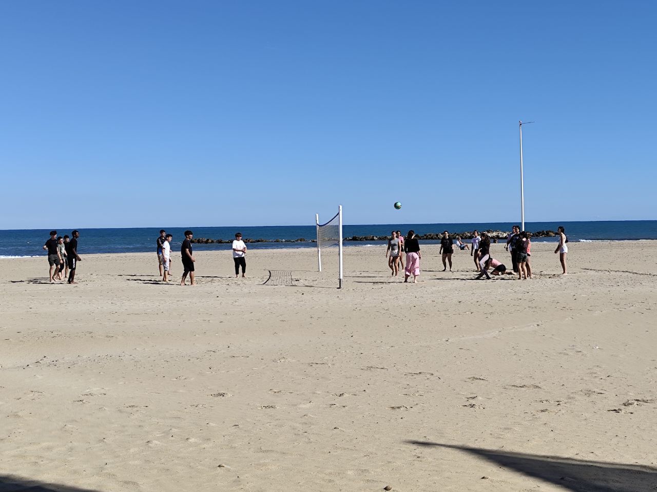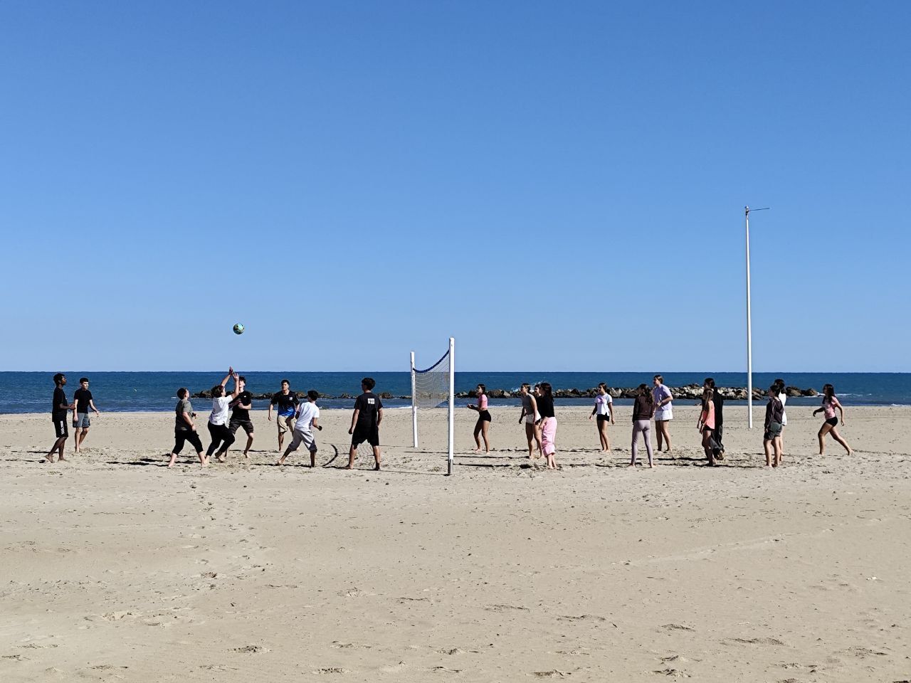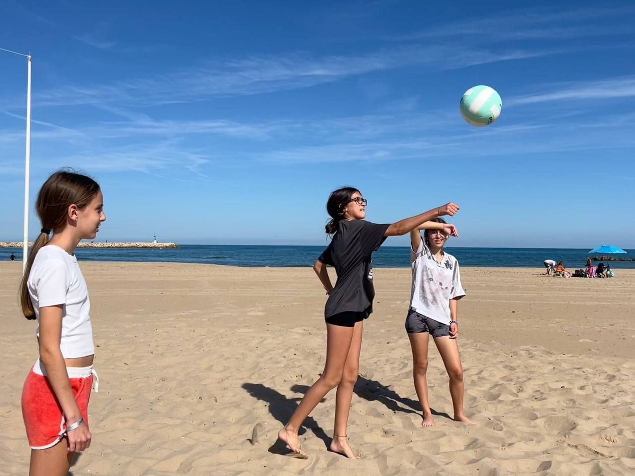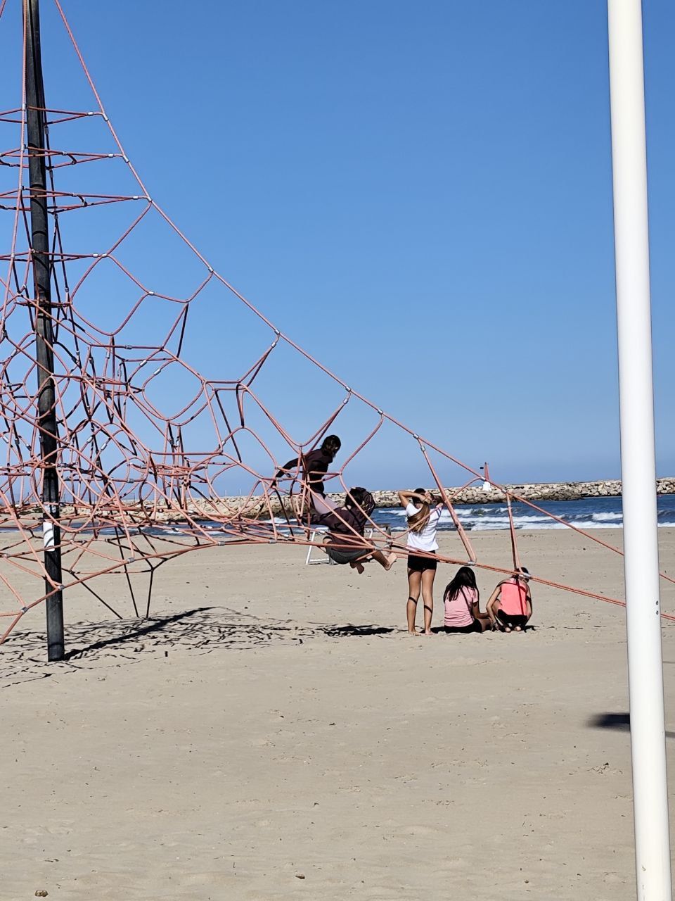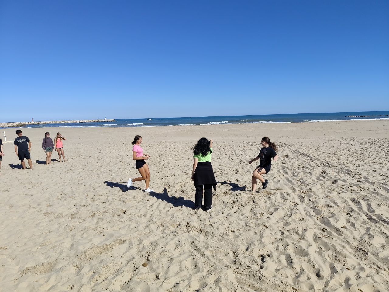 Se dividieron en dos grupos: mientras uno practicaba el tiro con arco, el otro disfrutaba de juegos y deportes en la playa, aprovechando un momento de ejercicio y diversión al aire libre.