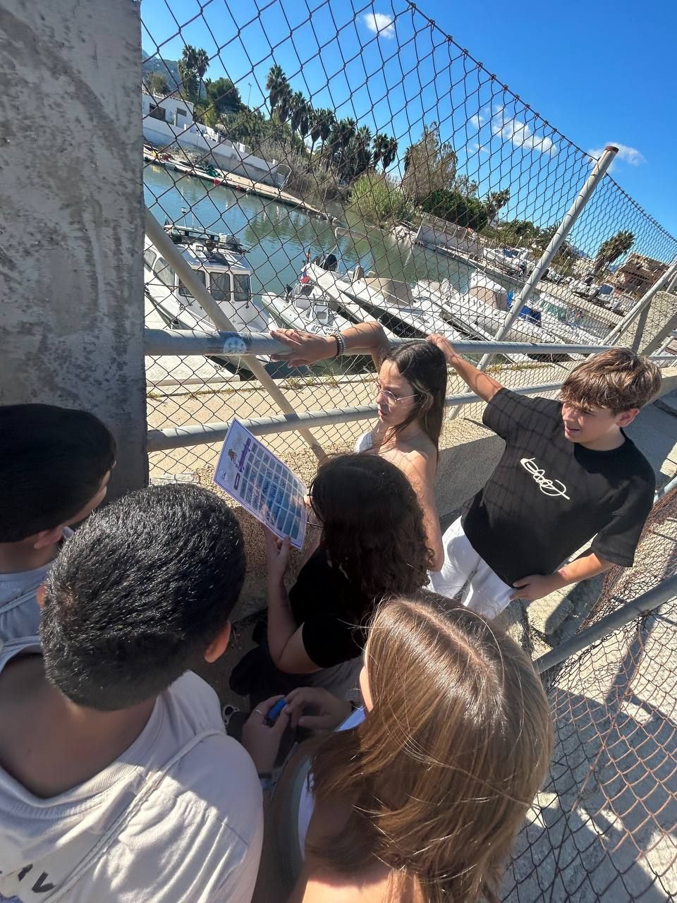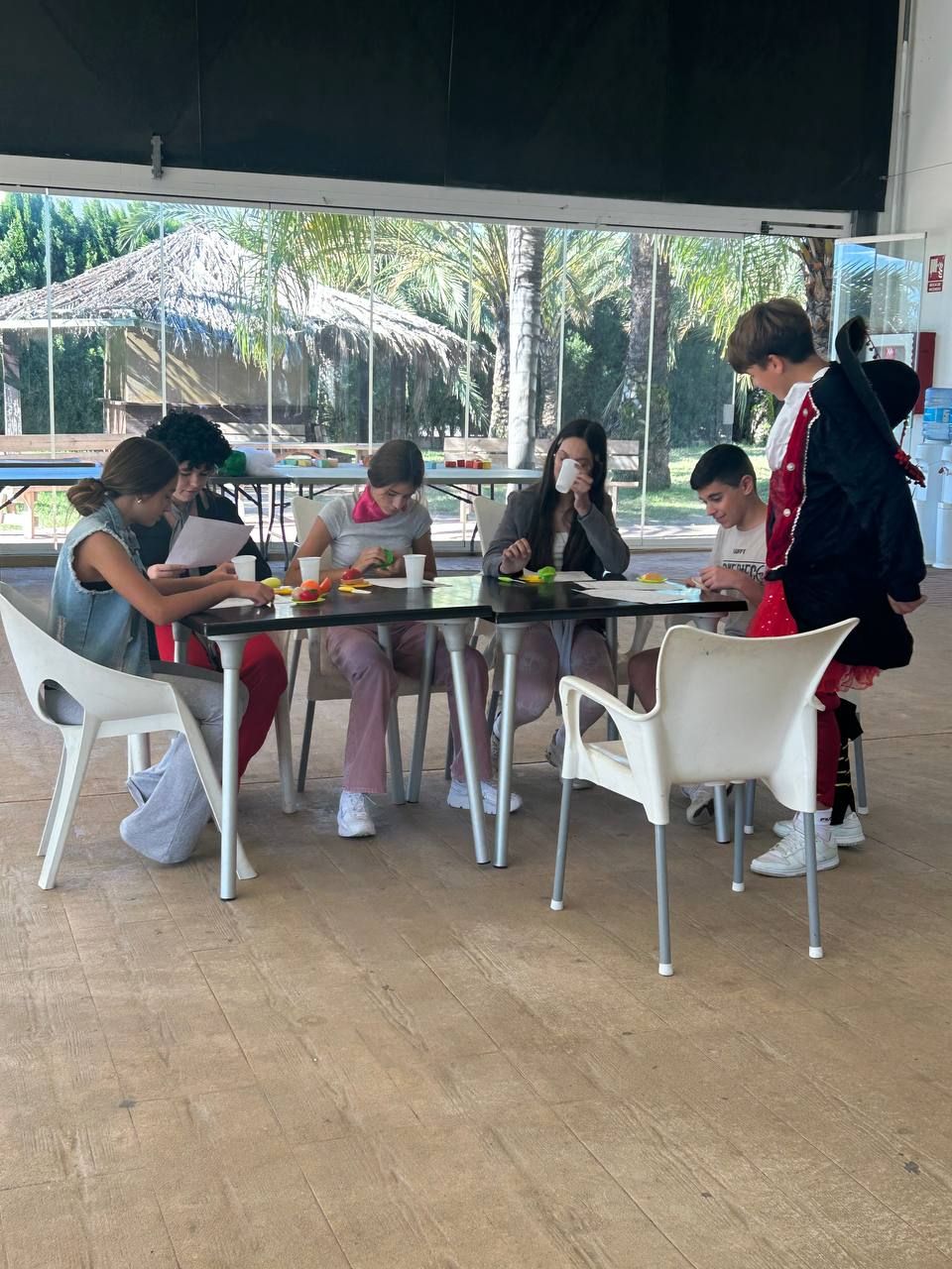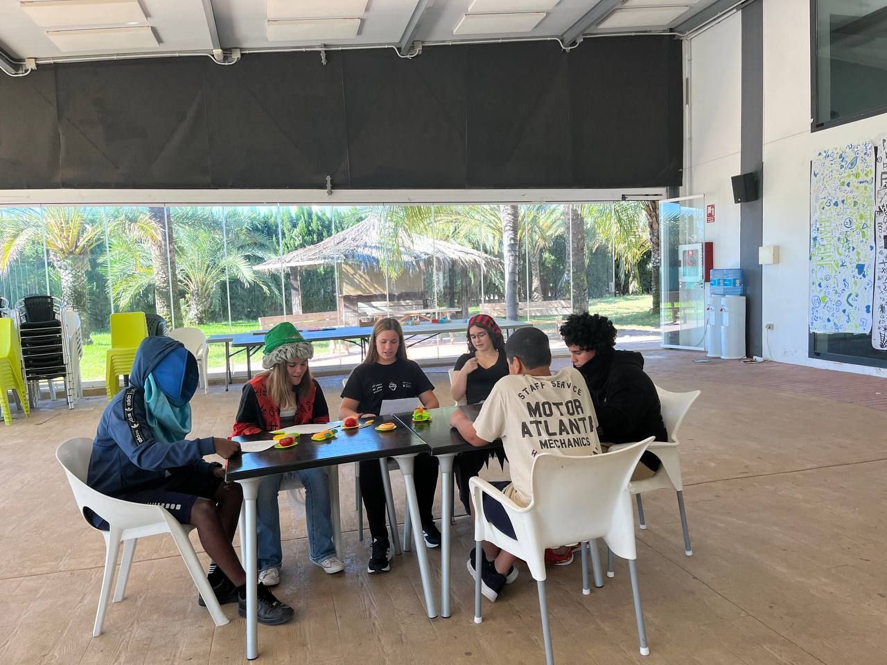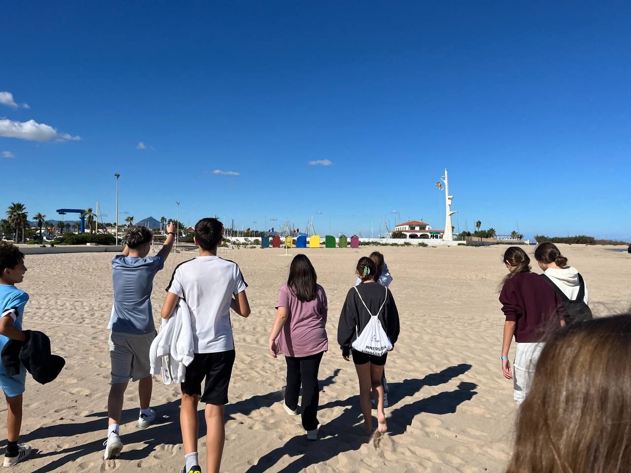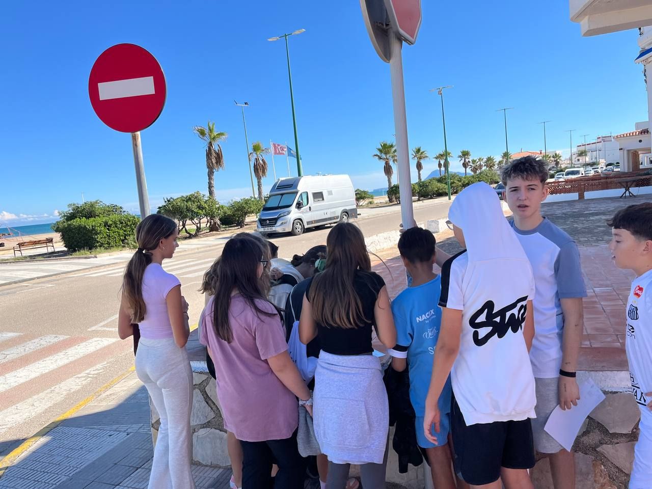 Después del "snack", los alumnos salieron nuevamente a los alrededores del hotel, acompañados por los profesores del programa de inmersión, esta vez, para realizar la actividad "Foodie Hunters". Cada grupo debe encontrar los ingredientes escondidos alrededor del paseo marítimo de Oliva para posteriormente, describir los platos que podrían crear con ellos.