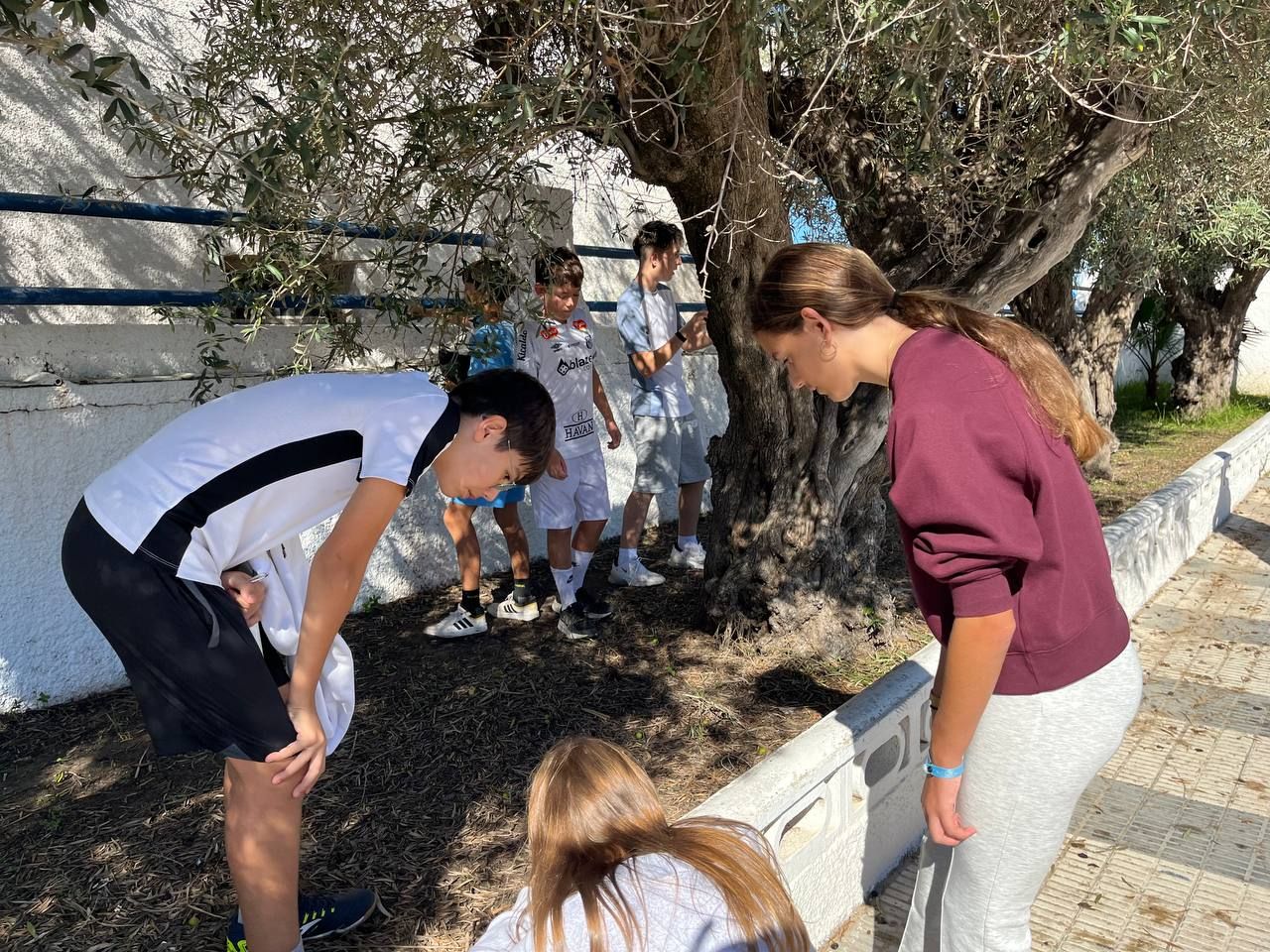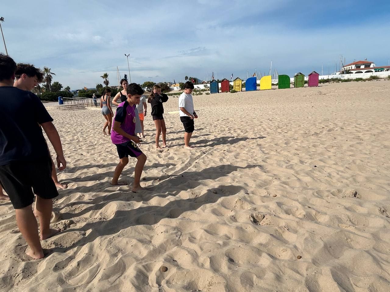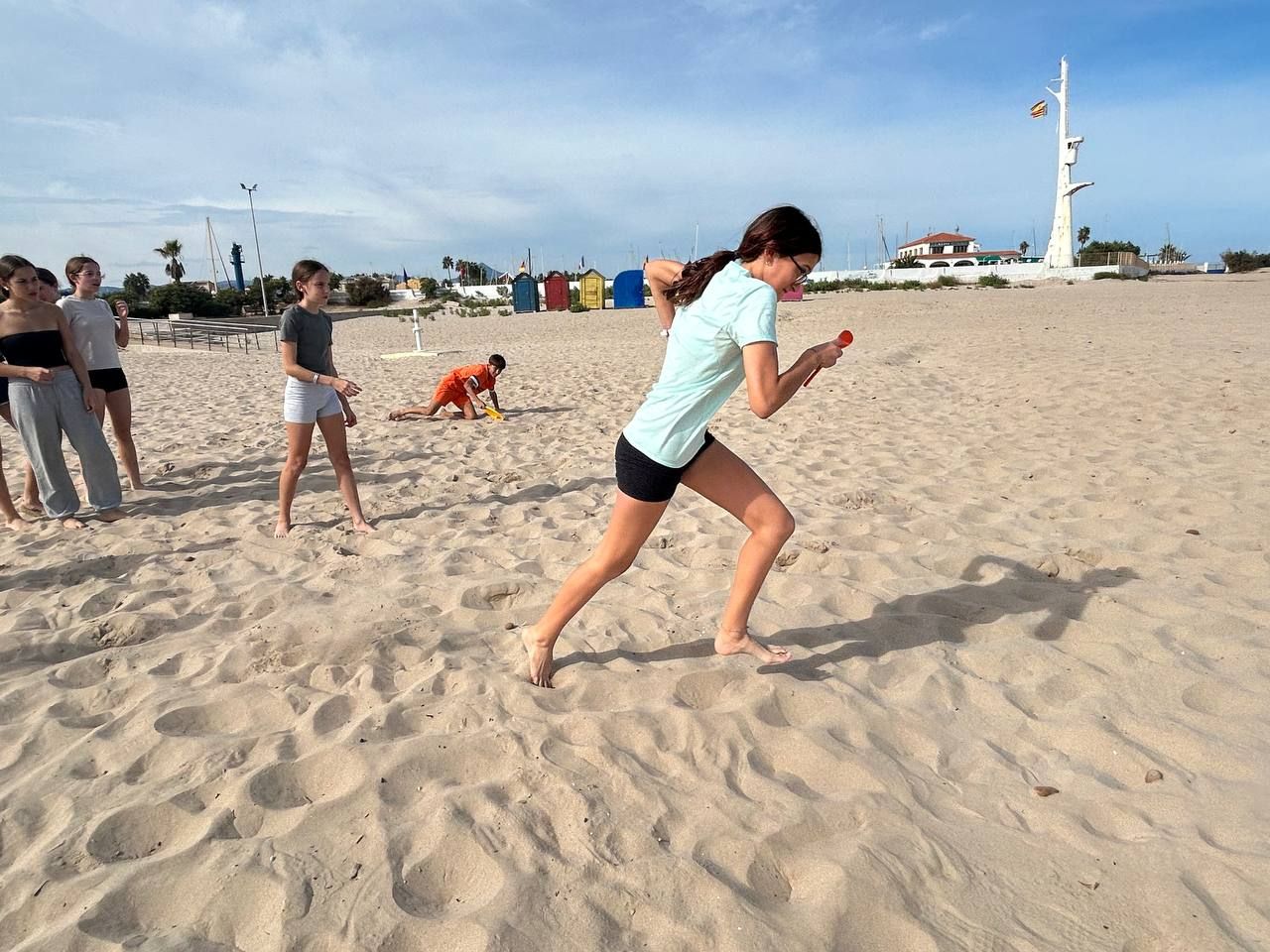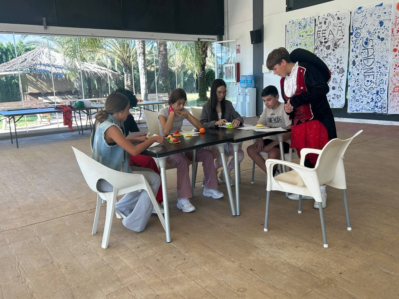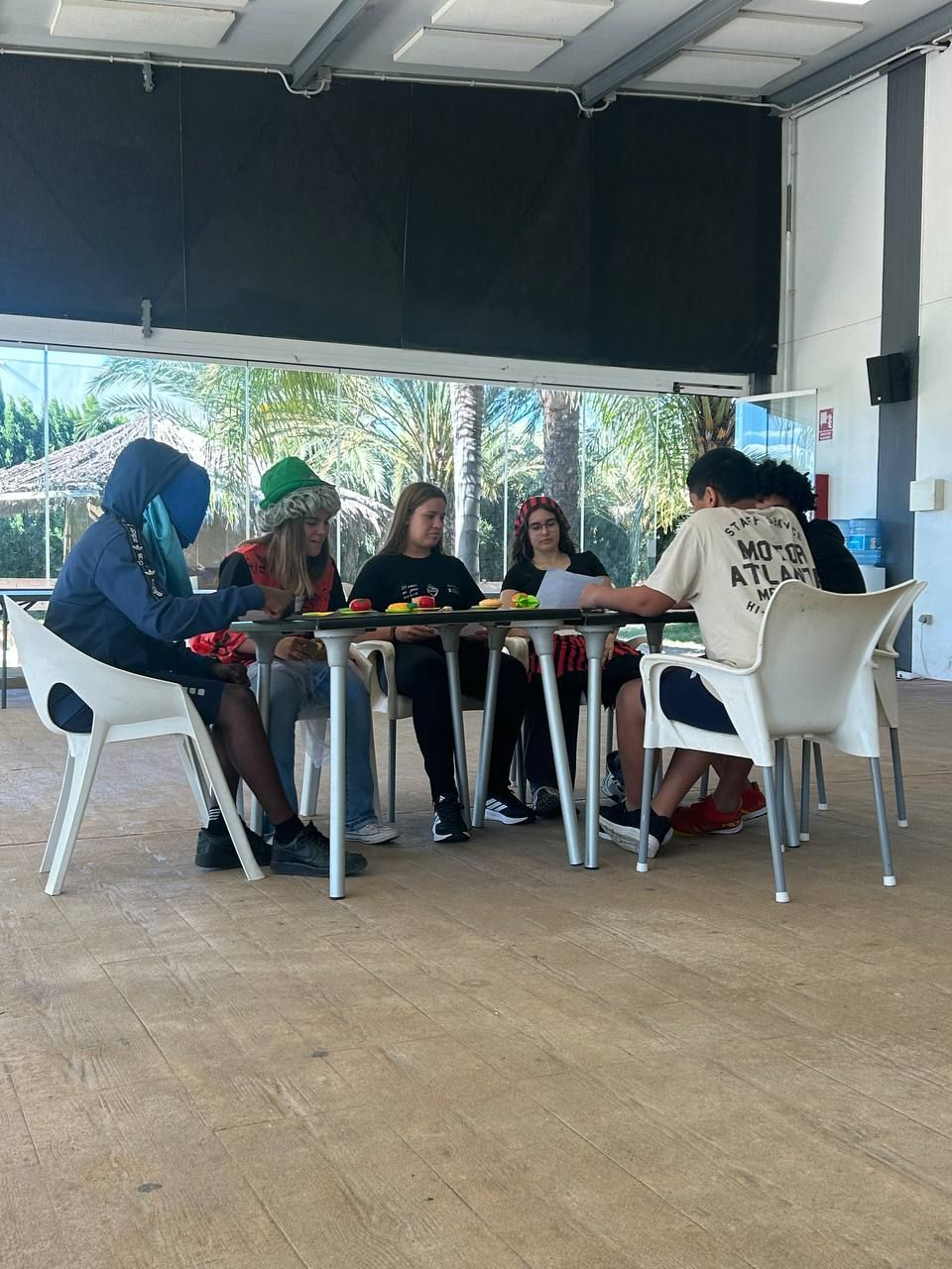Después del "snack", los alumnos salieron nuevamente a los alrededores del hotel, acompañados por los profesores del programa de inmersión, esta vez, para realizar la actividad "Foodie Hunters". Cada grupo debe encontrar los ingredientes escondidos alrededor del paseo marítimo de Oliva para posteriormente, describir los platos que podrían crear con ellos.