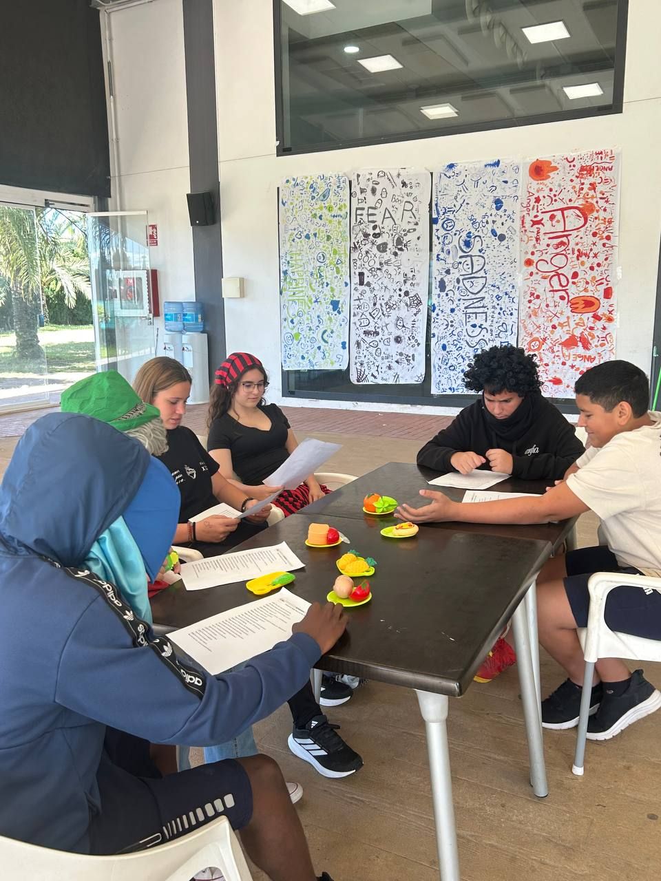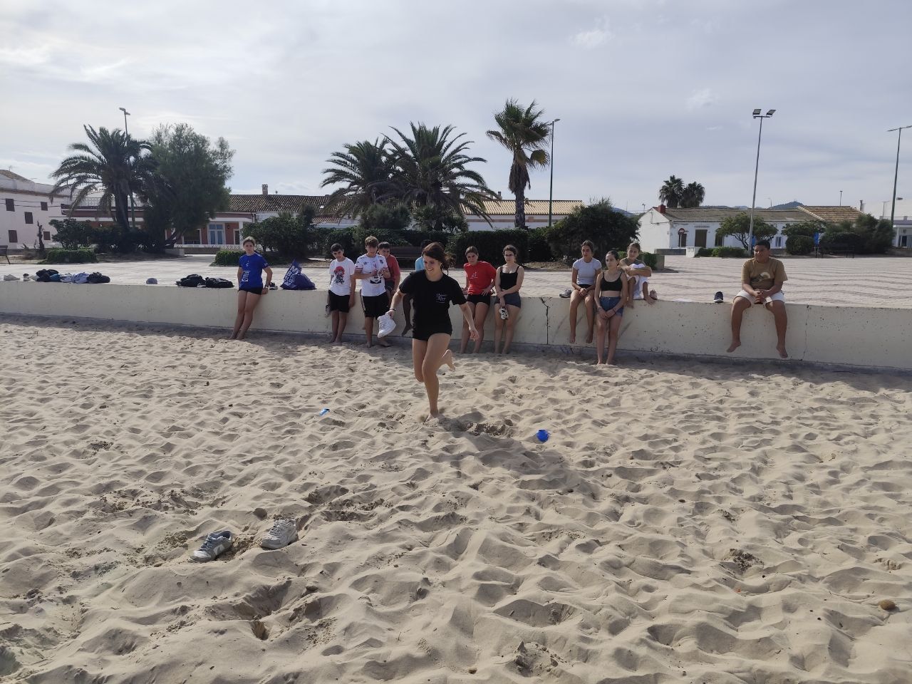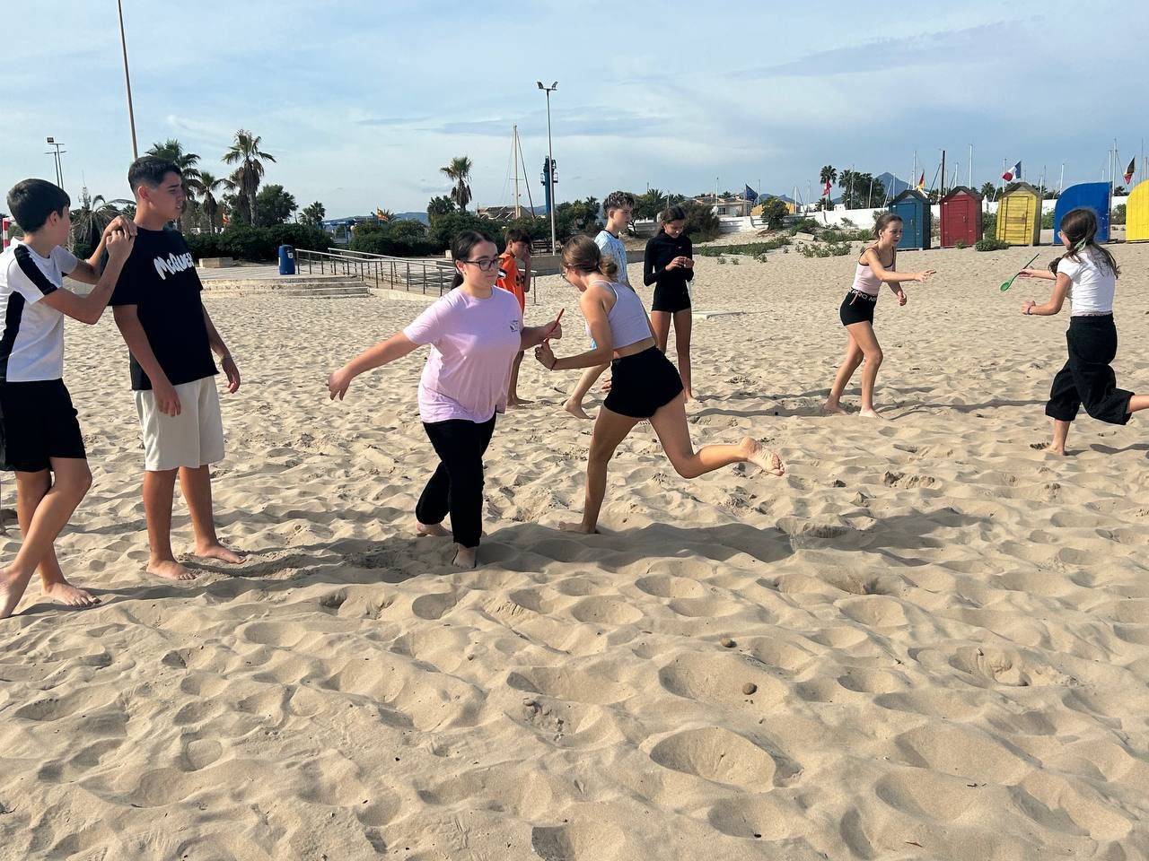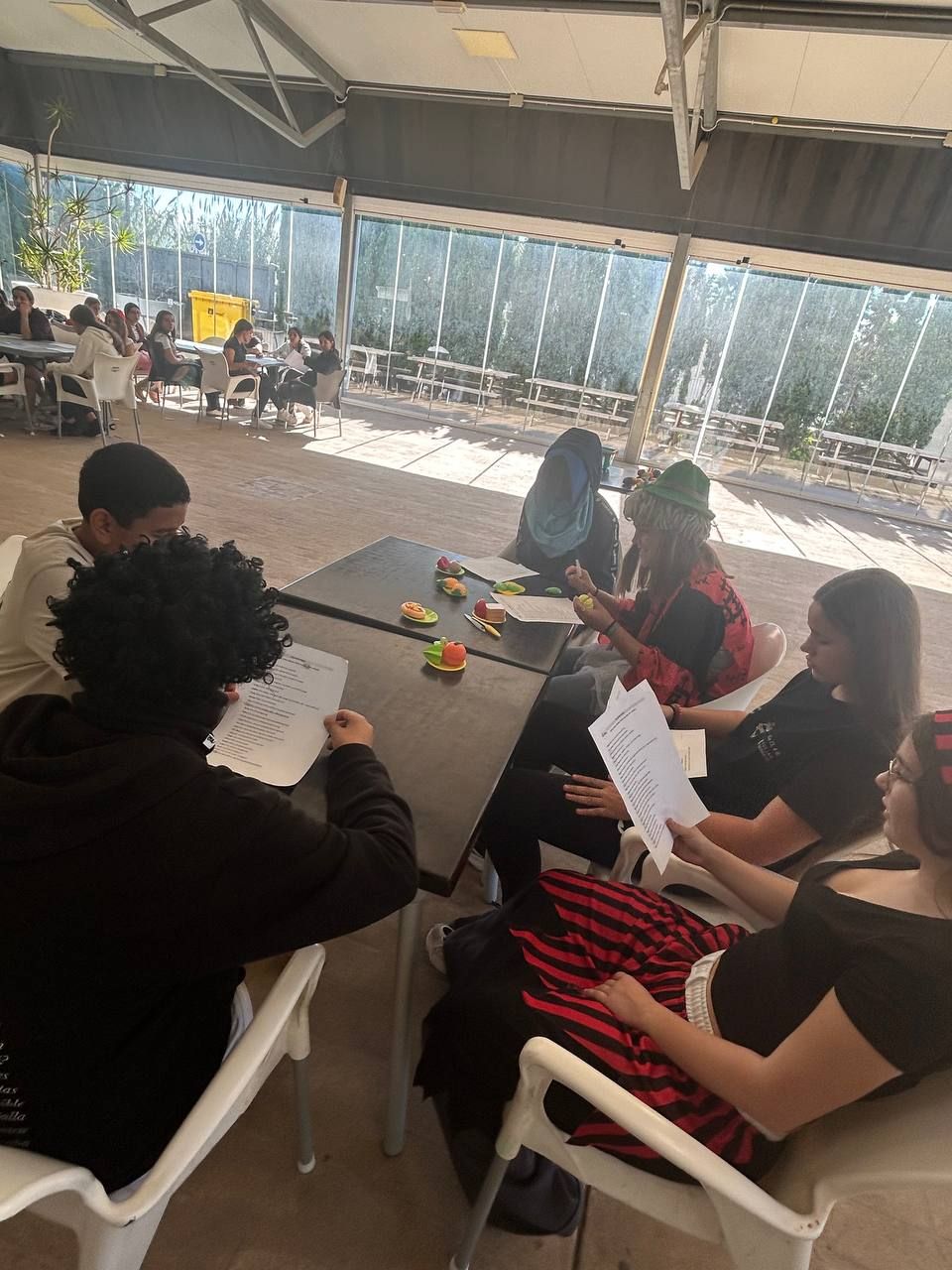Después del "snack", los alumnos salieron nuevamente a los alrededores del hotel, acompañados por los profesores del programa de inmersión, esta vez, para realizar la actividad "Foodie Hunters". Cada grupo debe encontrar los ingredientes escondidos alrededor del paseo marítimo de Oliva para posteriormente, describir los platos que podrían crear con ellos.