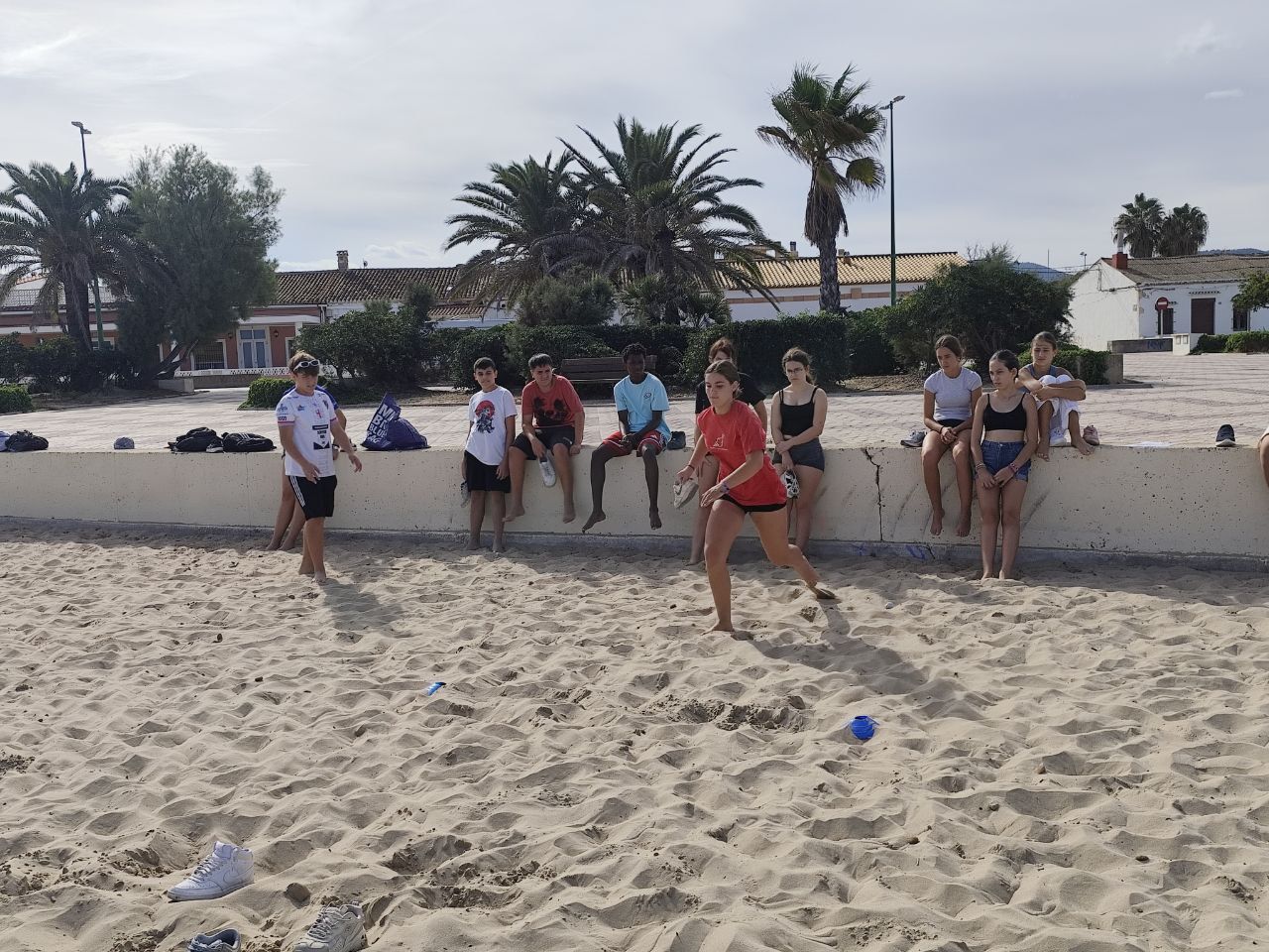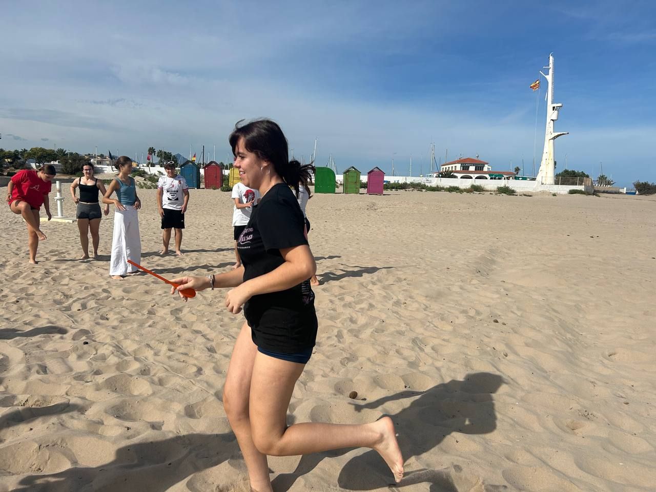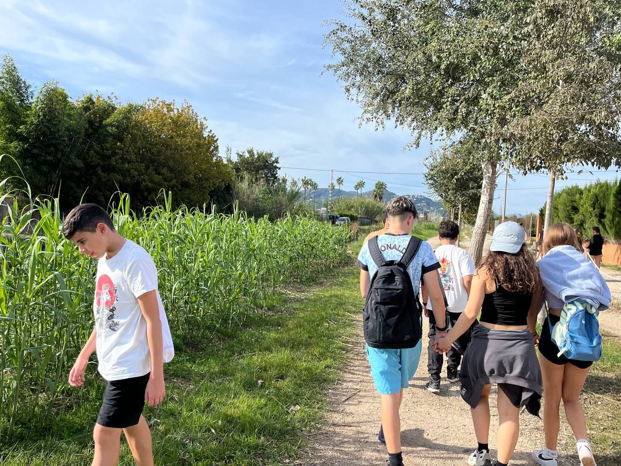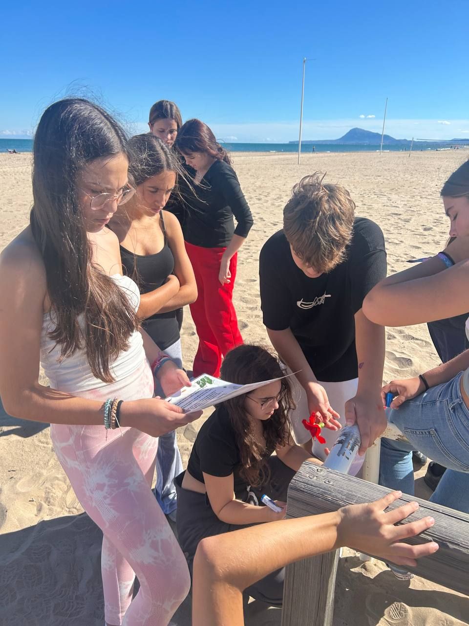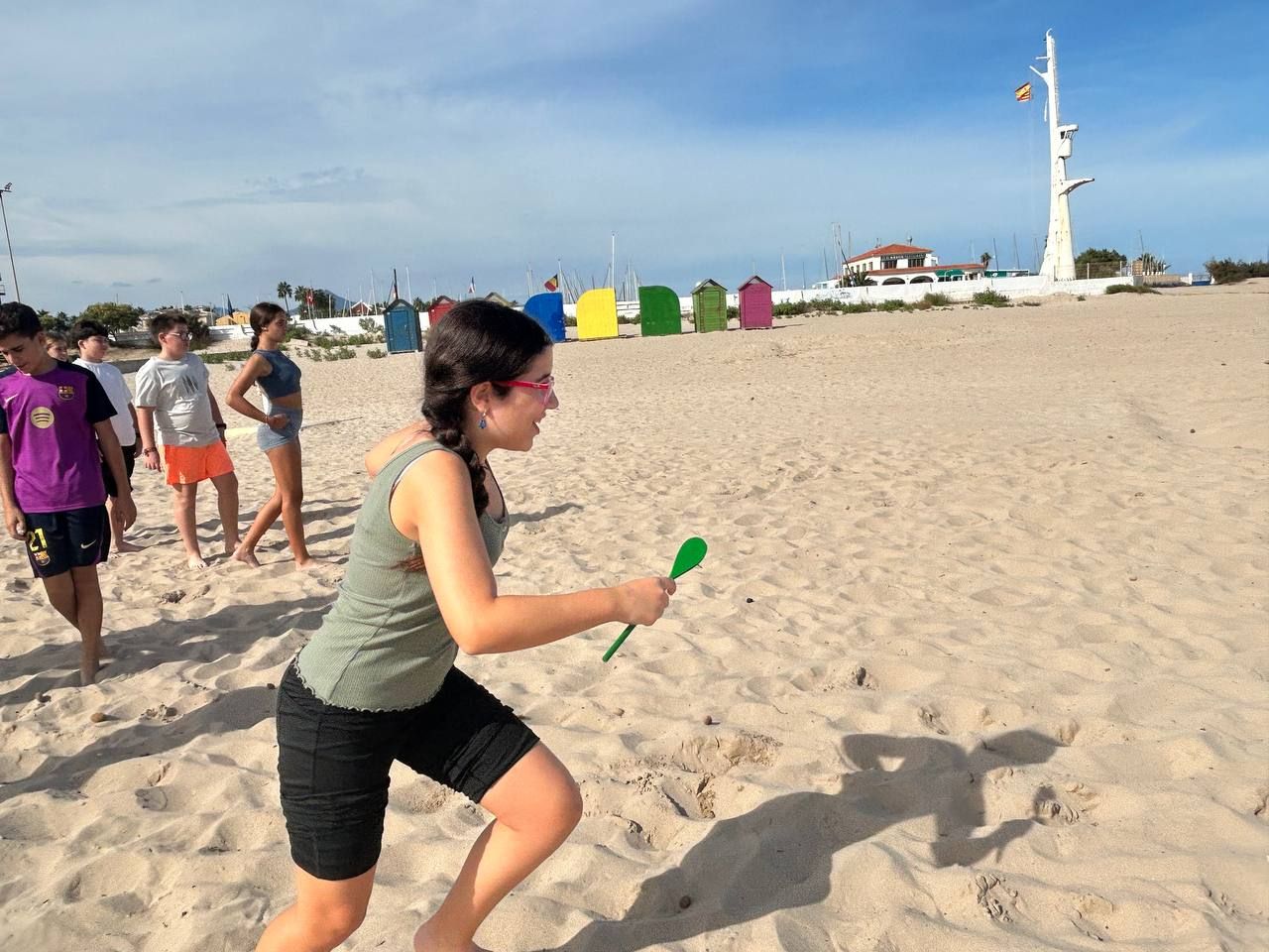 Después del "snack", los alumnos salieron nuevamente a los alrededores del hotel, acompañados por los profesores del programa de inmersión, esta vez, para realizar la actividad "Foodie Hunters". Cada grupo debe encontrar los ingredientes escondidos alrededor del paseo marítimo de Oliva para posteriormente, describir los platos que podrían crear con ellos.
