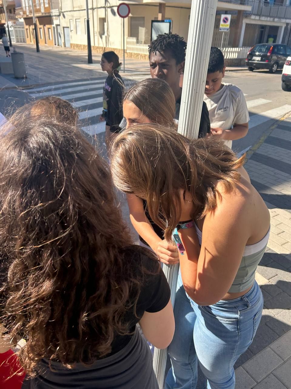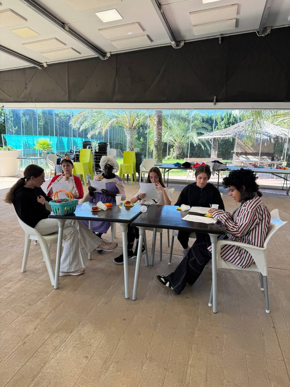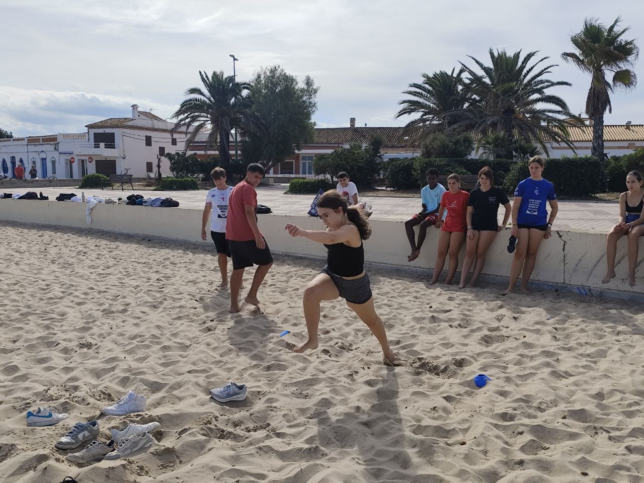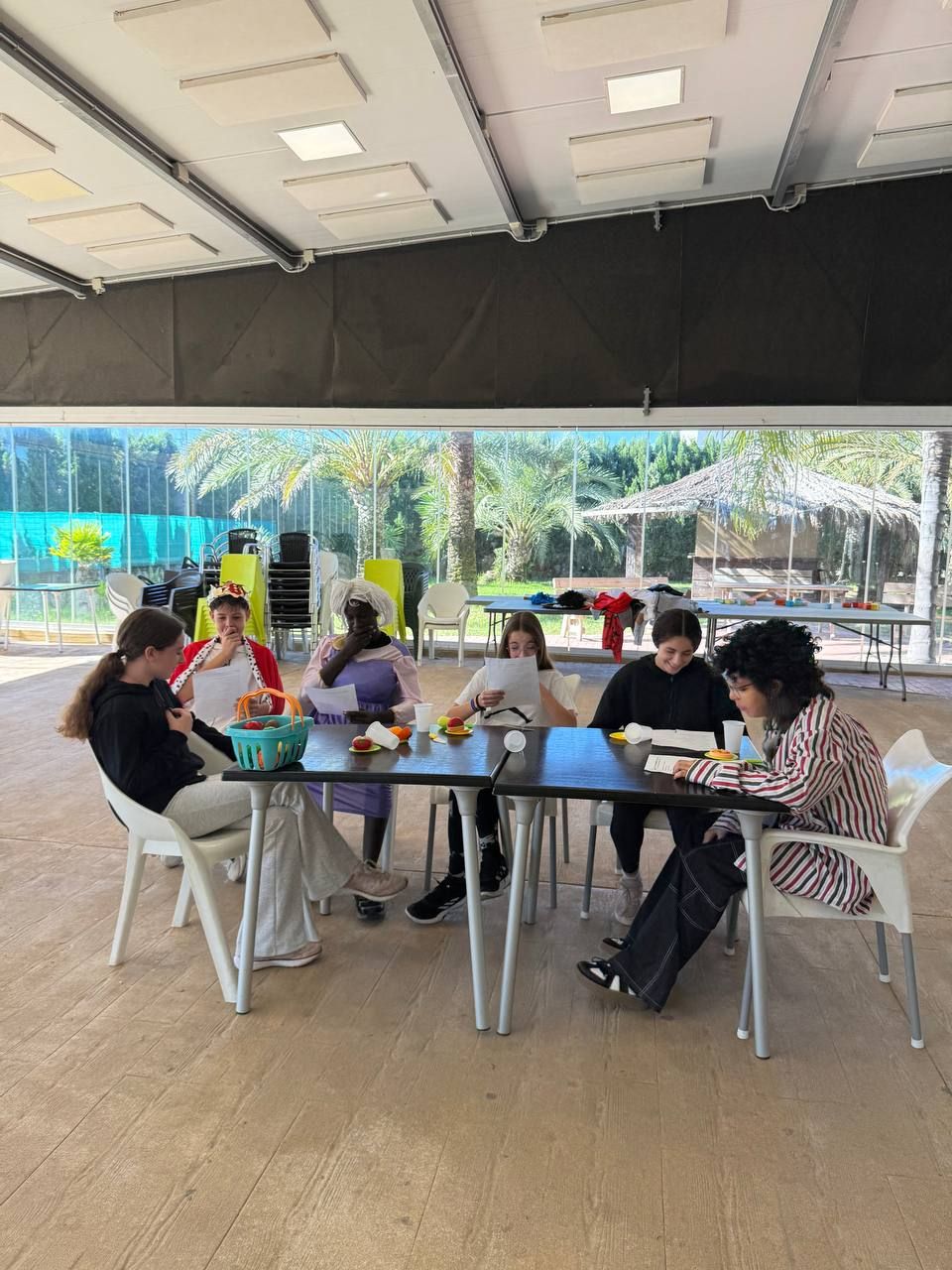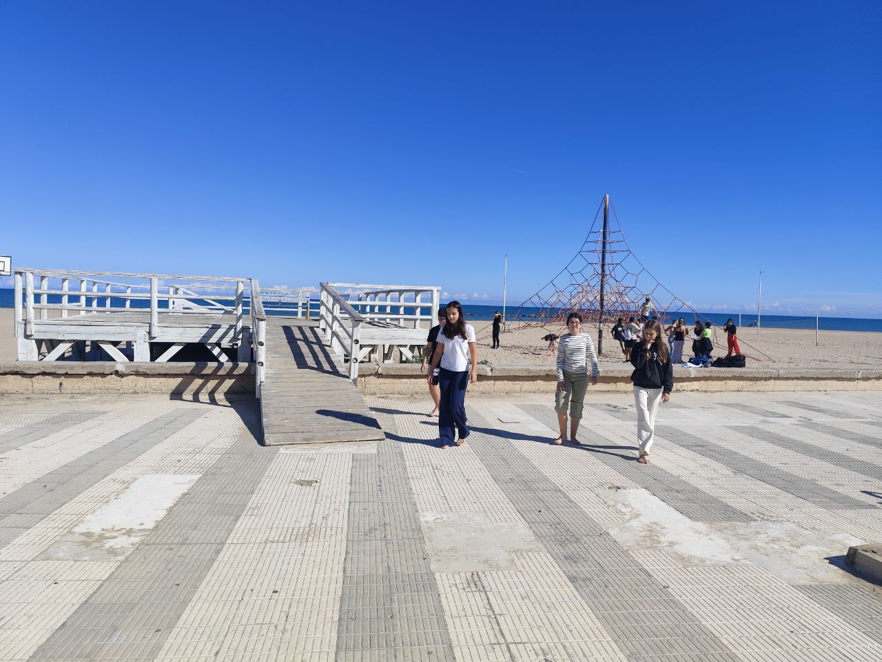 Después del "snack", los alumnos salieron nuevamente a los alrededores del hotel, acompañados por los profesores del programa de inmersión, esta vez, para realizar la actividad "Foodie Hunters". Cada grupo debe encontrar los ingredientes escondidos alrededor del paseo marítimo de Oliva para posteriormente, describir los platos que podrían crear con ellos.
