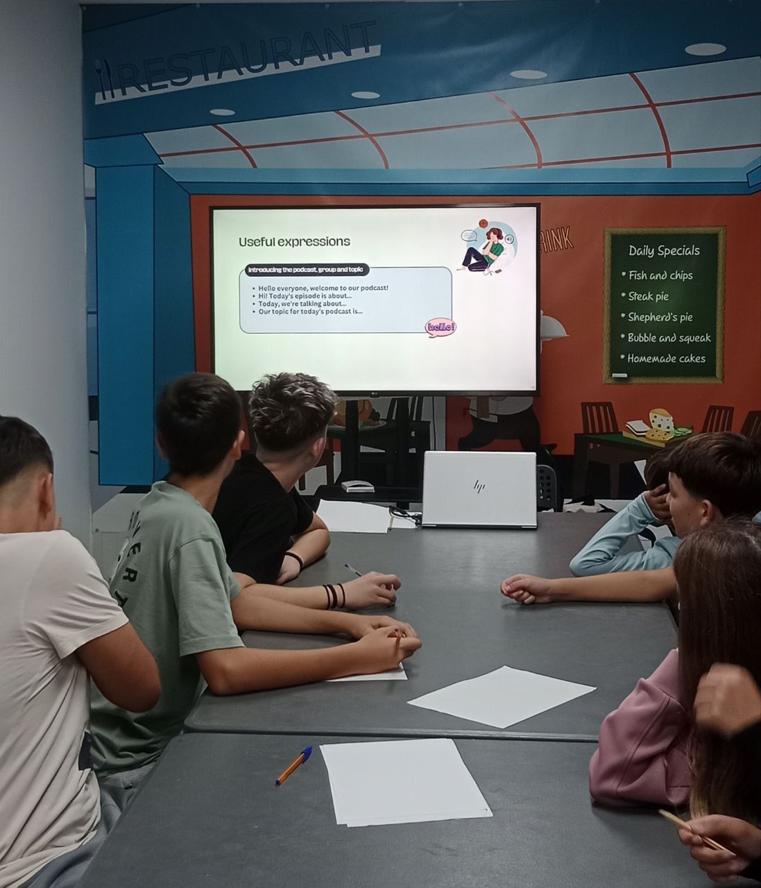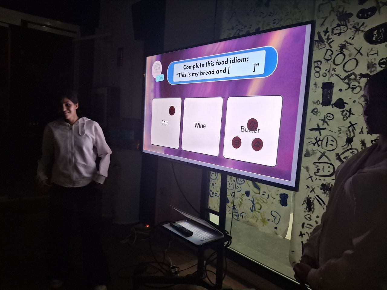 Tras la cena, los estudiantes participaron en la actividad "Quiz masters: The Challenge Show". En este concurso, los alumnos se dividen en dos equipos y compiten en varias rondas de preguntas y desafíos divertidos sobre gastronomía inglesa.