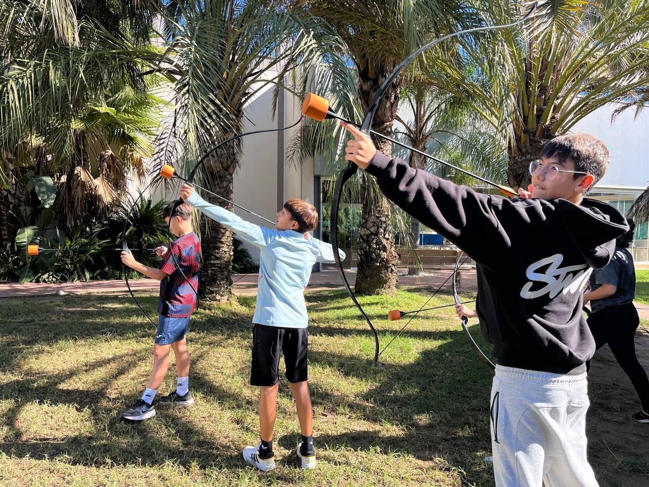 Posteriormente, los estudiantes pusieron a prueba su destreza en la actividad de "archery", utilizando flechas con punta de goma espuma para asegurar su seguridad.