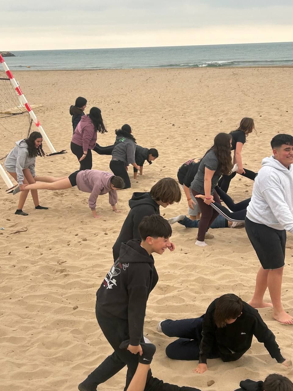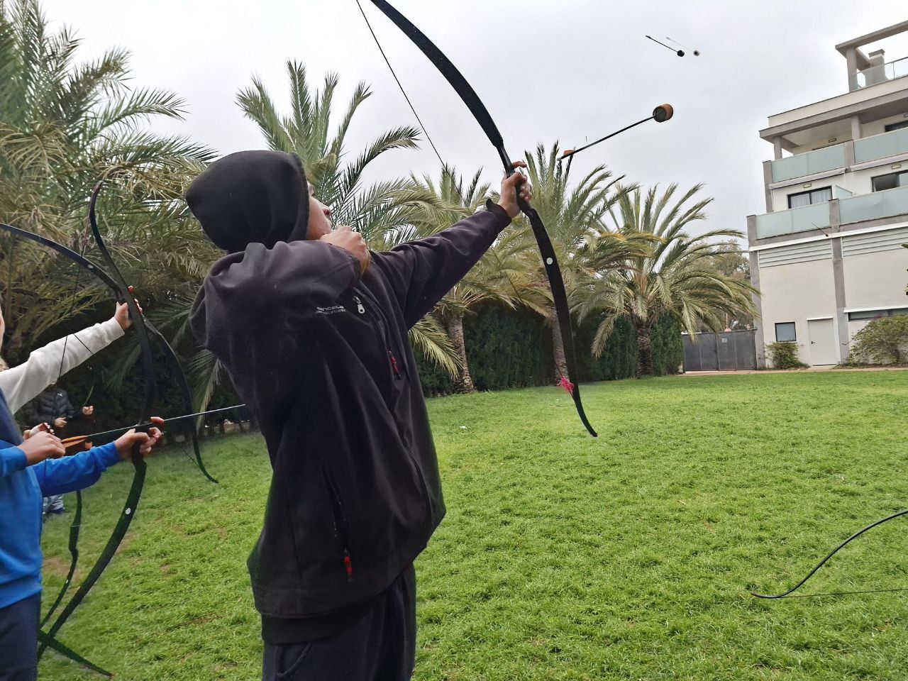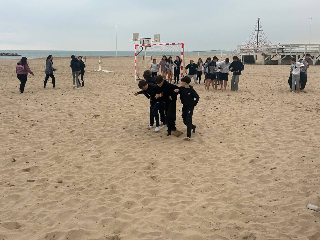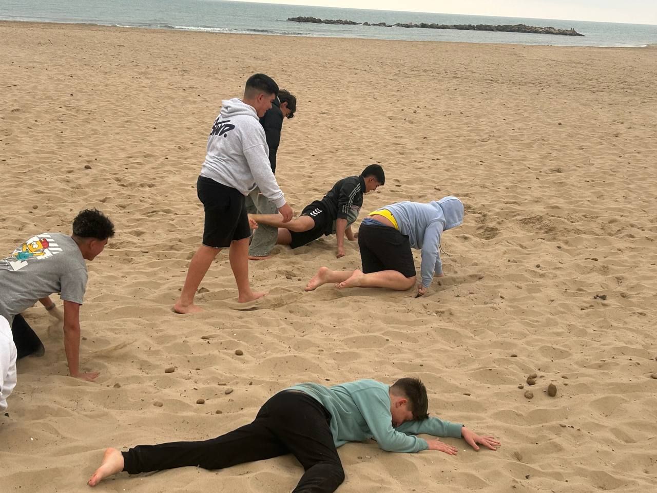 Se dividieron en dos grupos: mientras uno practicaba el tiro con arco, el otro disfrutaba de juegos y deportes en la playa, aprovechando un momento de ejercicio y diversión al aire libre.