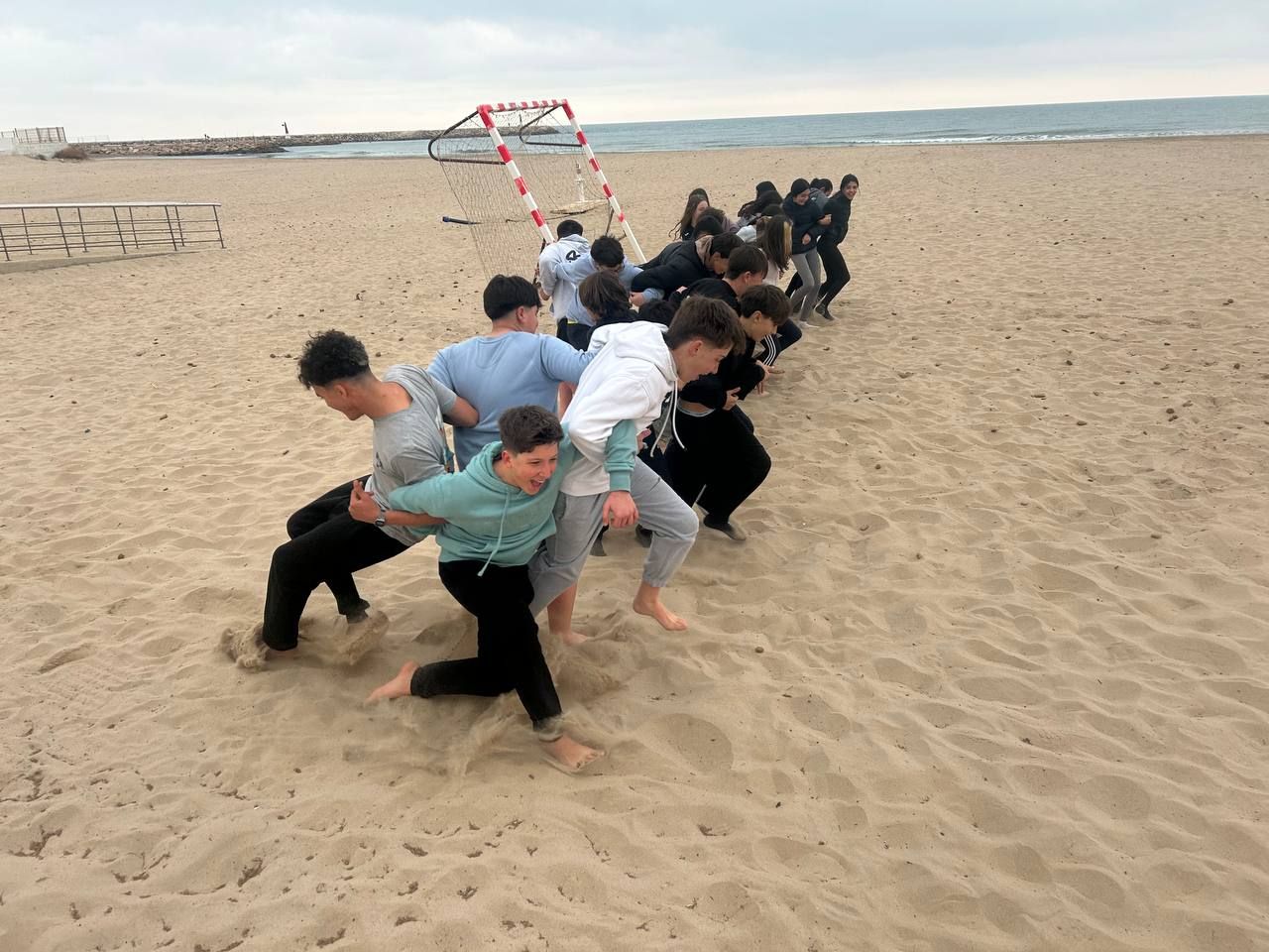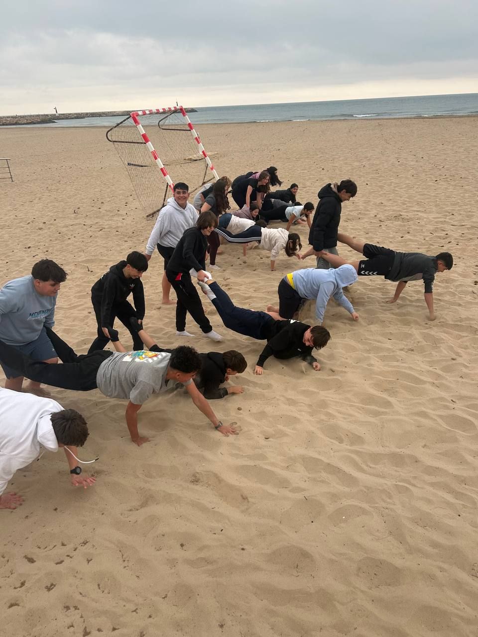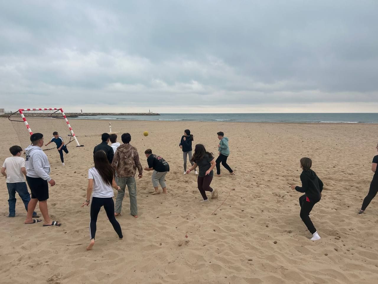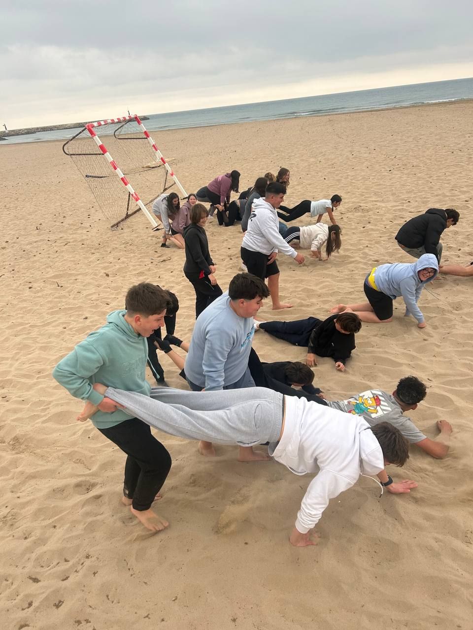 Se dividieron en dos grupos: mientras uno practicaba el tiro con arco, el otro disfrutaba de juegos y deportes en la playa, aprovechando un momento de ejercicio y diversión al aire libre.