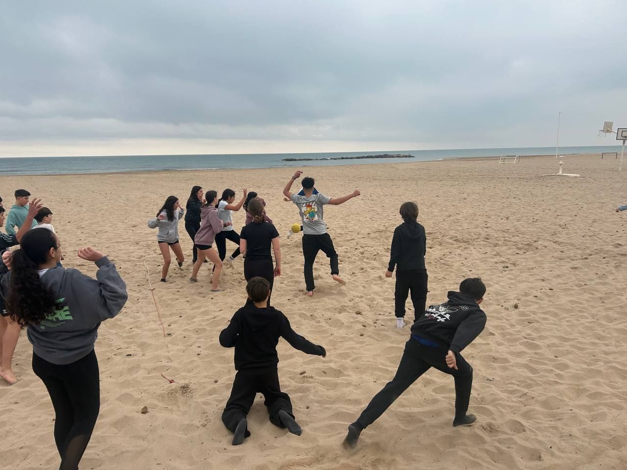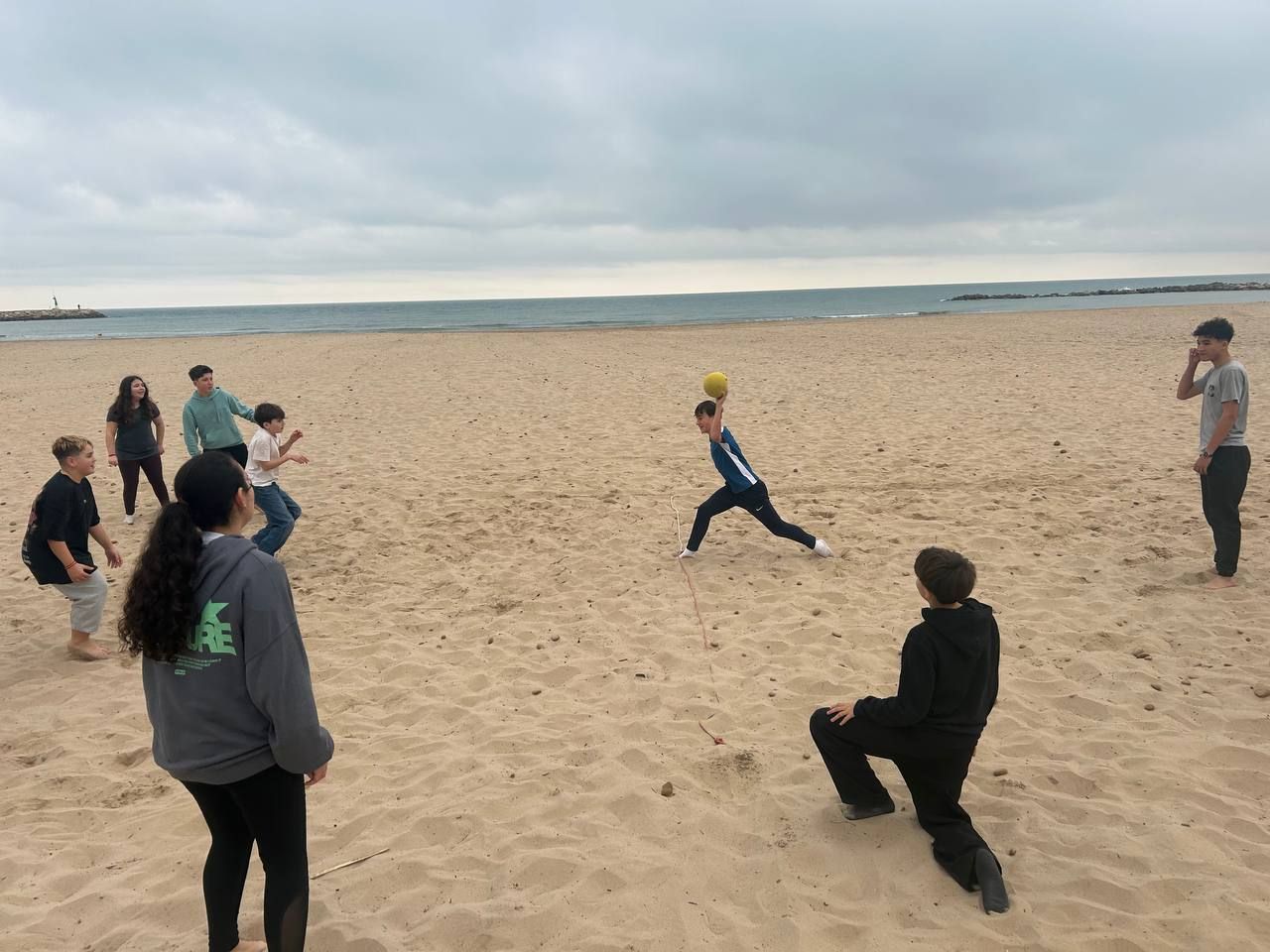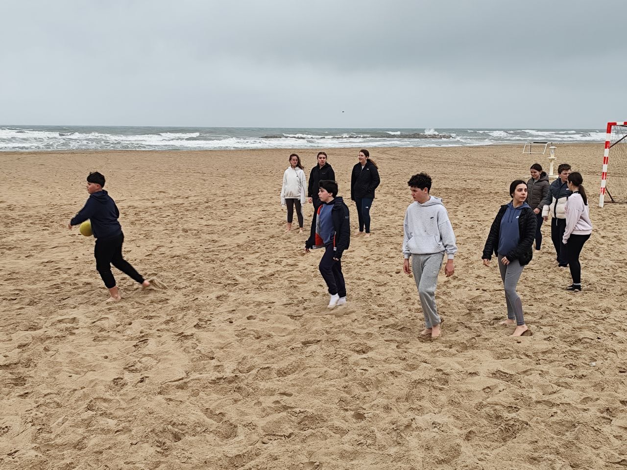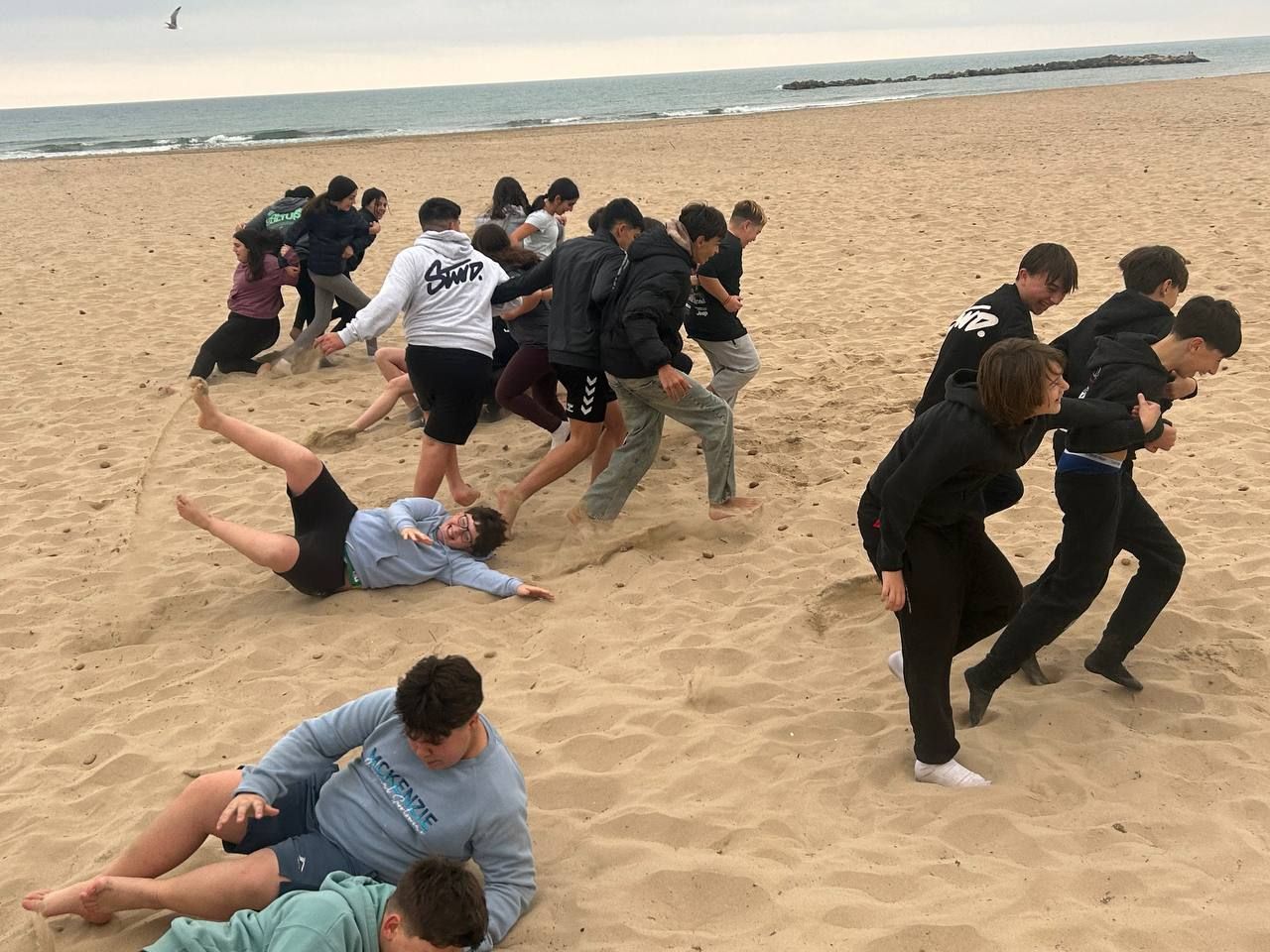 Se dividieron en dos grupos: mientras uno practicaba el tiro con arco, el otro disfrutaba de juegos y deportes en la playa, aprovechando un momento de ejercicio y diversión al aire libre.