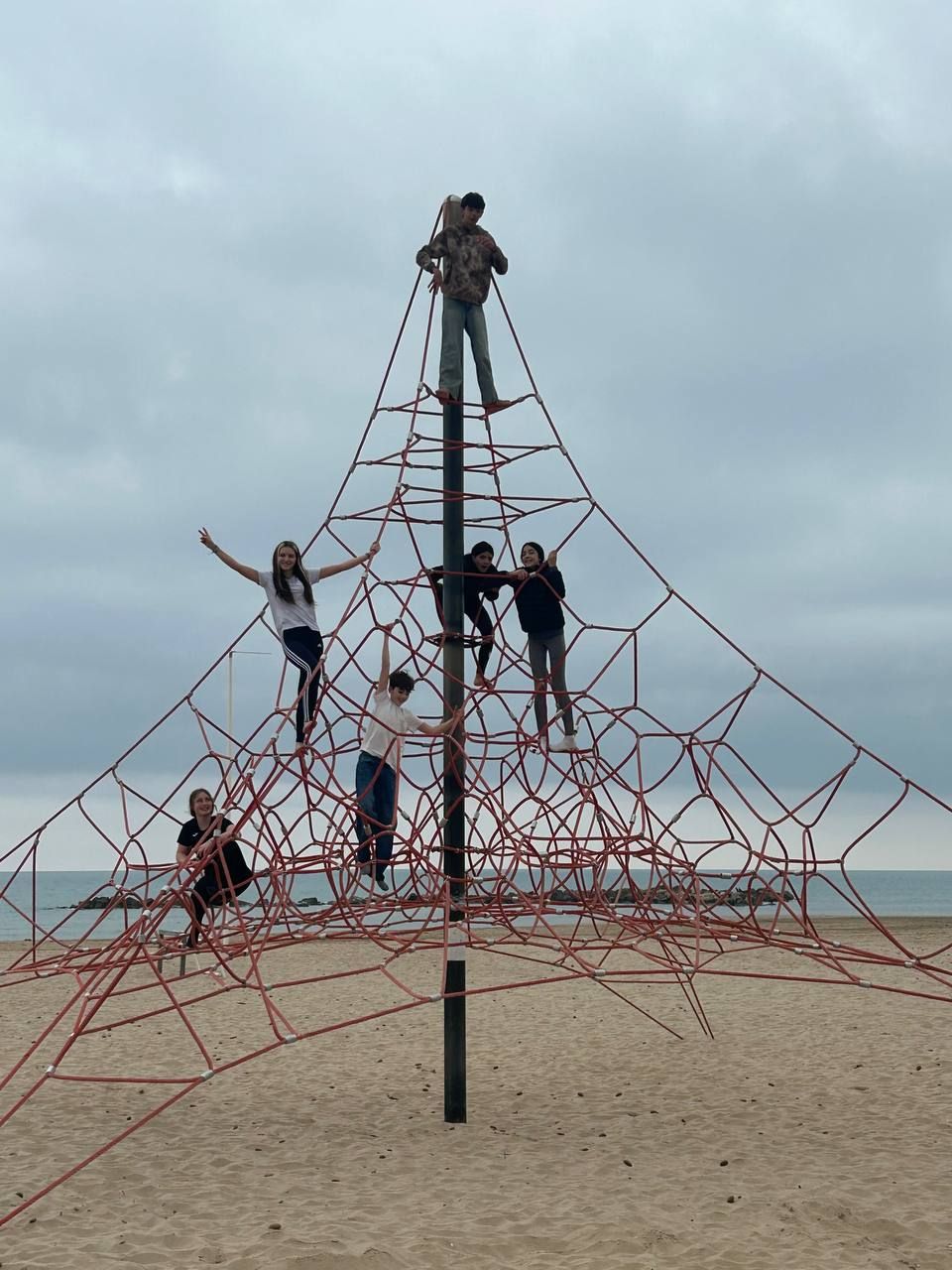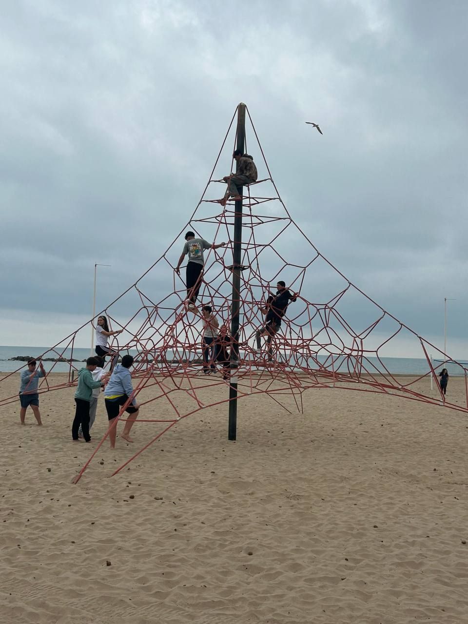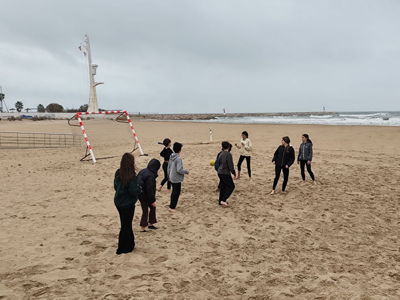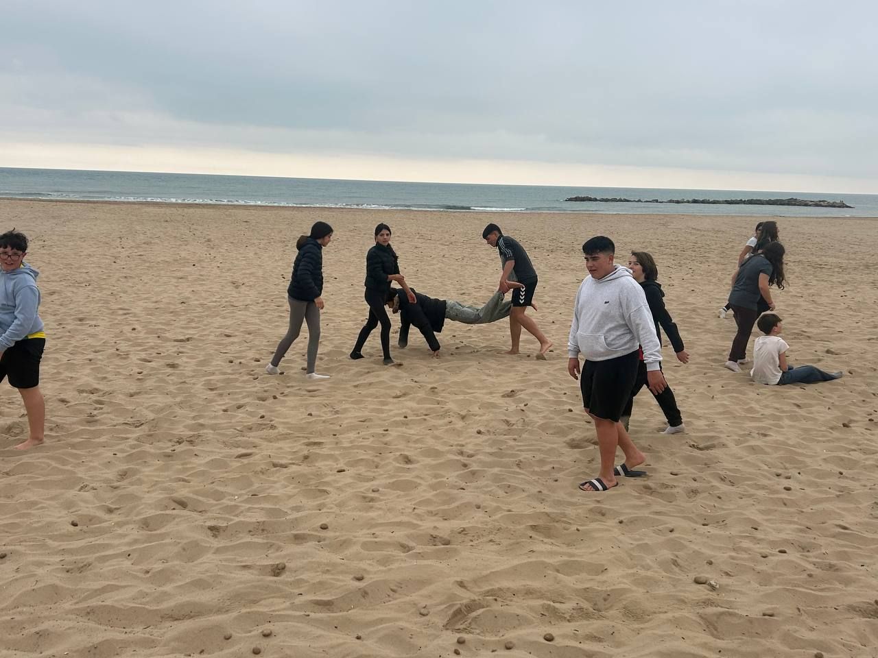 Se dividieron en dos grupos: mientras uno practicaba el tiro con arco, el otro disfrutaba de juegos y deportes en la playa, aprovechando un momento de ejercicio y diversión al aire libre.