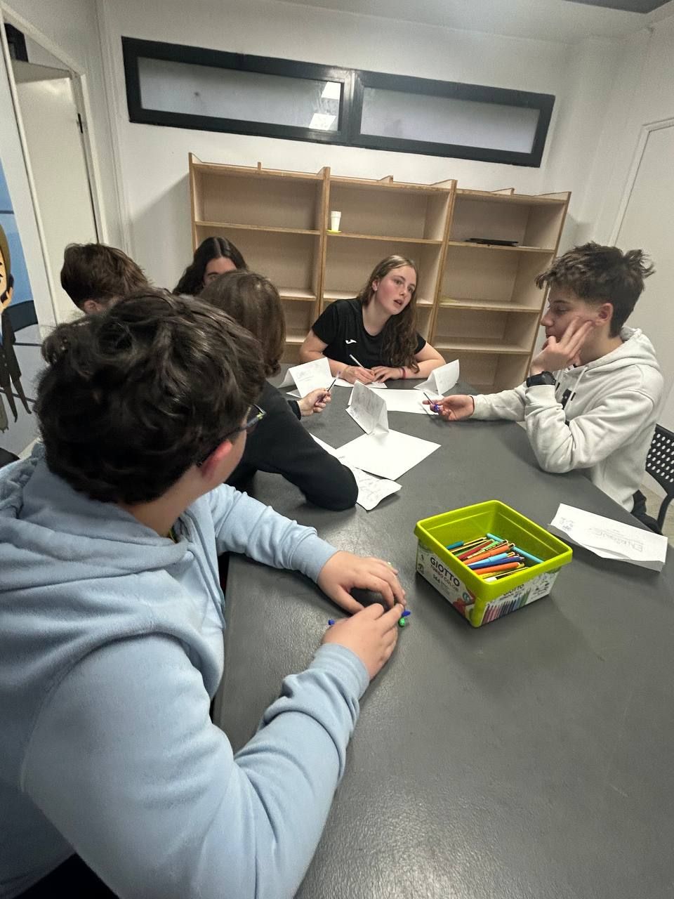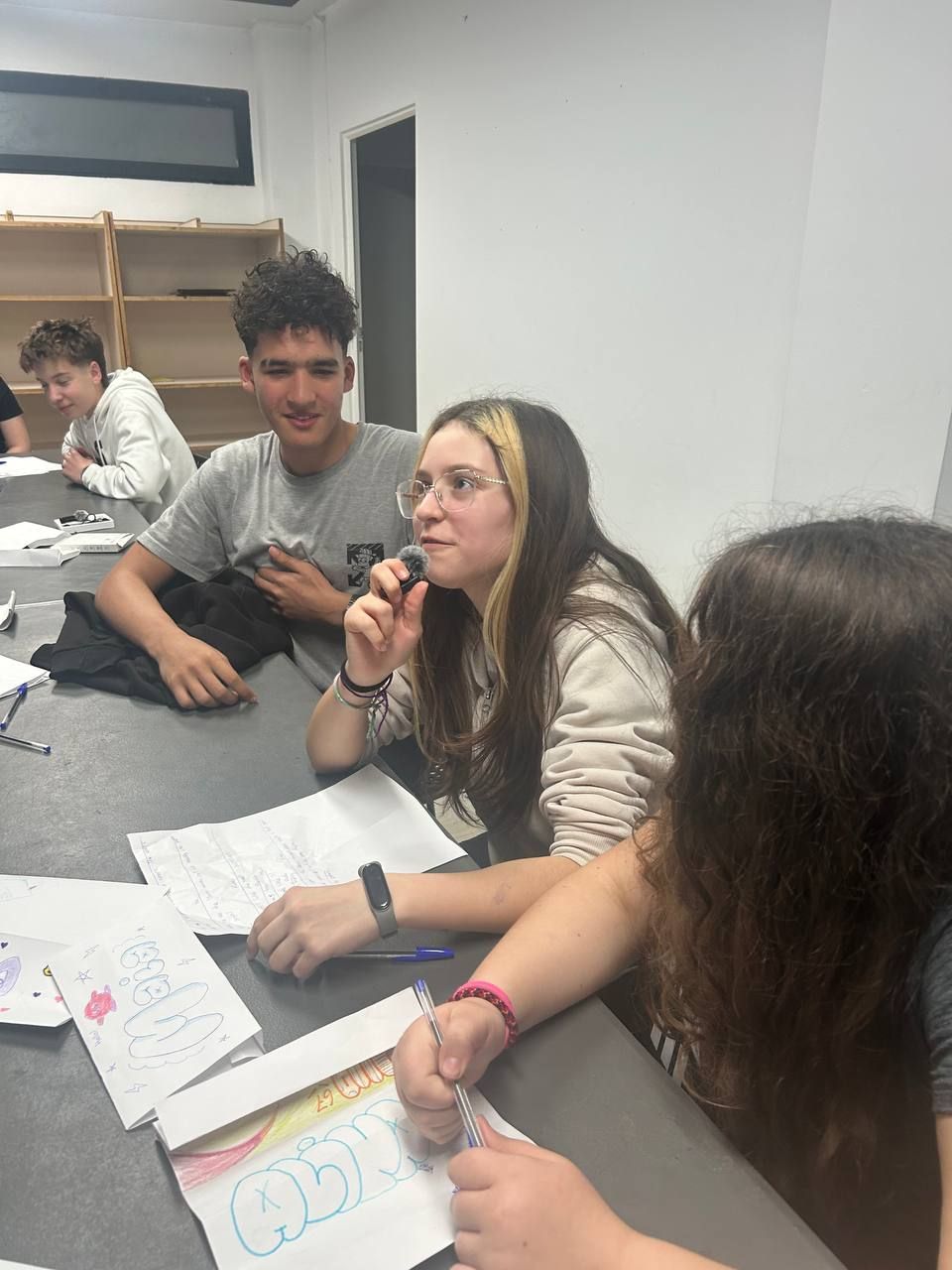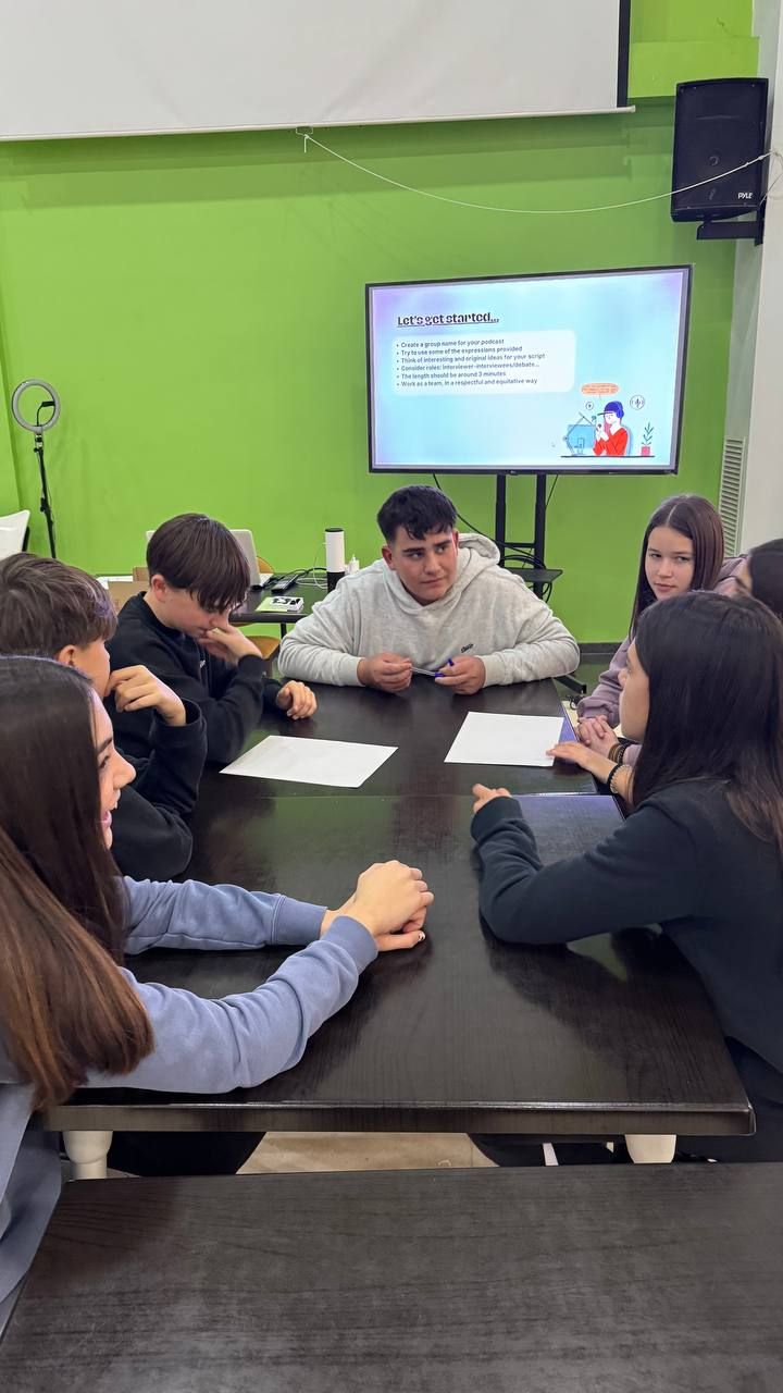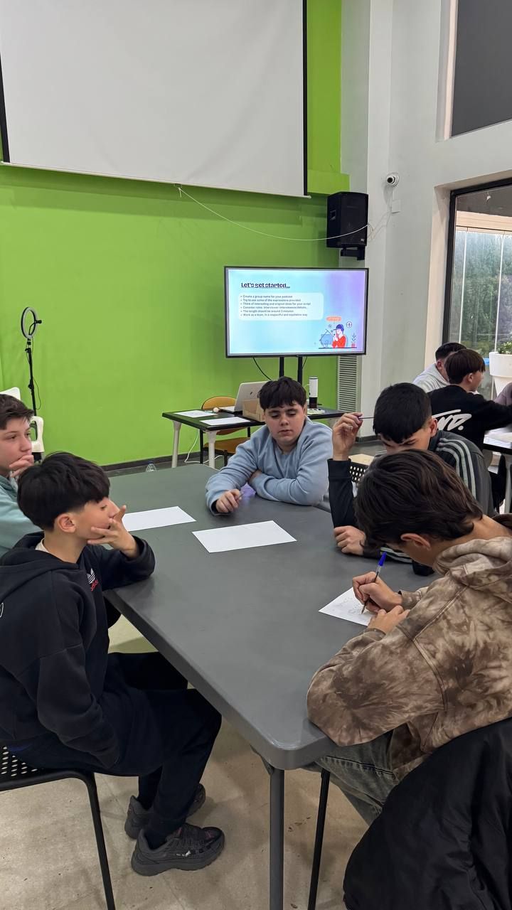 Durante la tarde, los estudiantes realizan la actividad "Future Voices". En grupos, los alumnos debaten sobre temas que les preocupan de cara al futuro y graban un podcast que compartirán luego con los otros grupos. Ha sido muy interesante y enriquecedor.