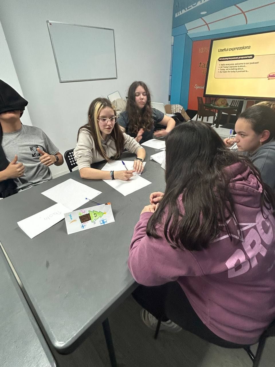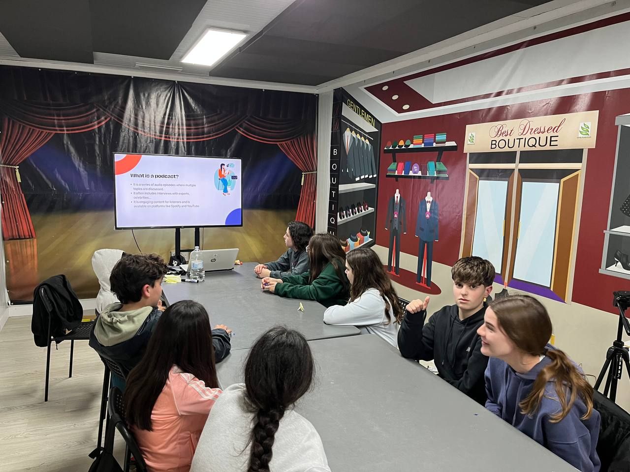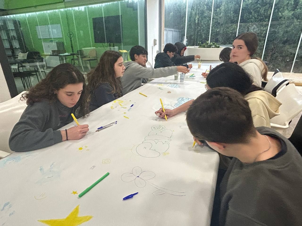 Durante la tarde, los estudiantes realizan la actividad "Future Voices". En grupos, los alumnos debaten sobre temas que les preocupan de cara al futuro y graban un podcast que compartirán luego con los otros grupos. Ha sido muy interesante y enriquecedor.
