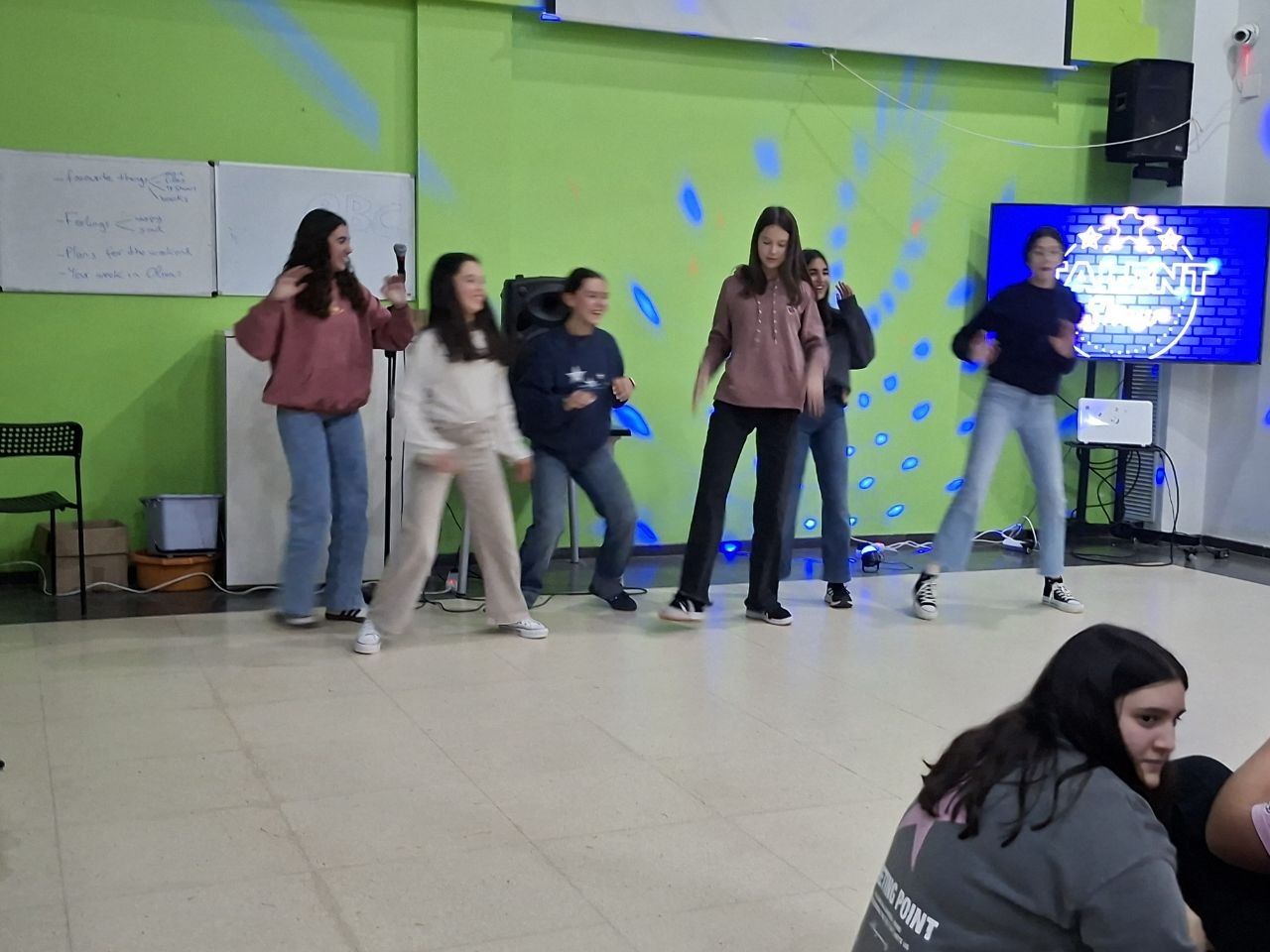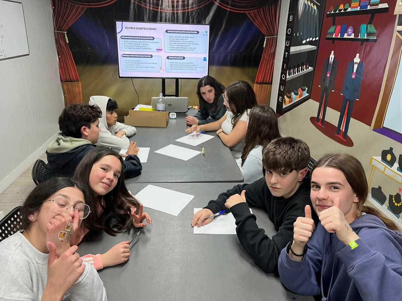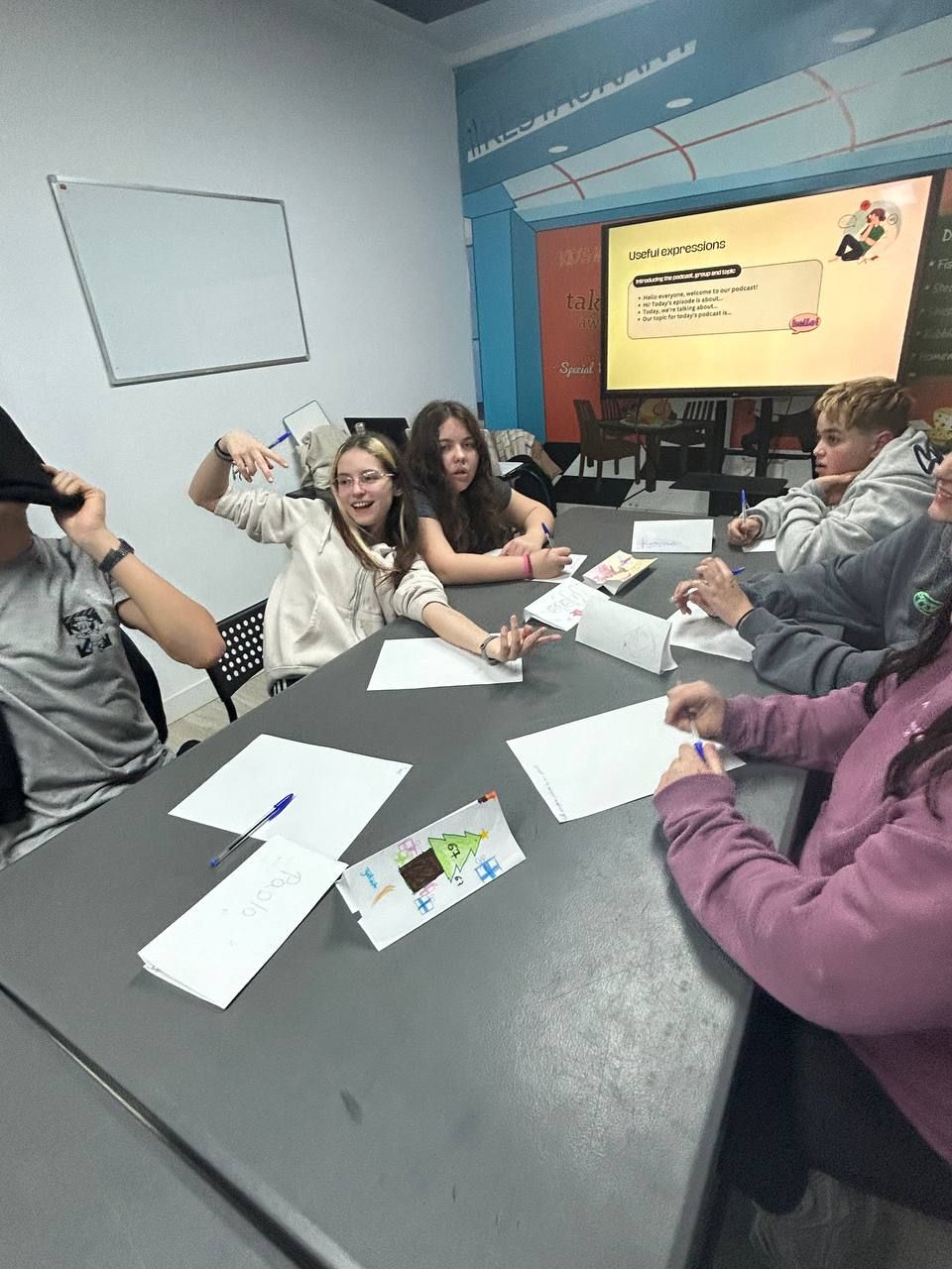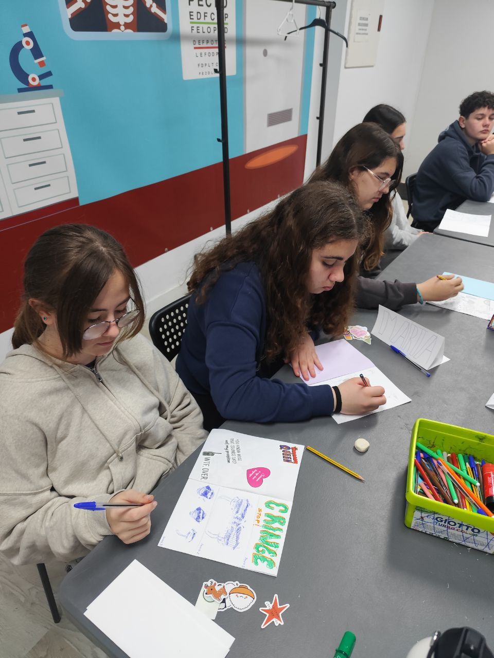 Durante la tarde, los estudiantes realizan la actividad "Future Voices". En grupos, los alumnos debaten sobre temas que les preocupan de cara al futuro y graban un podcast que compartirán luego con los otros grupos. Ha sido muy interesante y enriquecedor.