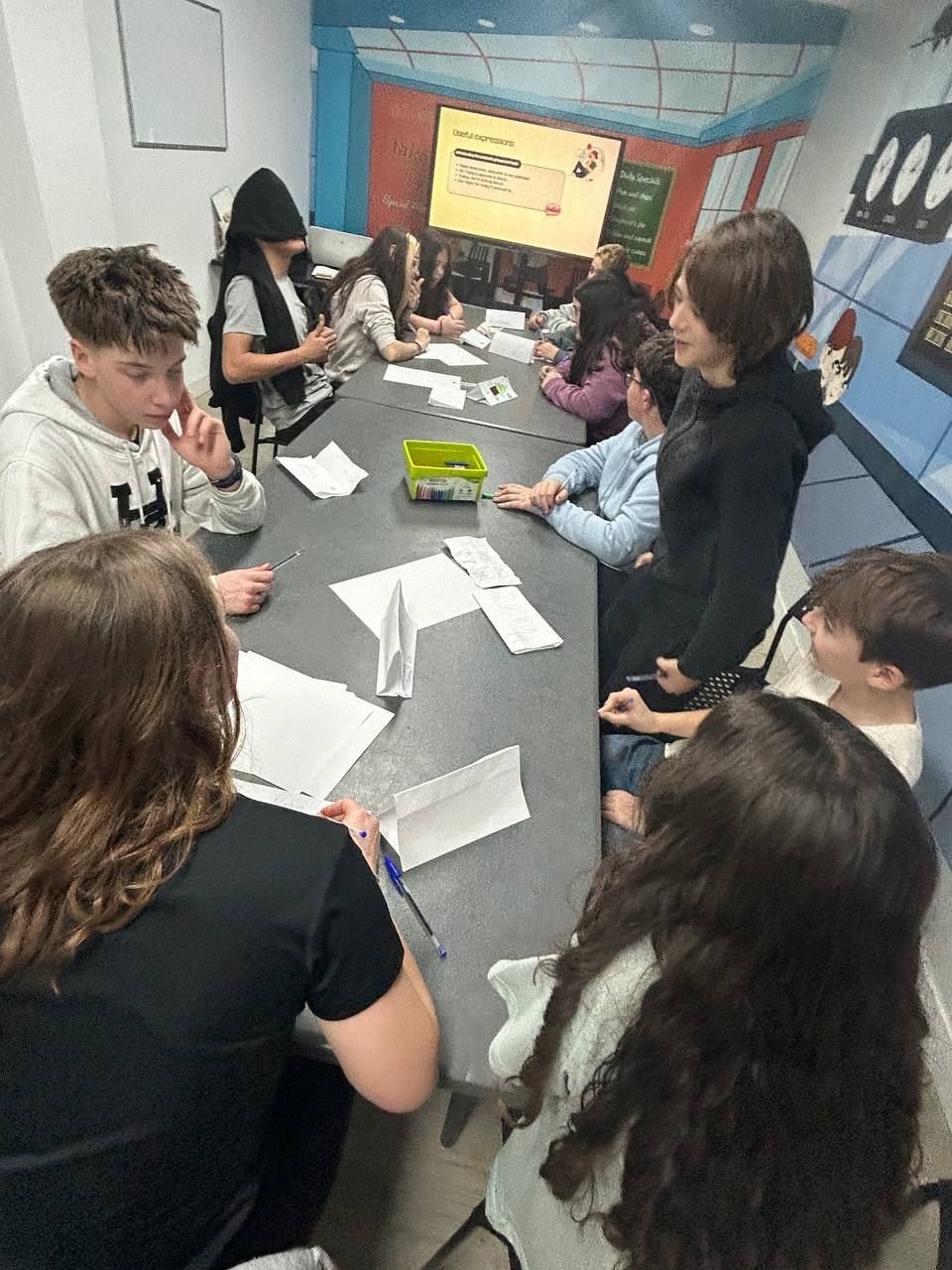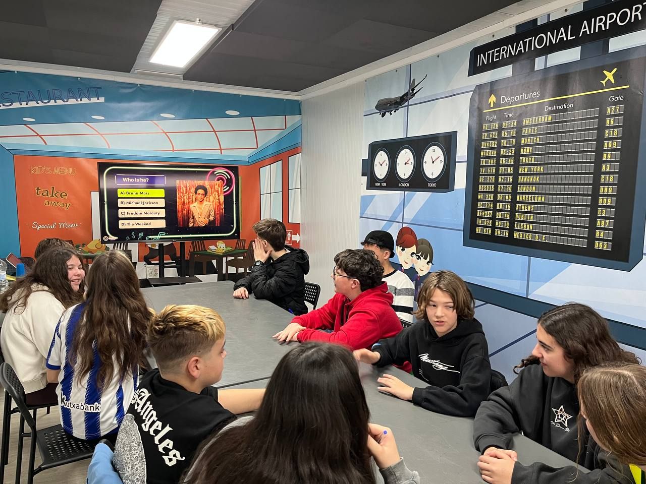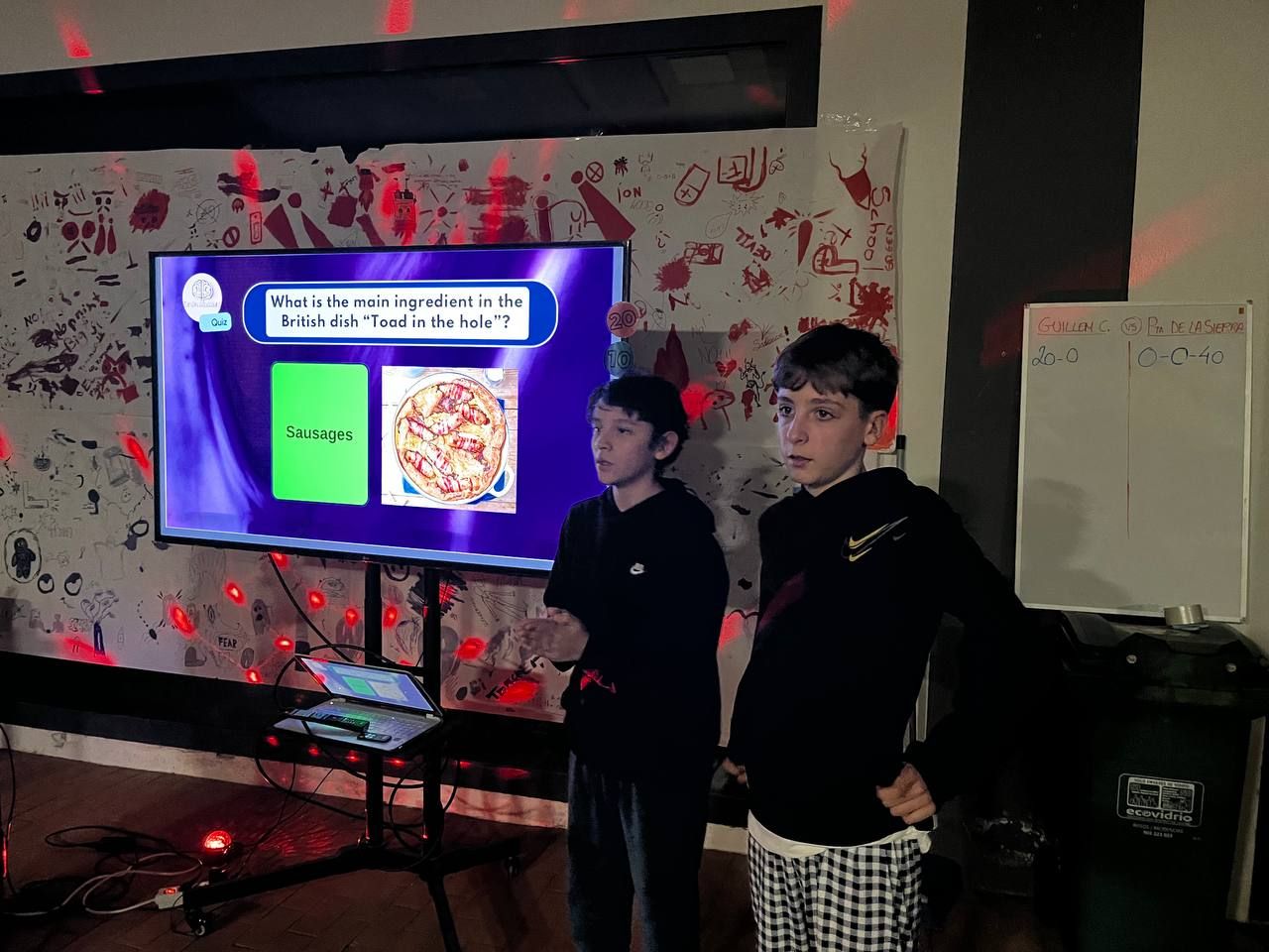 Tras la cena, los estudiantes participaron en la actividad "Quiz masters: The Challenge Show". En este concurso, los alumnos se dividen en dos equipos y compiten en varias rondas de preguntas y desafíos divertidos sobre gastronomía inglesa.