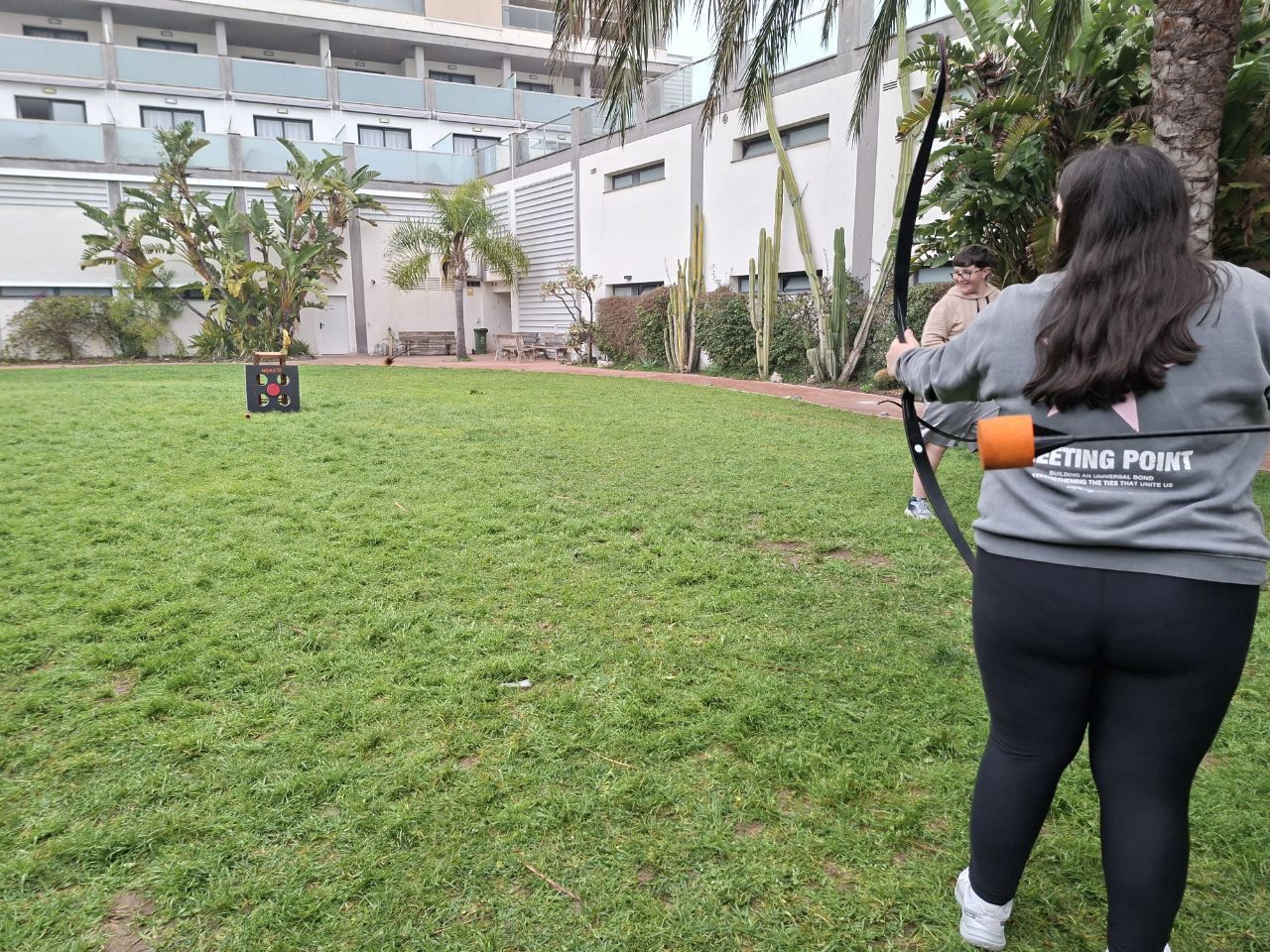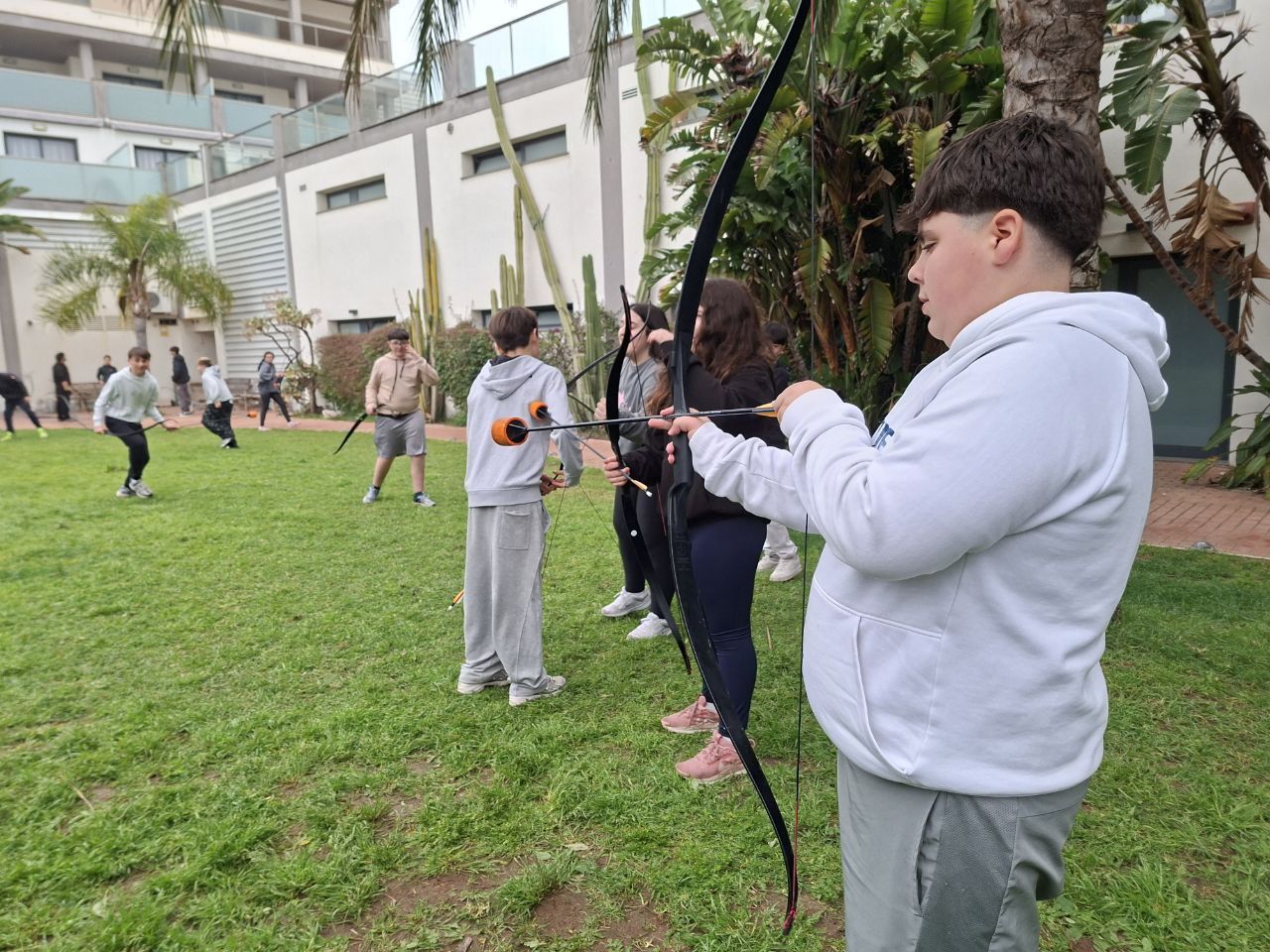 Posteriormente, los estudiantes pusieron a prueba su destreza en la actividad de "archery", utilizando flechas con punta de goma espuma para asegurar su seguridad.