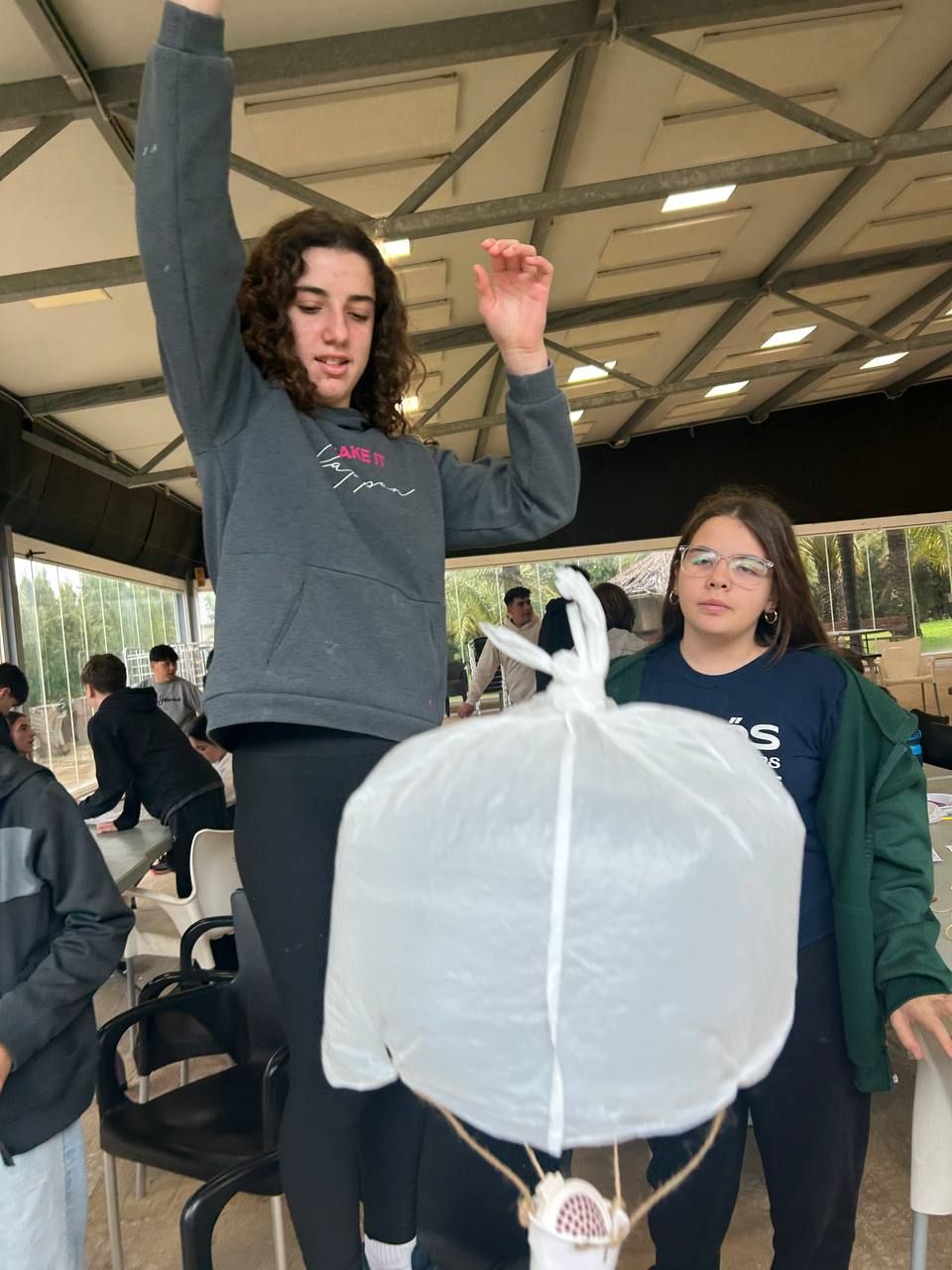 Después del "snack", los alumnos realizan la actividasd "Super Egg", en donde tienen que diseñar un personaje y una historia acerca de un Súperheroe con forma de huevo. Posteriormente diseñan un paracaídas para el huevo decorado. Solo los mejores diseños sobrevivirán la caída desde una gran altura.