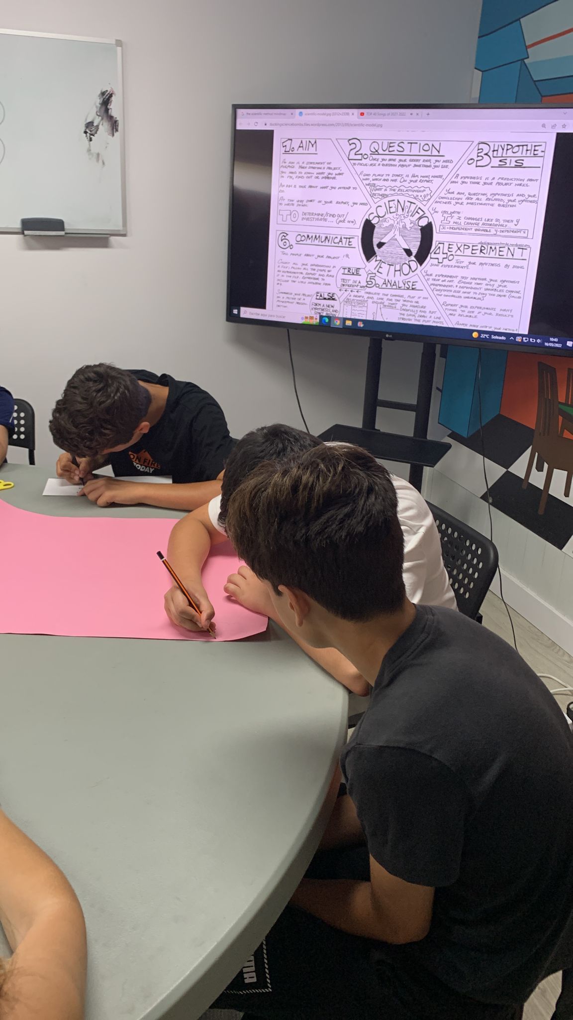 Las actividades que se han planteado combinan las ciencias y el inglés creando una experiencia cien por cien inmersiva para los participantes, de forma que amplíen sus conocimientos más prácticos en el campo de la ciencia, a la par que, mejoran su nivel de inglés, tanto oral, como escrito, como la comprensión del idioma. Empezamos la semana con el tema "The Scientific Method". Creemos que los "Mind Map" son una forma estupenda de empezar cualquier actividad porque nos da a nosotros y a los niños la oportunidad de comprobar sus conocimientos existentes. Esta actividad también da a los alumnos/as la confianza que necesitan para participar en las actividades, ya que se dan cuenta de que saben más de lo que creen. Durante las primeras horas de la mañana cada grupo creo un mind map sobre el Scientific Method que más tarde presentaron al resto de grupos.