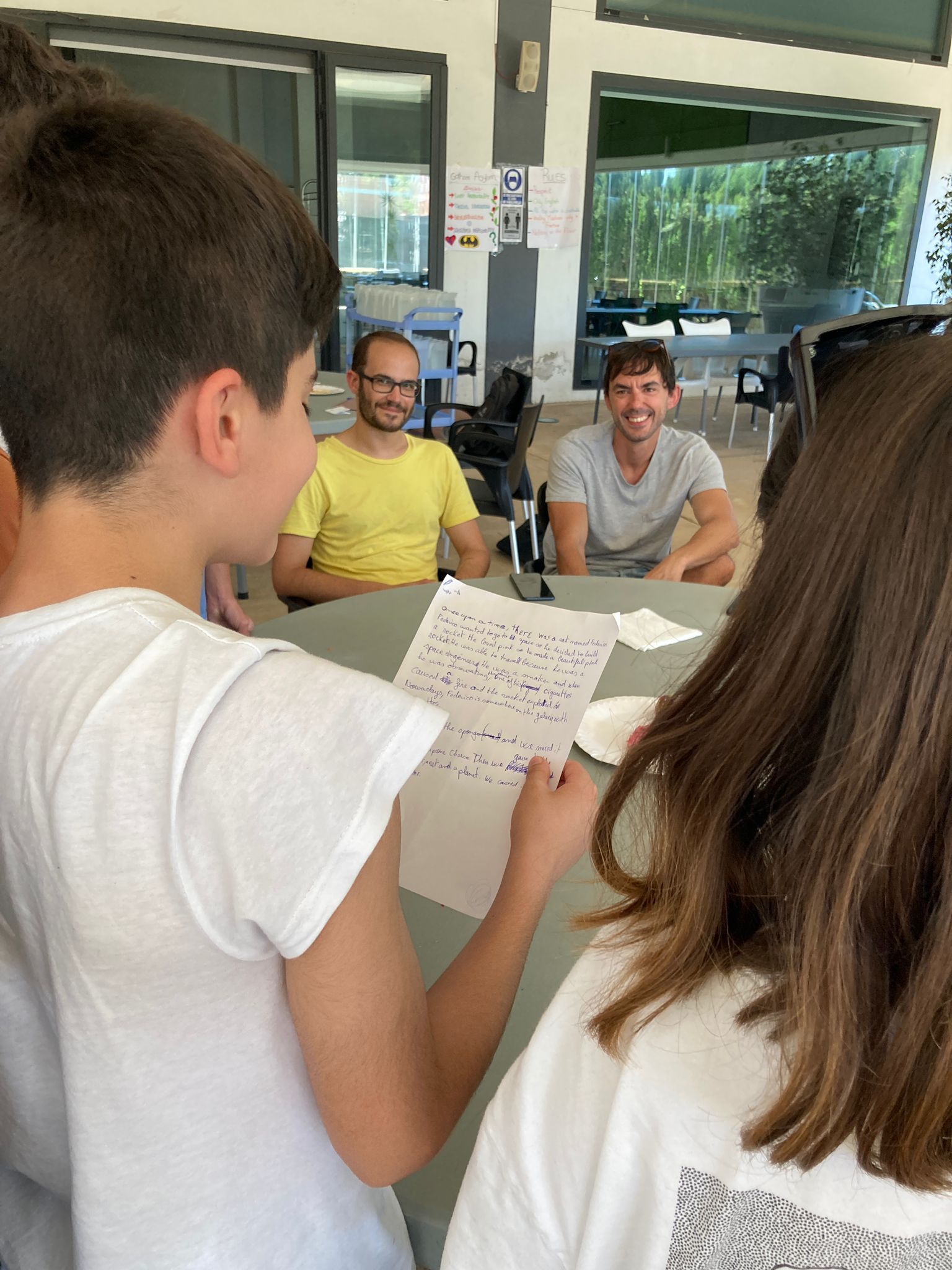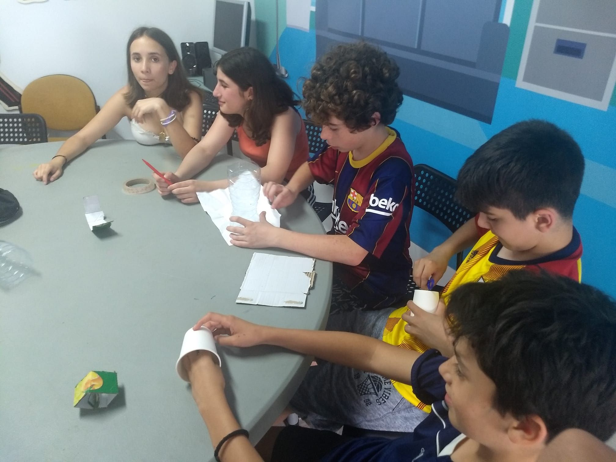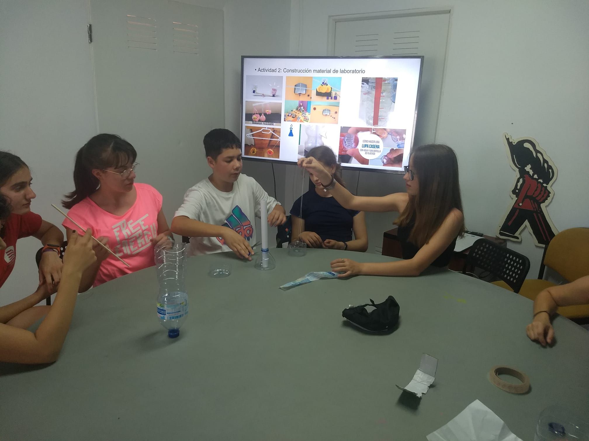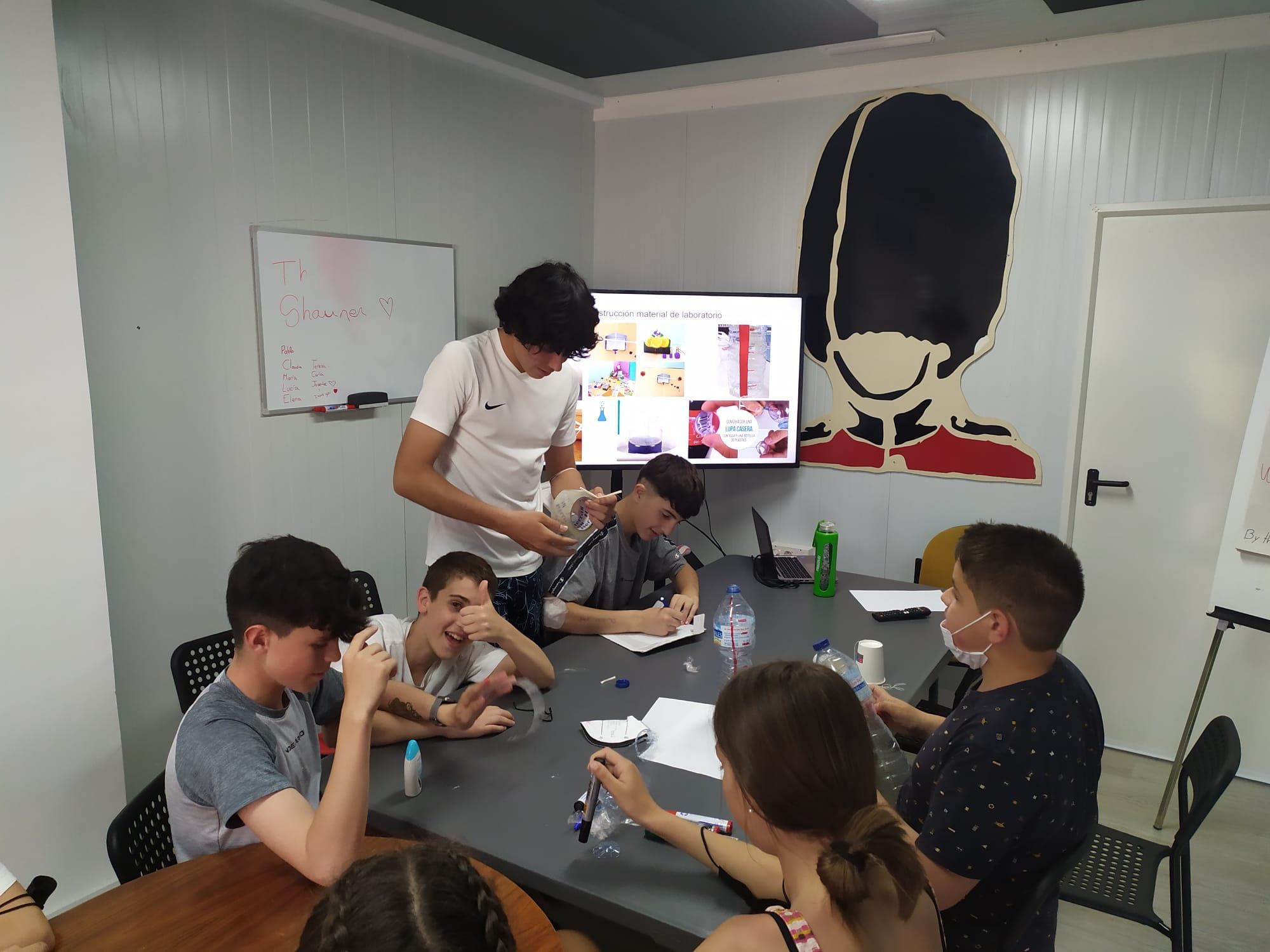 Después del school project y las clases individuales con los profesores de la inmersión, se les dio a los y las alumnas material para que construyeran su laboratorio cientifico. Al finalizar, todos lo presentaron al resto de grupos.