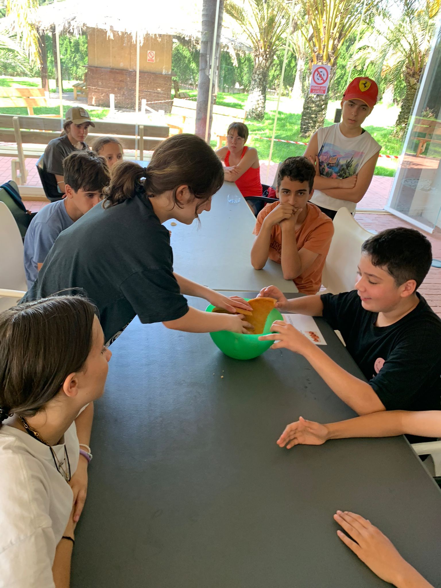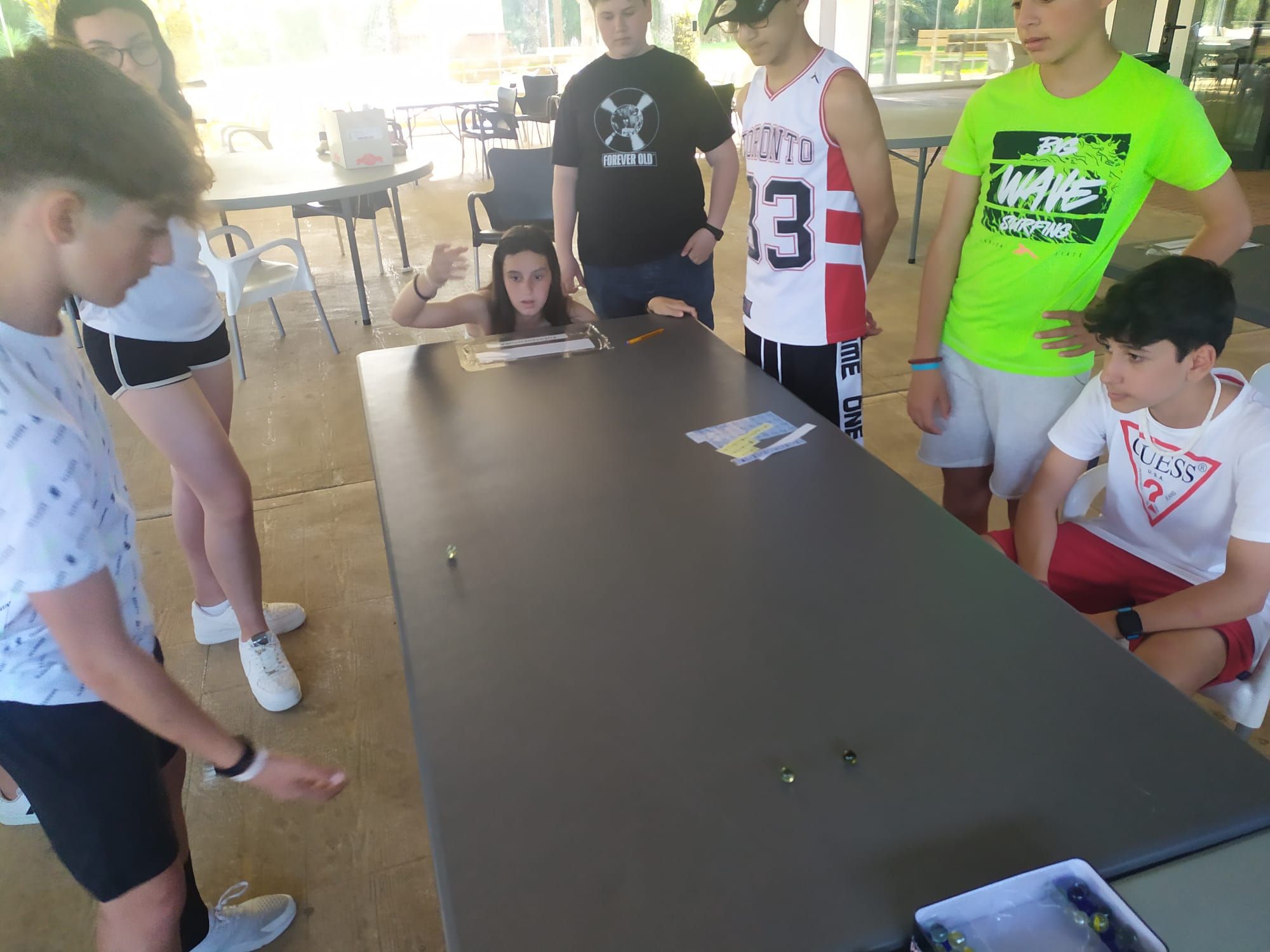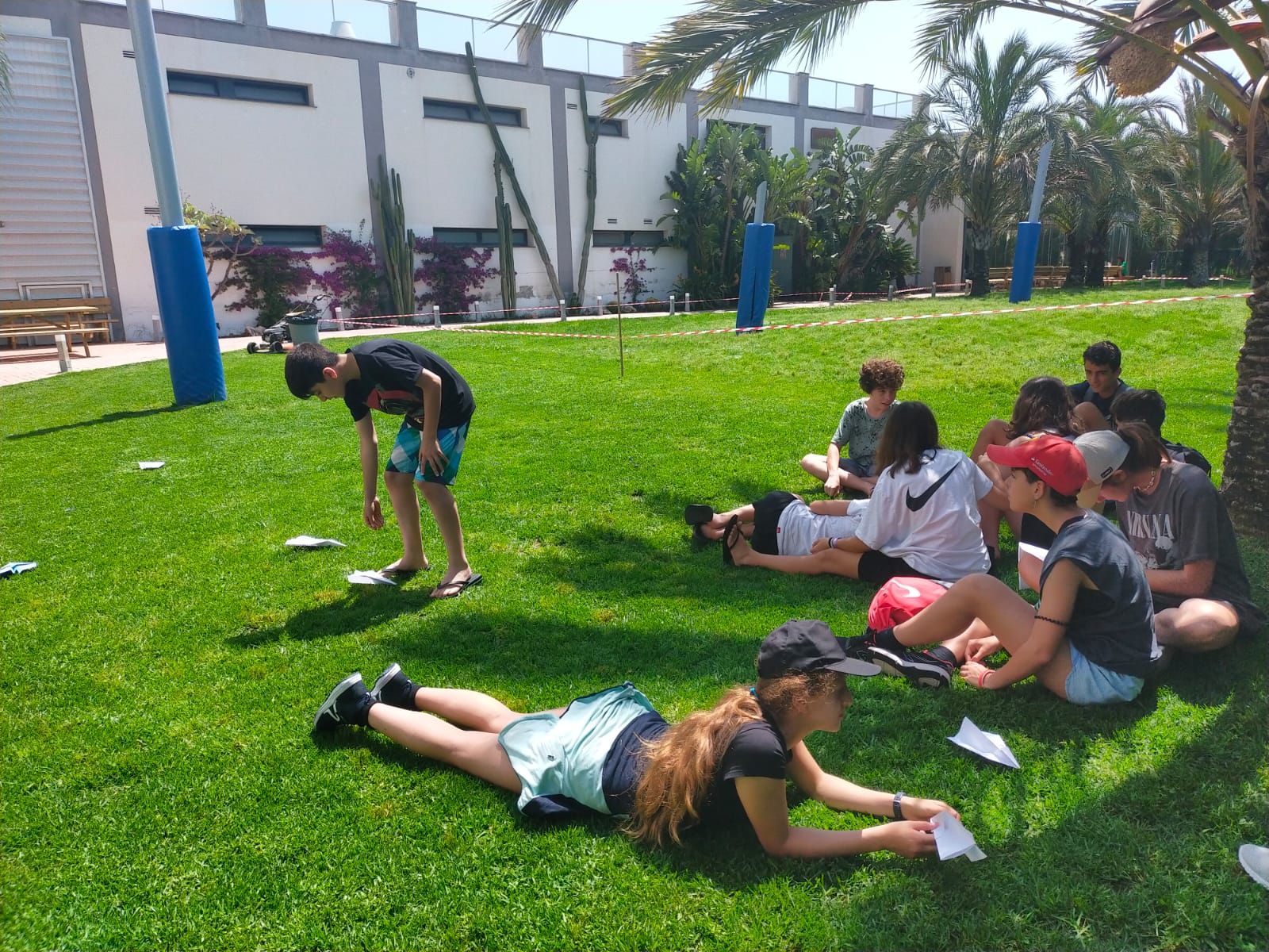 Más tarde, por la mañana, los estudiantes participaron en actividades físicas al aire libre, como tiro con arco y juegos olímpicos en la playa. Estas actividades tenían como objetivo principal el que los alumnos/as lo hicieran lo mejor posible para conseguir objetos que más tarde utilizarian en la construcción de un laboratorio científico.