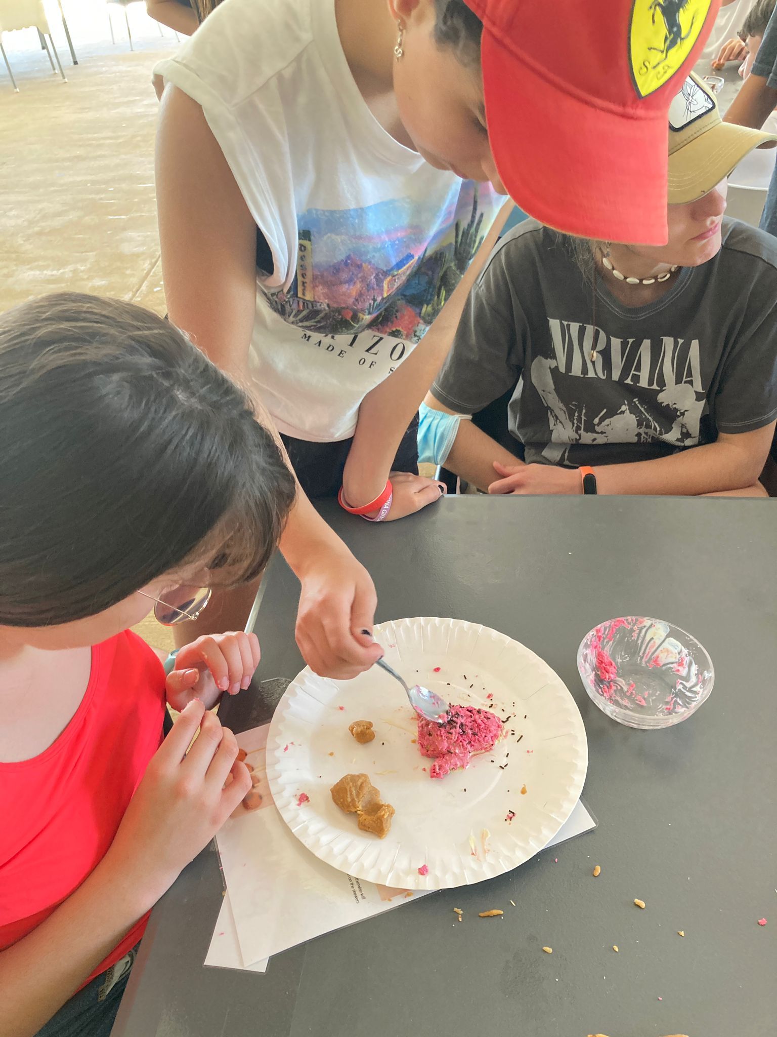 Los alumnos/as aprendieron sobre los cambios en la materia, como fusión (el chocolate sólido paso a líquido), las propiedades físicas de la materia (la textura, la temperatura, la forma etc). Una vez terminados los platos cada grupo los presento al resto.