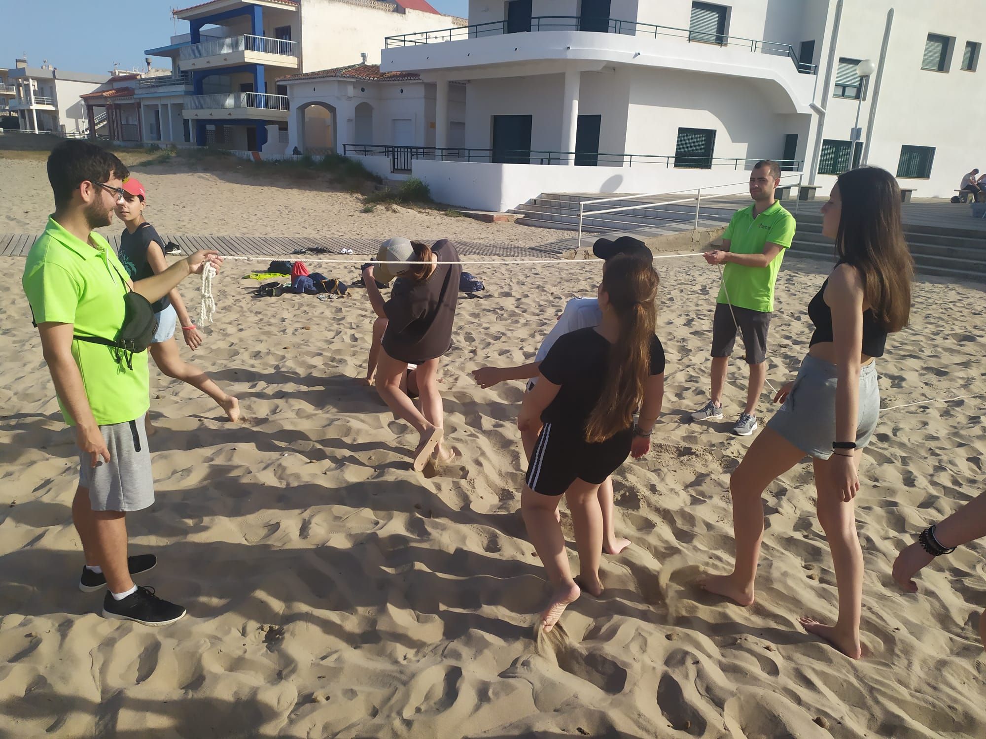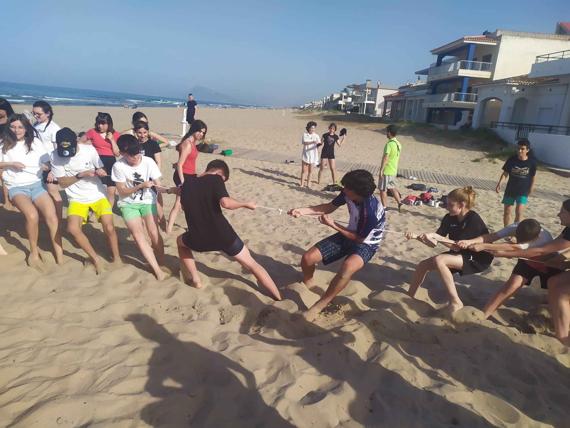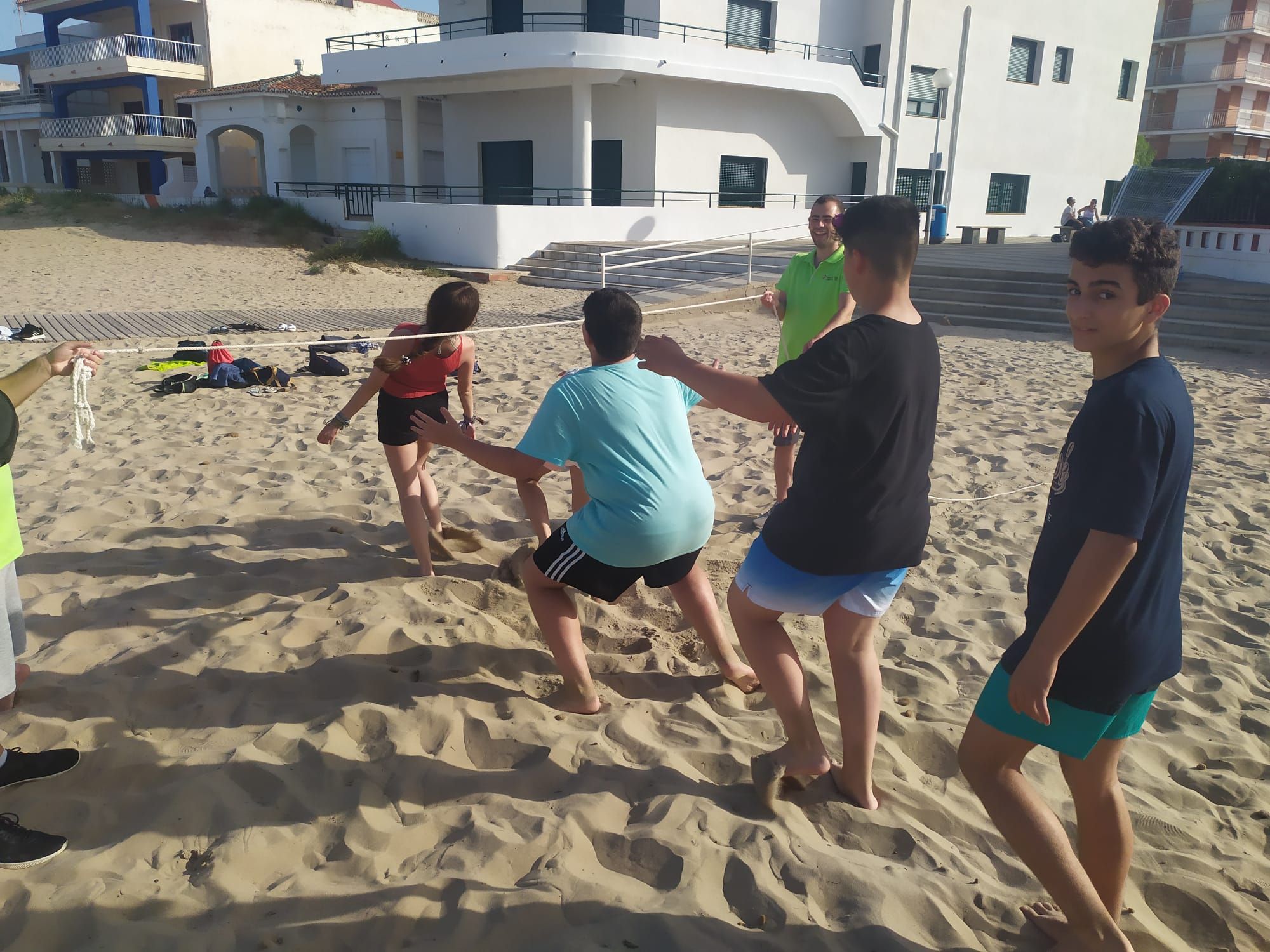 Más tarde, por la mañana, los estudiantes participaron en actividades físicas al aire libre en la playa. Estas actividades tenían como objetivo principal el que los alumnos/as lo hicieran lo mejor posible para conseguir objetos que más tarde utilizarian en la construcción de un laboratorio científico.