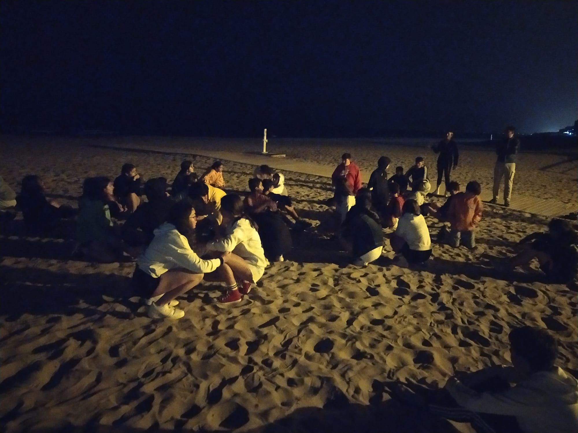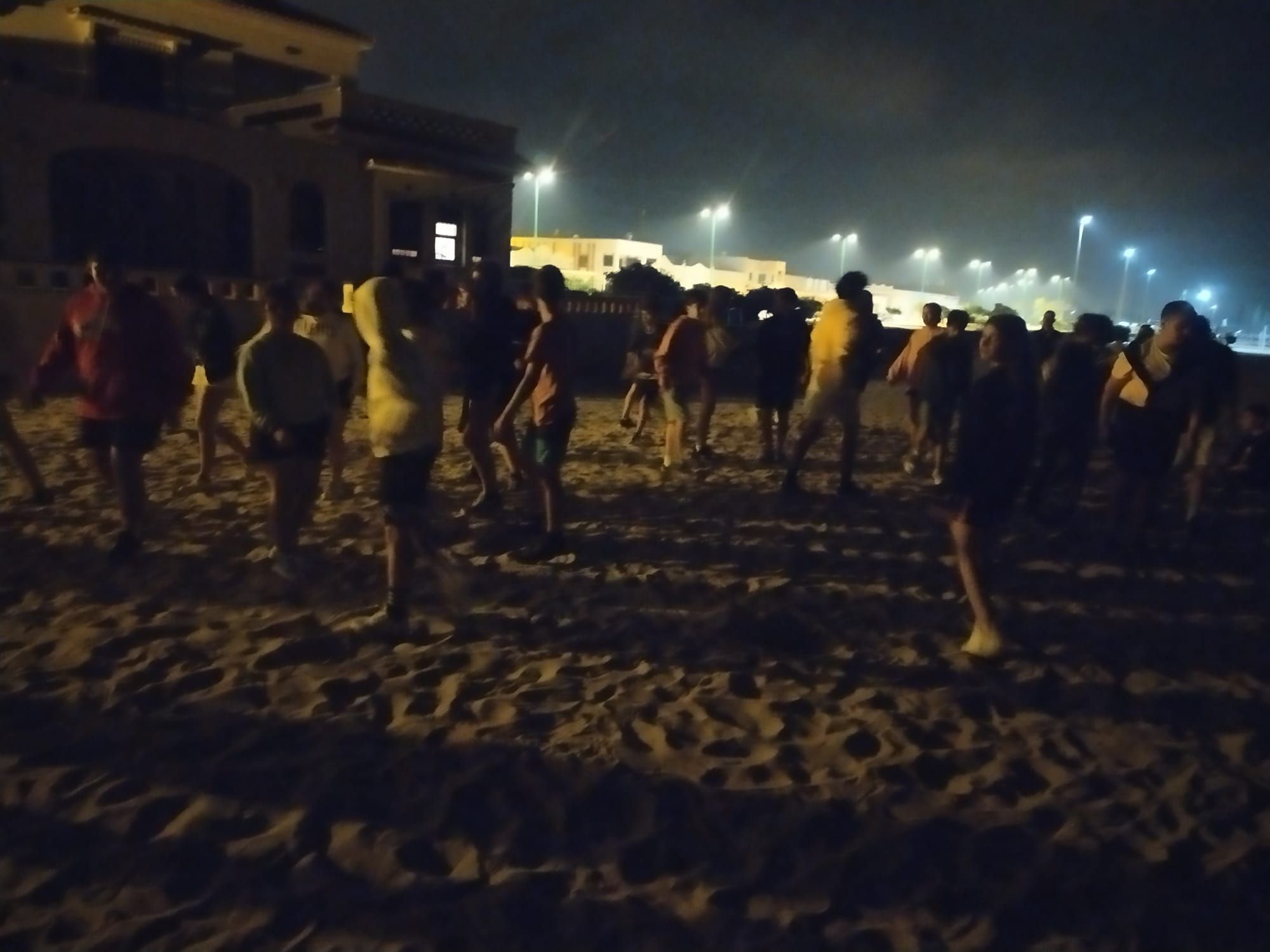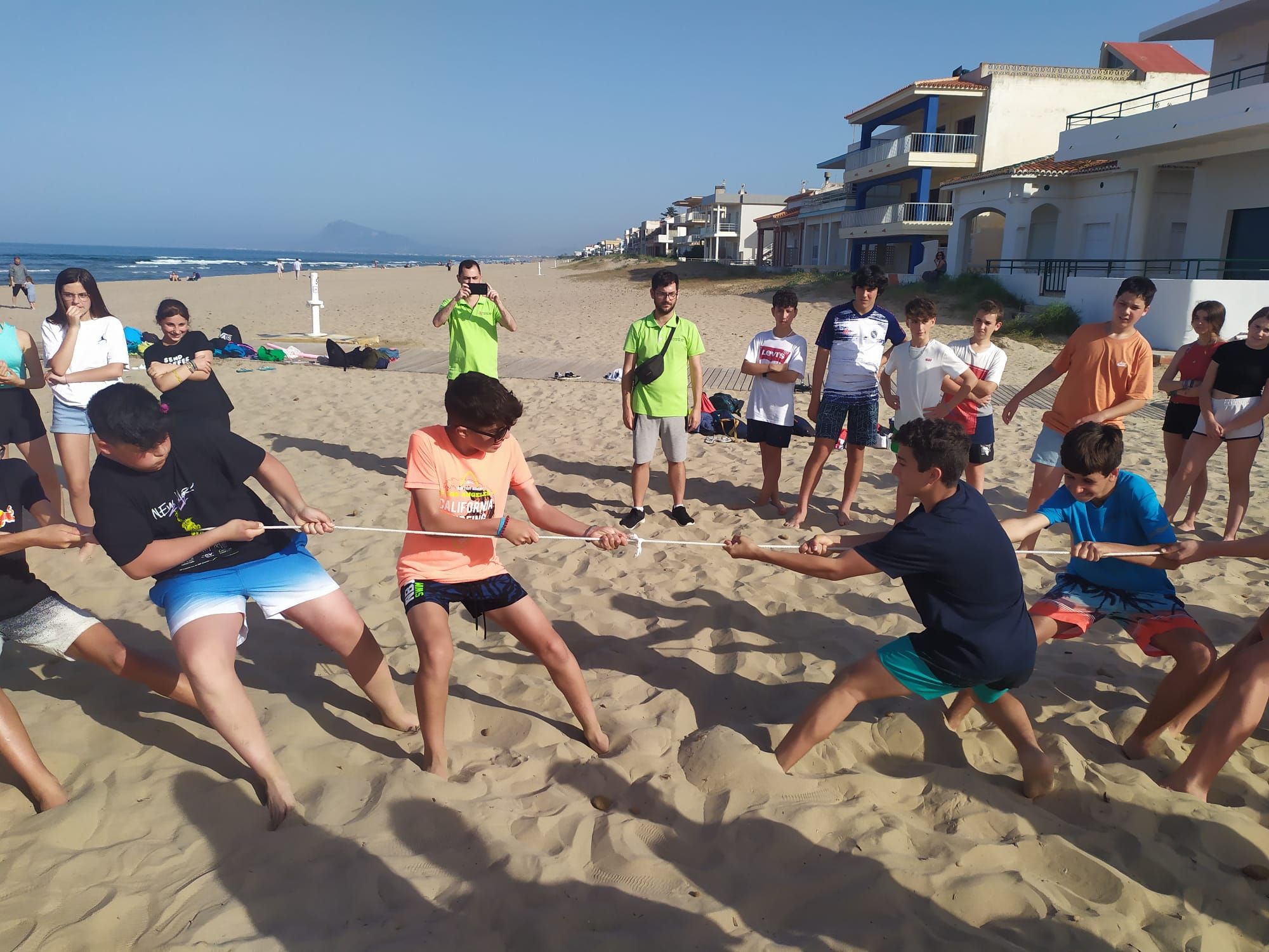 Más tarde, por la mañana, los estudiantes participaron en actividades físicas al aire libre en la playa. Estas actividades tenían como objetivo principal el que los alumnos/as lo hicieran lo mejor posible para conseguir objetos que más tarde utilizarian en la construcción de un laboratorio científico.