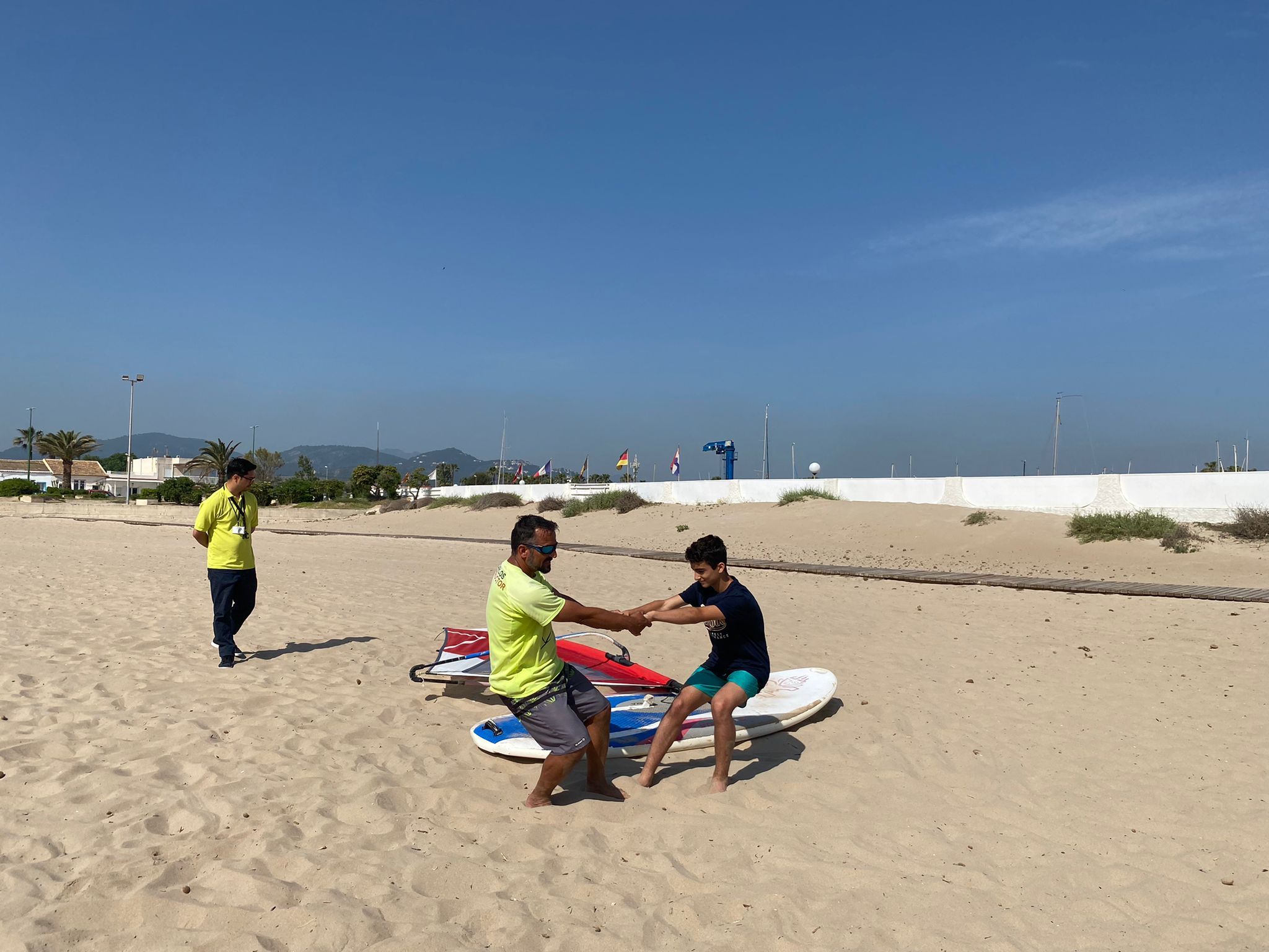 El tema del jueves es "movement and forces" y los estudiantes comienzan sus actividades aprendiendo cómo las fuerzas afectan al movimiento de los objetos, y en especial aprenden sobre la física involucrada en el windsurf. Después de la explicación, tomamos algunas fotos de los alumnos en la tabla de windsurf.