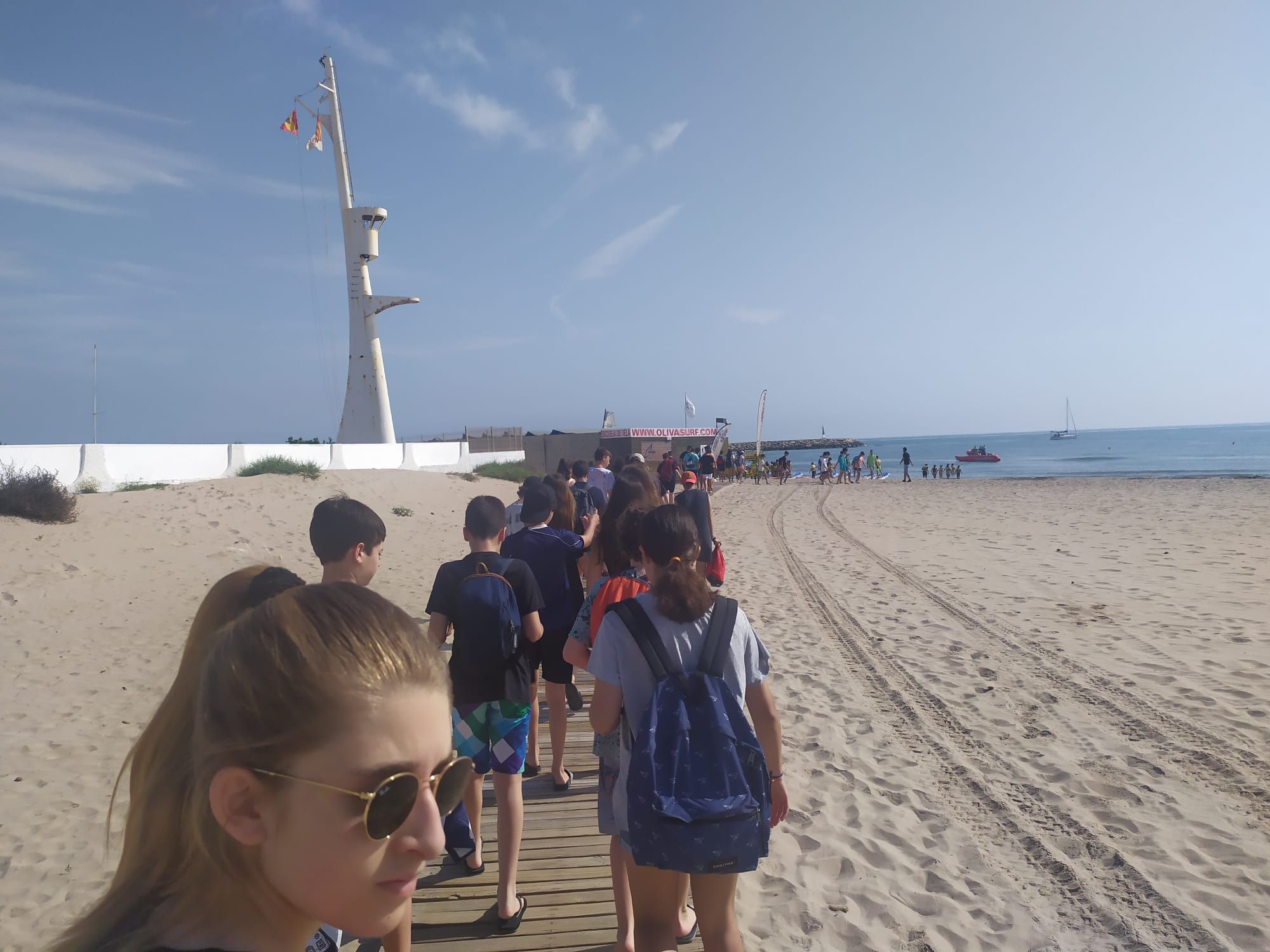 Más tarde, los alumnos/as fueron a la playa para participar en diferentes actividades en las que pudieron comprobar cómo la fuerza y el movimiento existen en diversas actividades físicas.