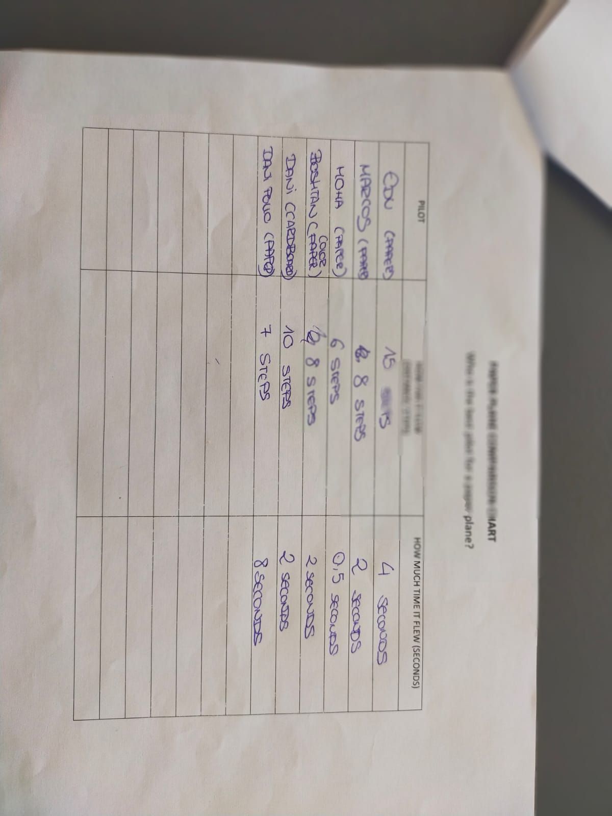 Después de comer los estudiantes continuaron aprendiendo sobre el tema "movement and forces" con aviones de papel. Aprendieron que las fuerzas que permiten volar a un avión de papel son las mismas que permiten volar a los aviones de verdad. Cada grupo hizo una investigación con sus aviones utilizando diferentes tipos de papel, diferentes tamaños de avión, estilos etc. para contestar una serie de preguntas. Finalmente los alumnos/as, basándose en los resultados de sus investigaciones, eligieron su mejor avión y el mejor piloto para contestar a la pregunta que avión vuela mejor.